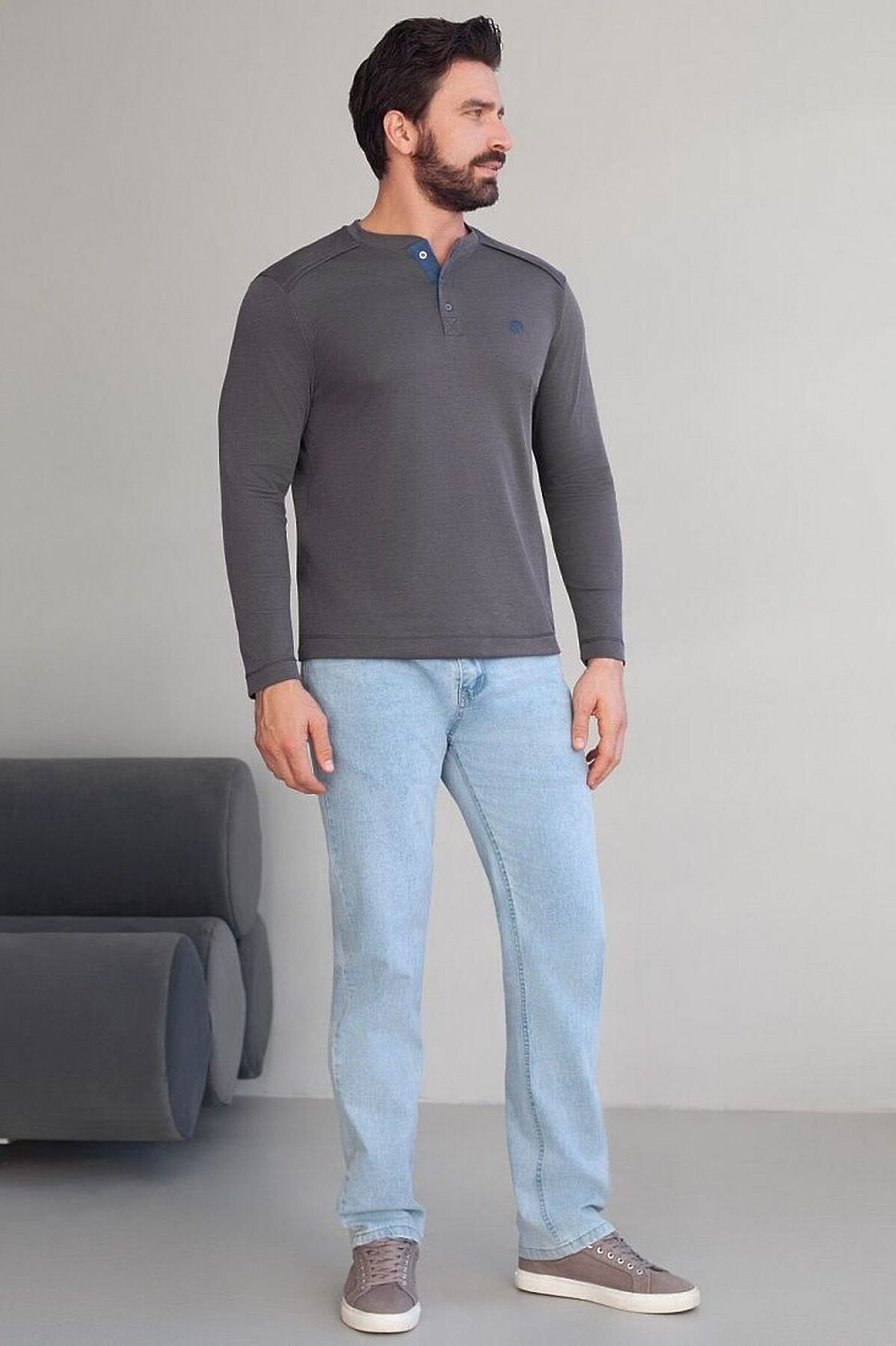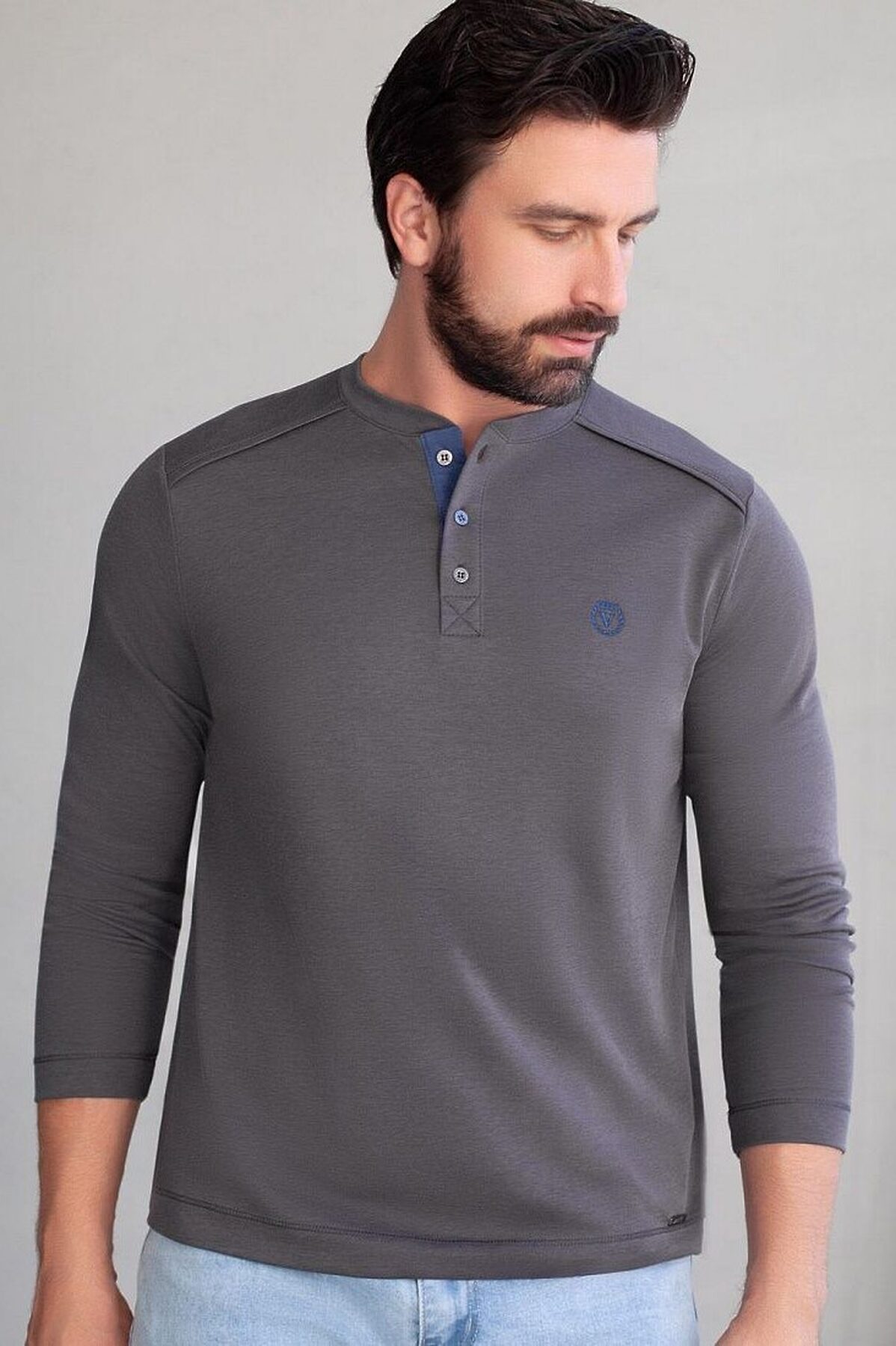 Джемпер хенли серого цвета из полотна пике, состоящий из двух оттенков нити, создающем эффект меланж. Мягкая и дышащая ткань обеспечивает комфорт в течение всего дня, позволяя коже дышать и поддерживать оптимальную воздухопроницаемость. Материал тянется, обеспечивает долговечность и сохраняет презентабельный внешний вид даже после многократных стирок. Контрастная планка и пуговицы в благородном матовом металле поддерживают стиль old money, а аккуратная нашивка на груди в виде логотипа бренда подчеркивает статусность. По бокам аккуратные разрезы для свободы движений и дополнительного удобства. Джемпер подходит для любых ситуаций — от деловых встреч до повседневных прогулок. Такая вещь станет универсальным решением для тех, кто ценит удобство и элегантность в одежде. Лаконичный дизайн легко сочетается с джинсами или брюками, что позволяет создавать разные образы.