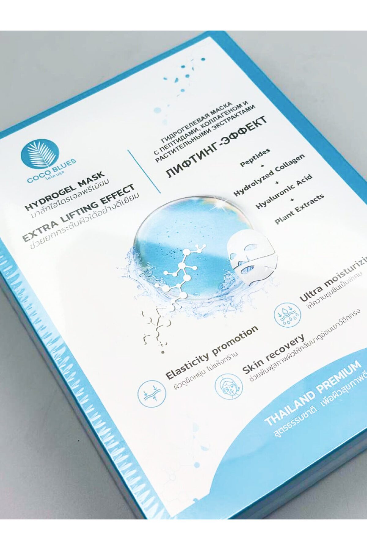 Coco Blues Гидрогелевая маска для лица с пептидами, коллагеном и растительными экстрактими / Лифтинг-эффект, 5 шт. х 30 г KRISTALLER, голубой