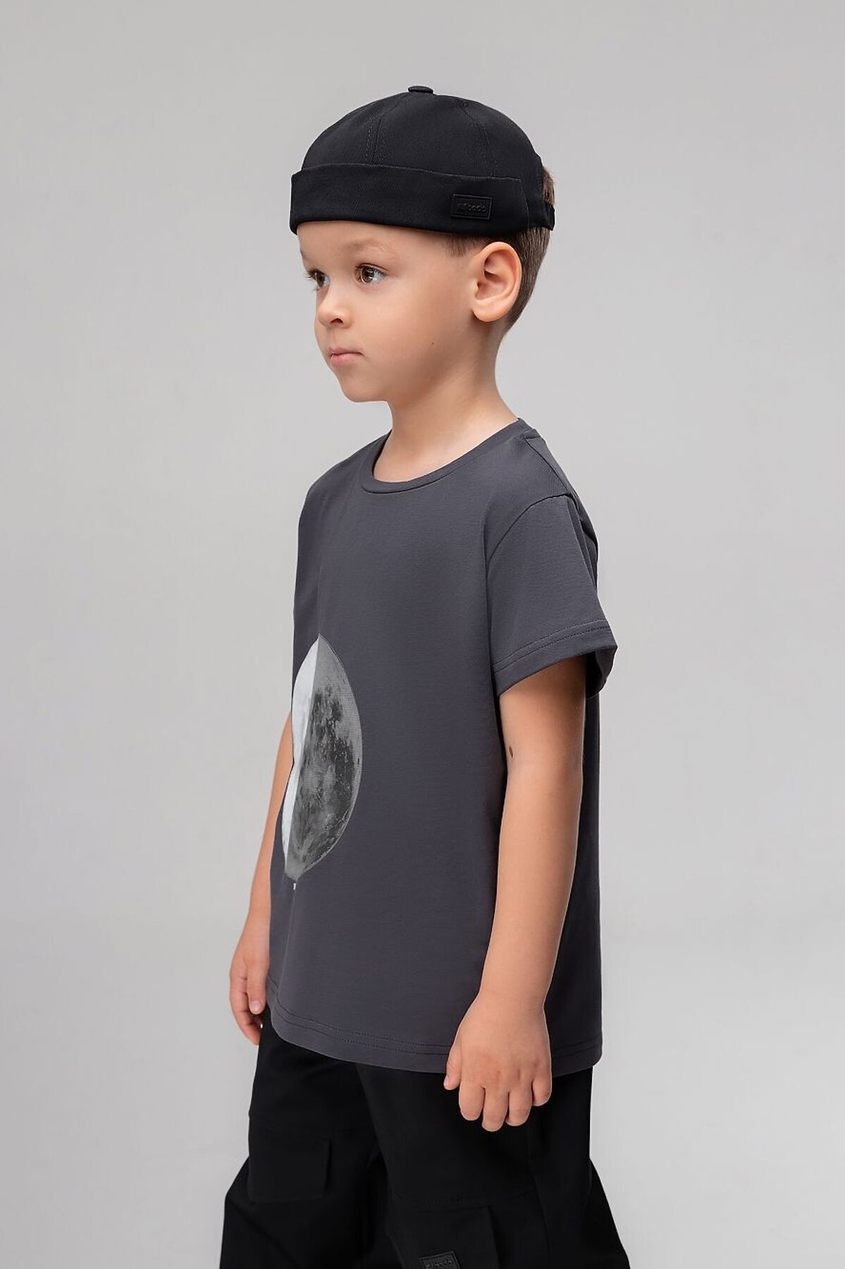 Футболка для детей дошкольного возраста. Футболка свободного силуэта с втачным коротким рукавом. Горловина футболки округлой формы.