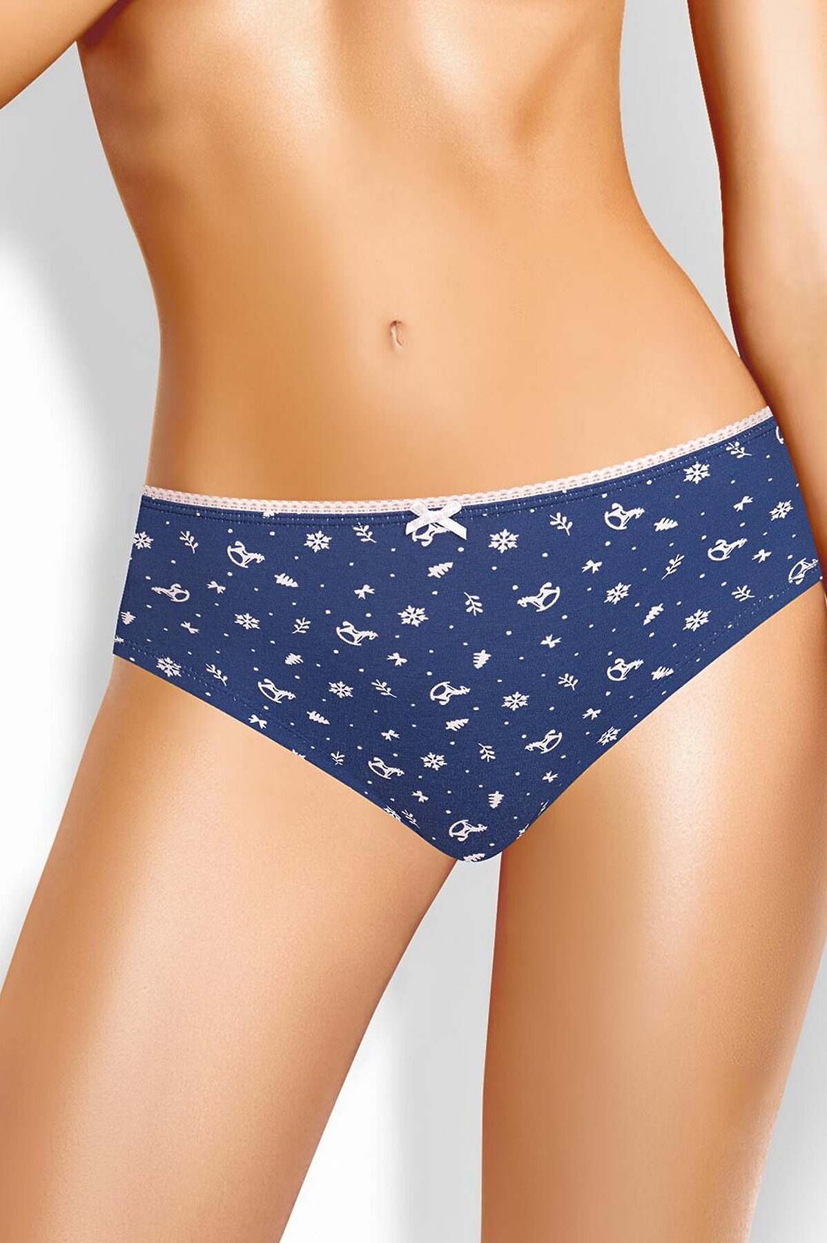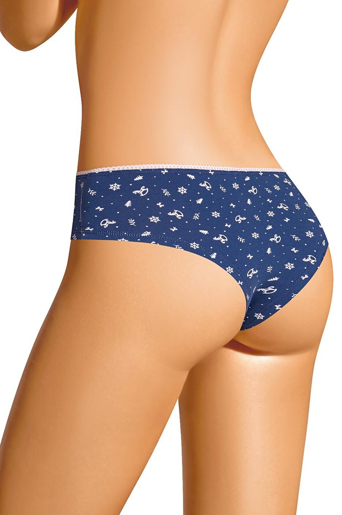 Трусы бразилиана женские из эластичного хлопкового полотна. Обработка краев по талии - ажурная резинка, по ноге - подгибка. По переду атласный бант.