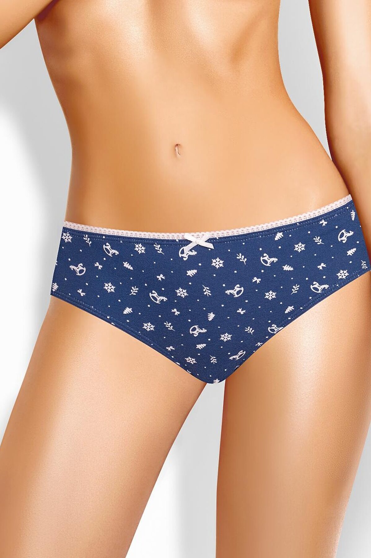 Трусы бикини женские из эластичного хлопкового полотна. Обработка краев по талии - ажурная резинка, по ноге - полуокантовка. По переду атласный бант.