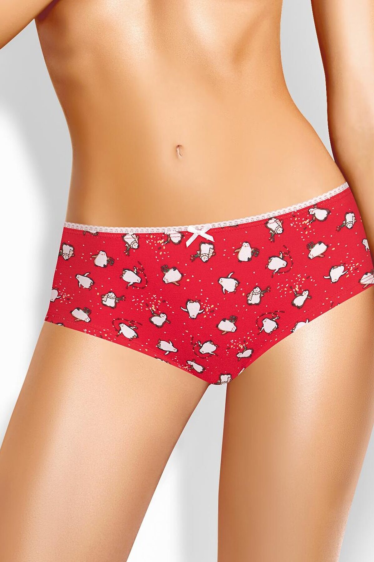 Трусы шорты женские из эластичного хлопкового полотна. Обработка краев по талии - ажурная резинка, по ноге - подгибка. По переду атласный бант.
