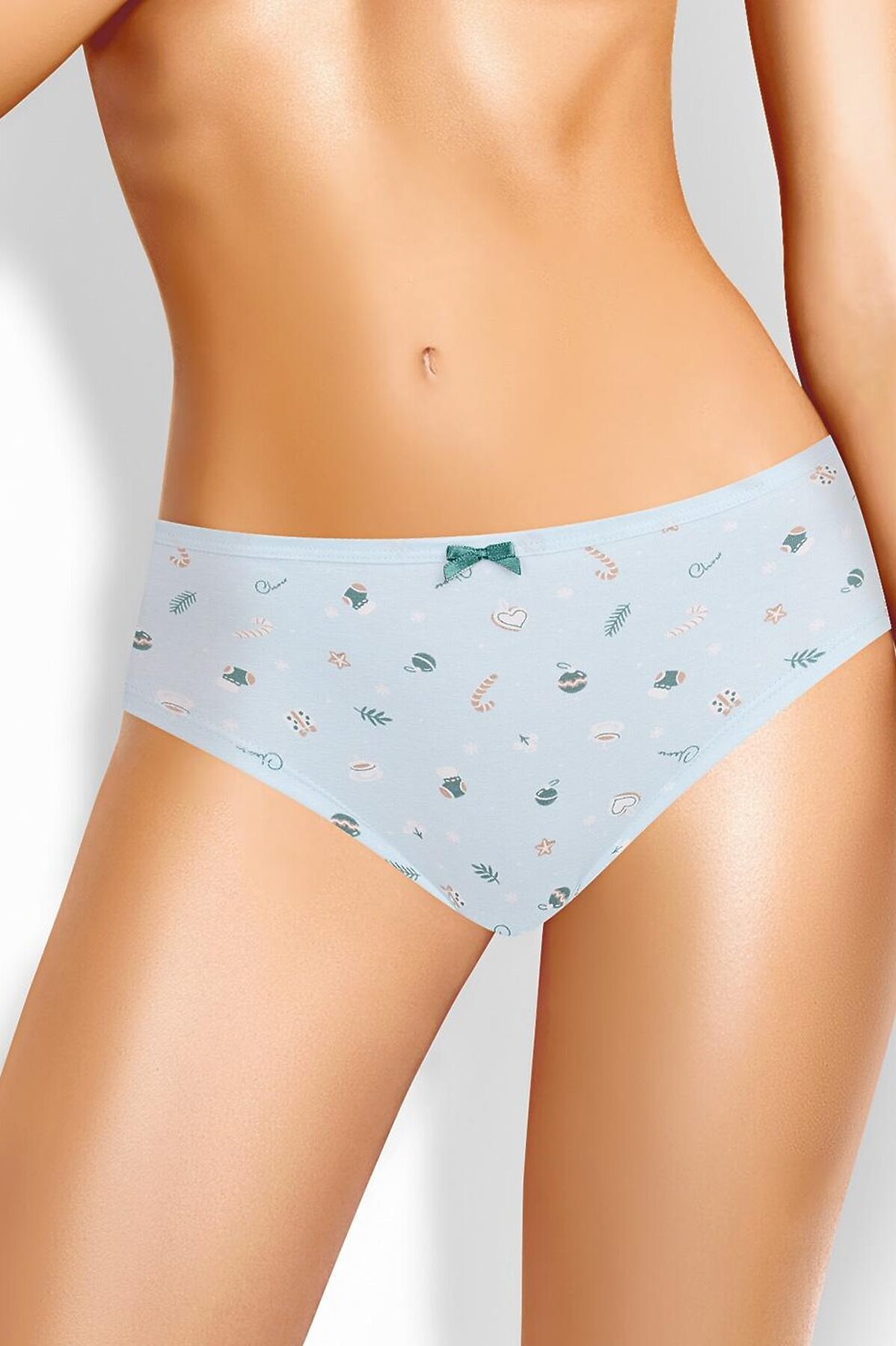 Трусы бразилиана женские из эластичного хлопкового полотна. Обработка краев по талии - окантовочная резинка, по ноге - подгибка По переду атласный бант.