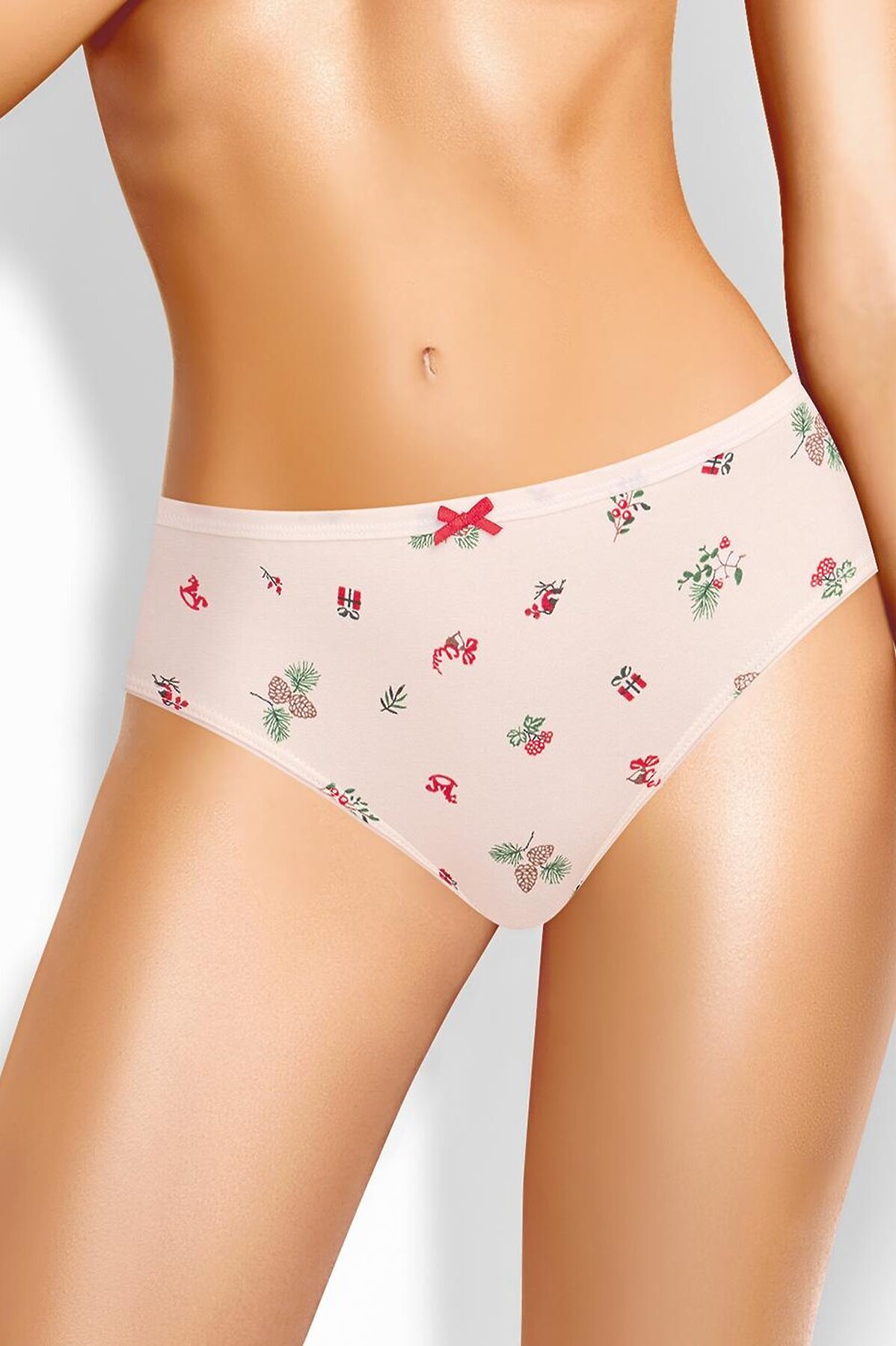 Трусы слипы женские из эластичного хлопкового полотна. Обработка краев по талии - окантовочная резинка, по ноге - полуокантовка. По переду атласный бант.