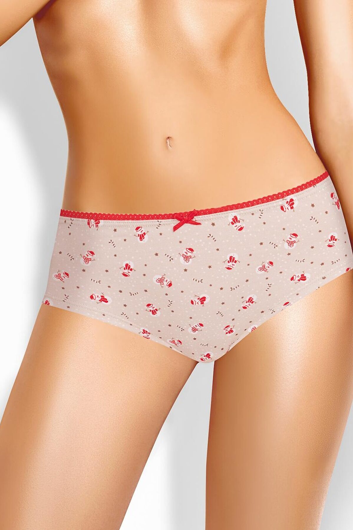 Трусы шорты женские из эластичного хлопкового полотна. Обработка краев по талии - ажурная резинка, по ноге - подгибка. По переду атласный бант.