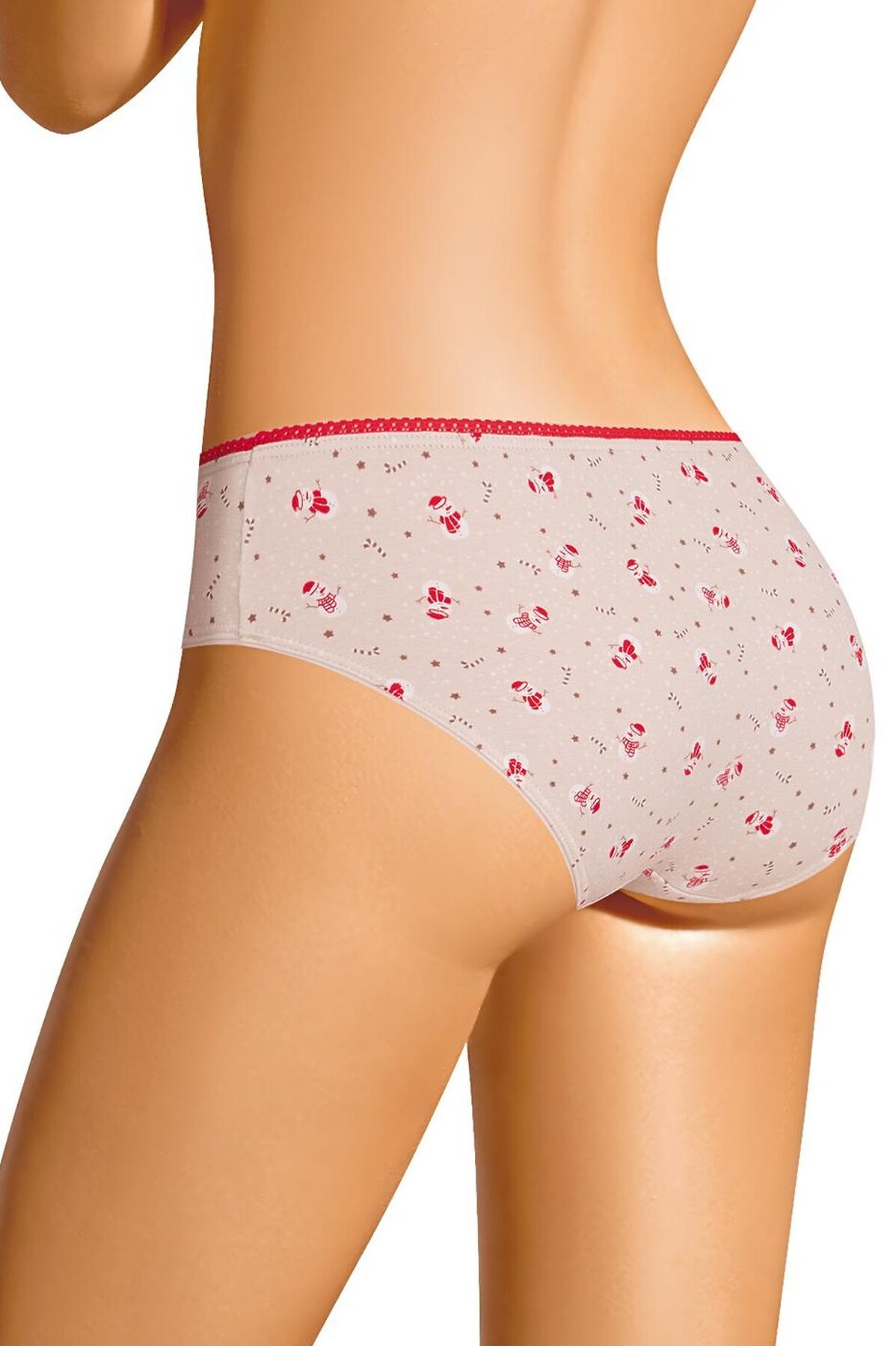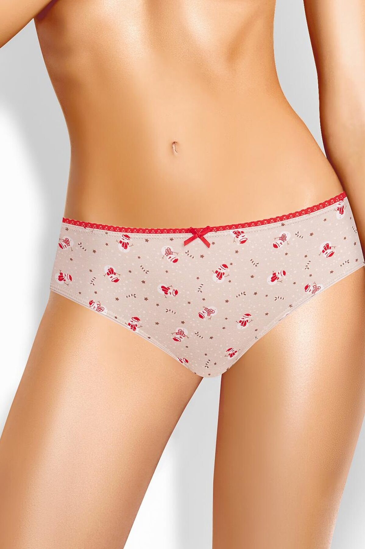 Трусы бикини женские из эластичного хлопкового полотна. Обработка краев по талии - ажурная резинка, по ноге - полуокантовка. По переду атласный бант.