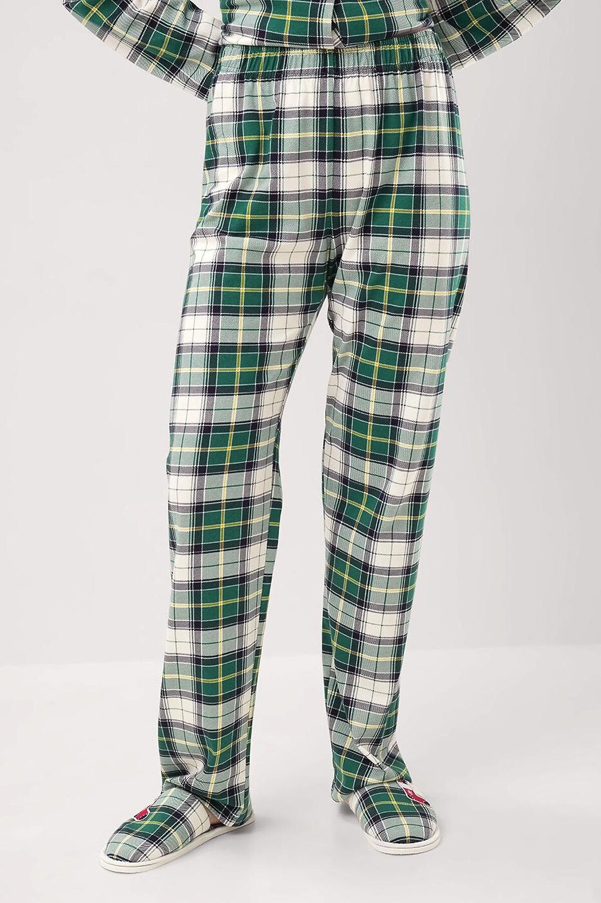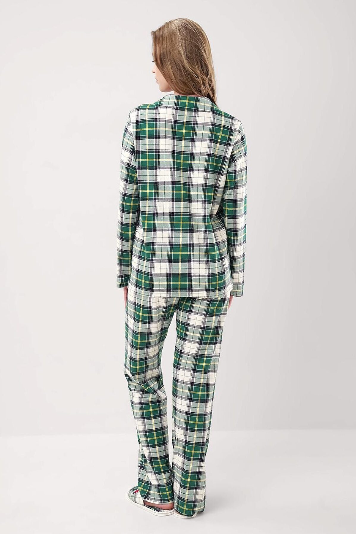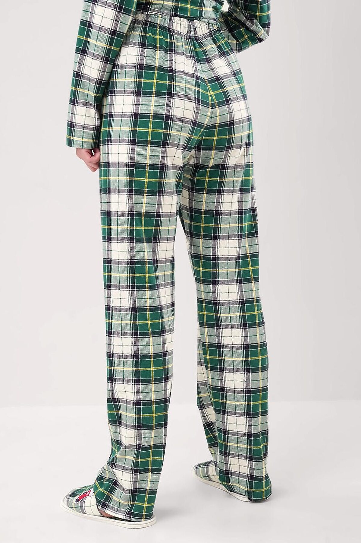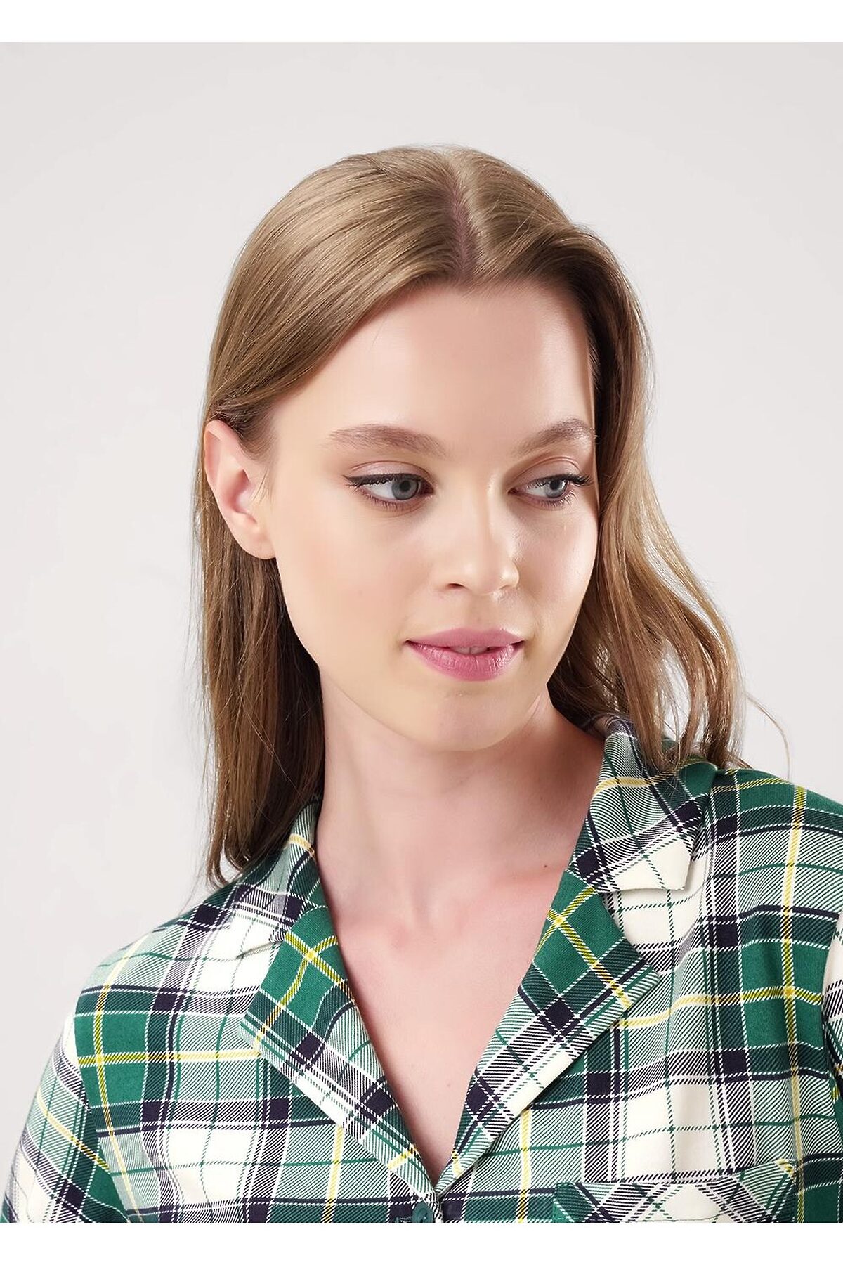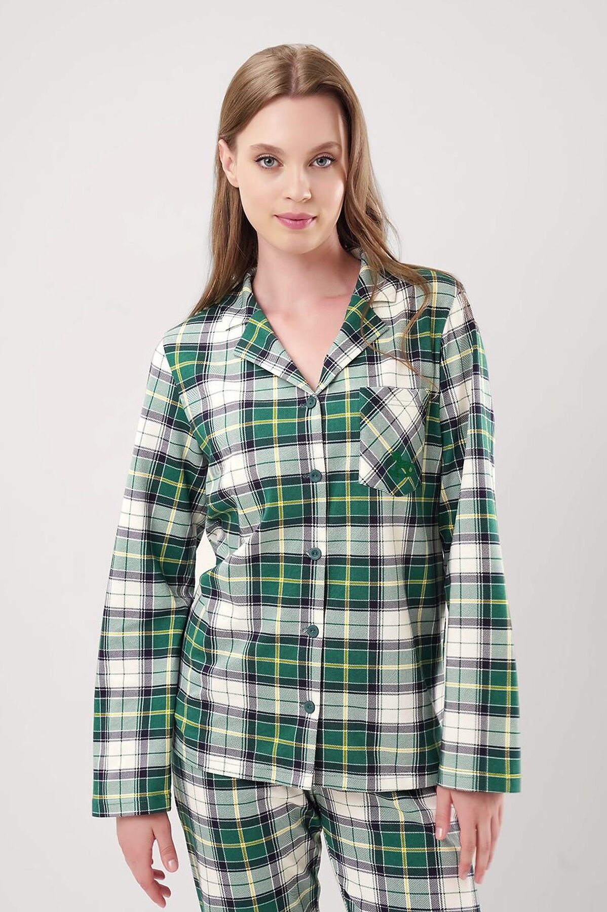 Пижама для дома из хлопкового трикотажного полотна с карбоном. Джемпер с длинным втачным рукавом. Застёжка на пуговицы, воротник с лацканами. По переду накладной карман, нашивка. Боковые разрезы. Брюки прямые, цельнокроенный пояс на внутренней резинке.
