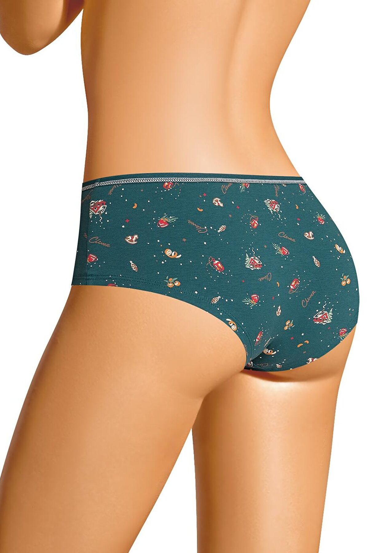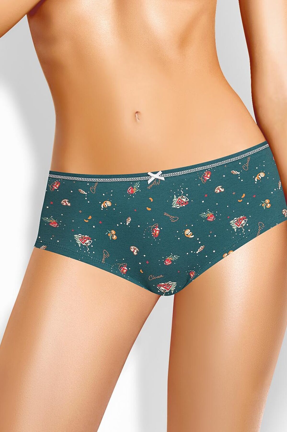 Трусы шорты женские из эластичного хлопкового полотна. Обработка краев по талии - окантовочная резинка с застилом, по ноге - подгибка. По переду атласный бант.