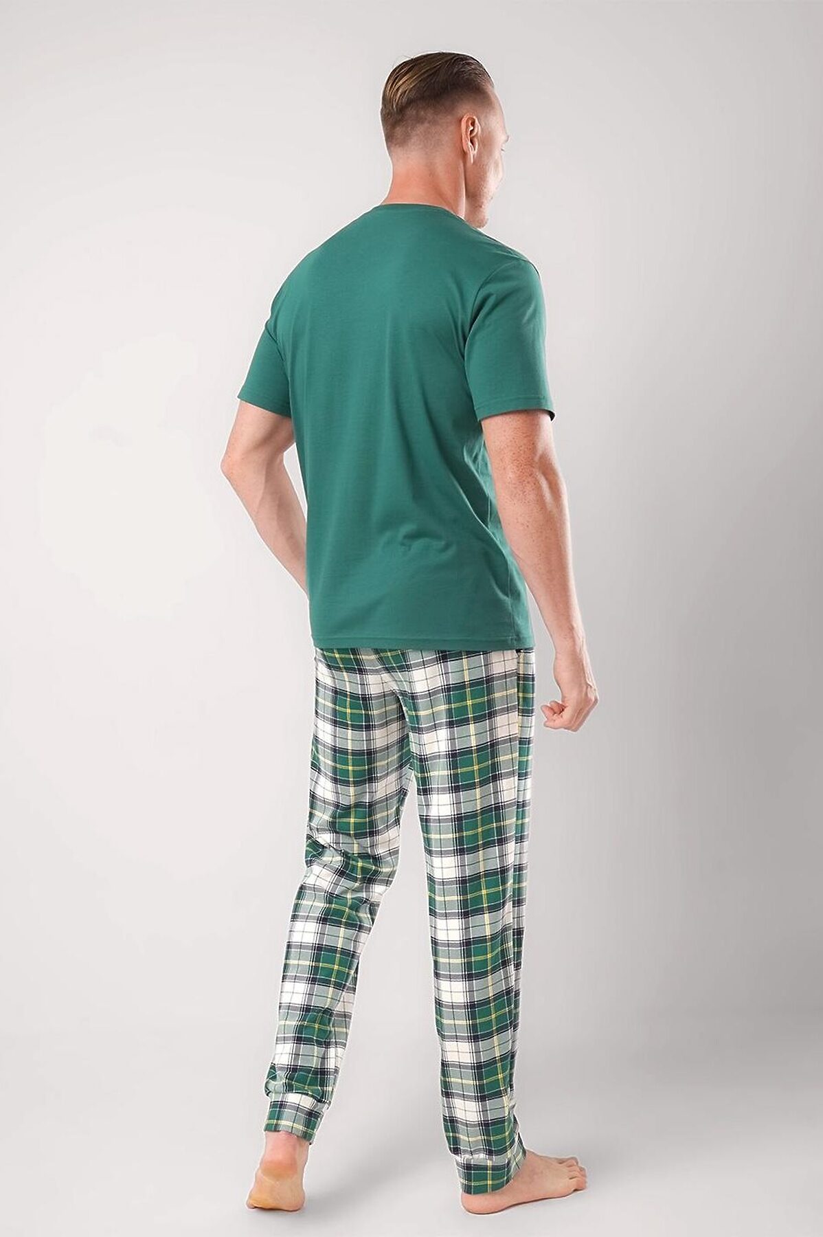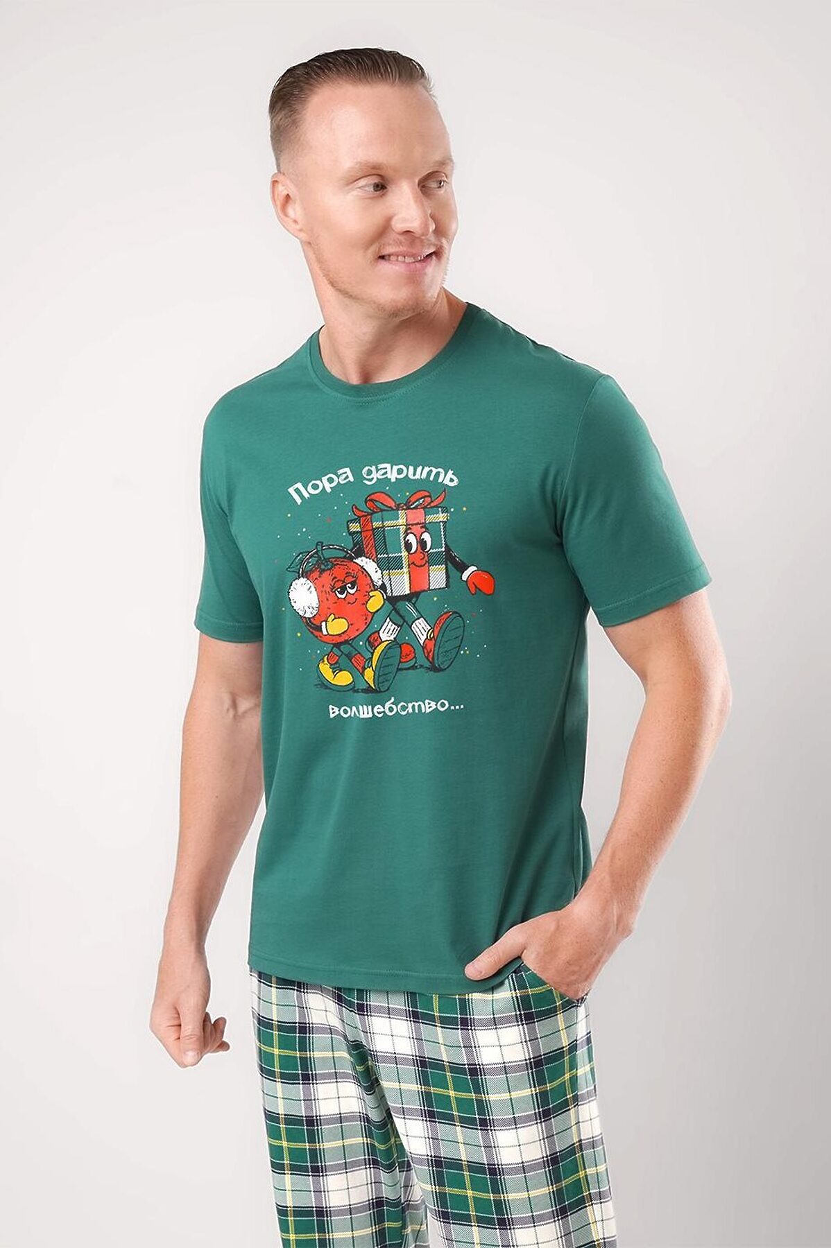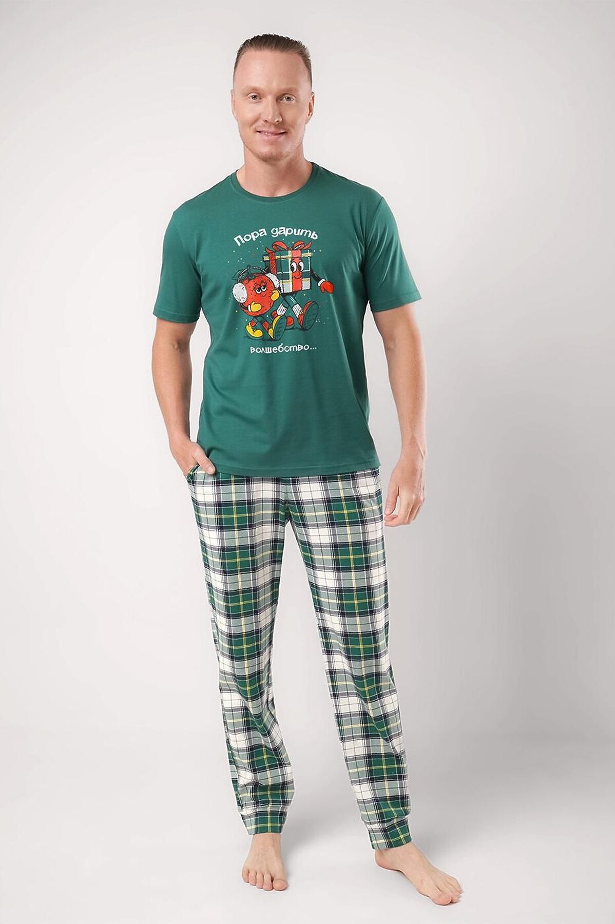 Набор мужской состоящий из футболки и брюк. Футболка из хлопковой кулирной глади с коротким рукавом спереди авторский принт. Брюки из кулирной глади с карбоном на широком поясе с резинкой и шнуром, по бокам удобные карманы по низу манжет.