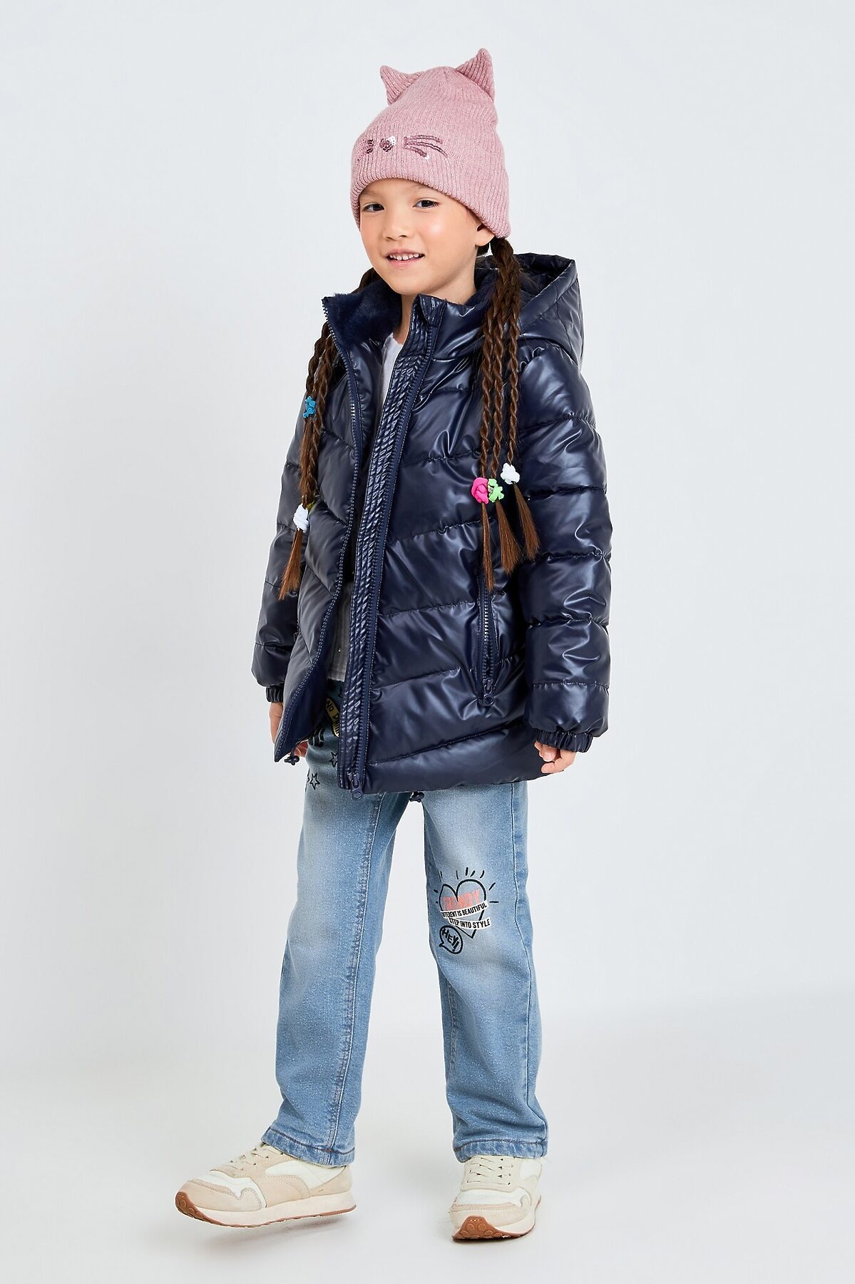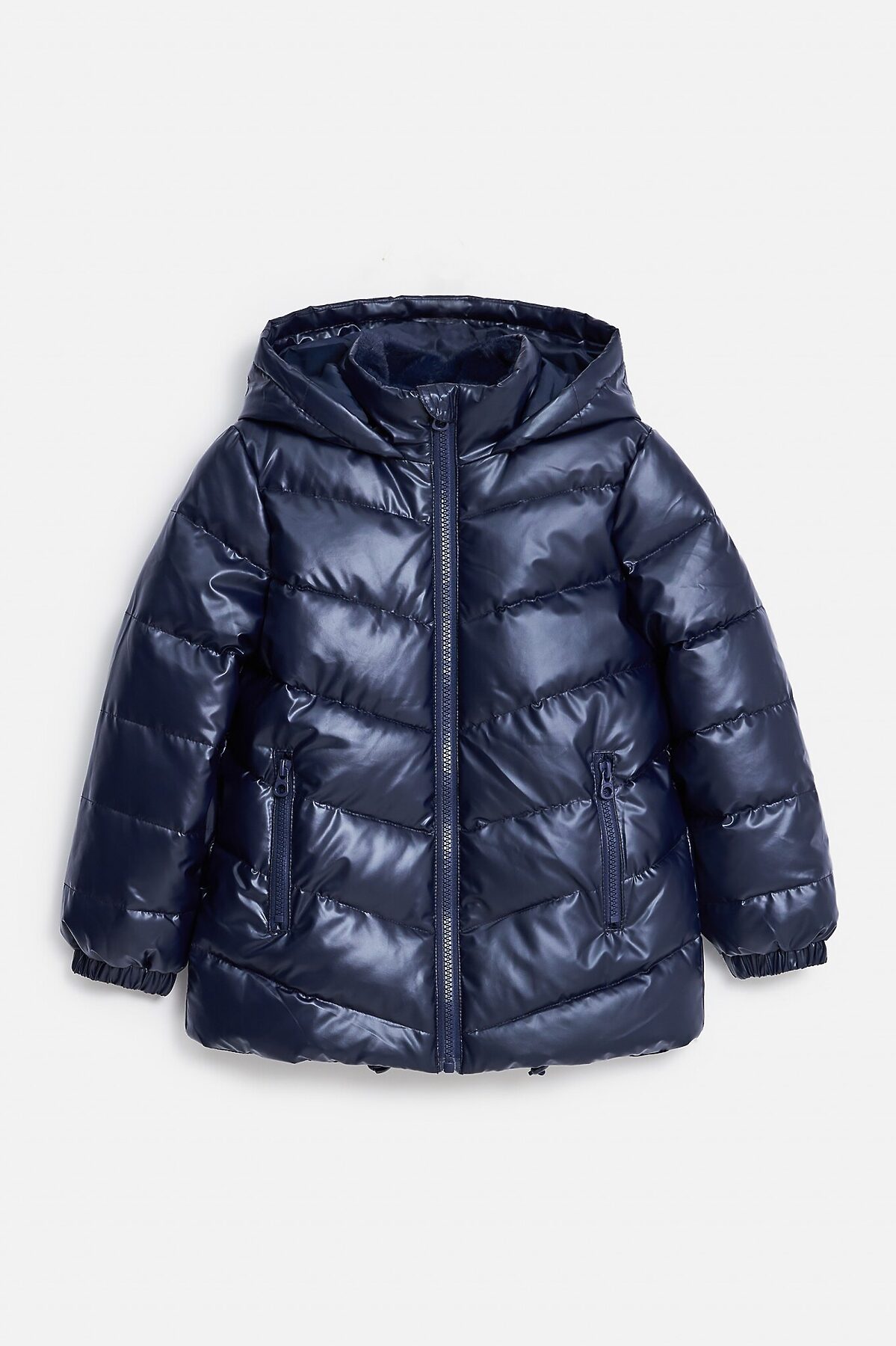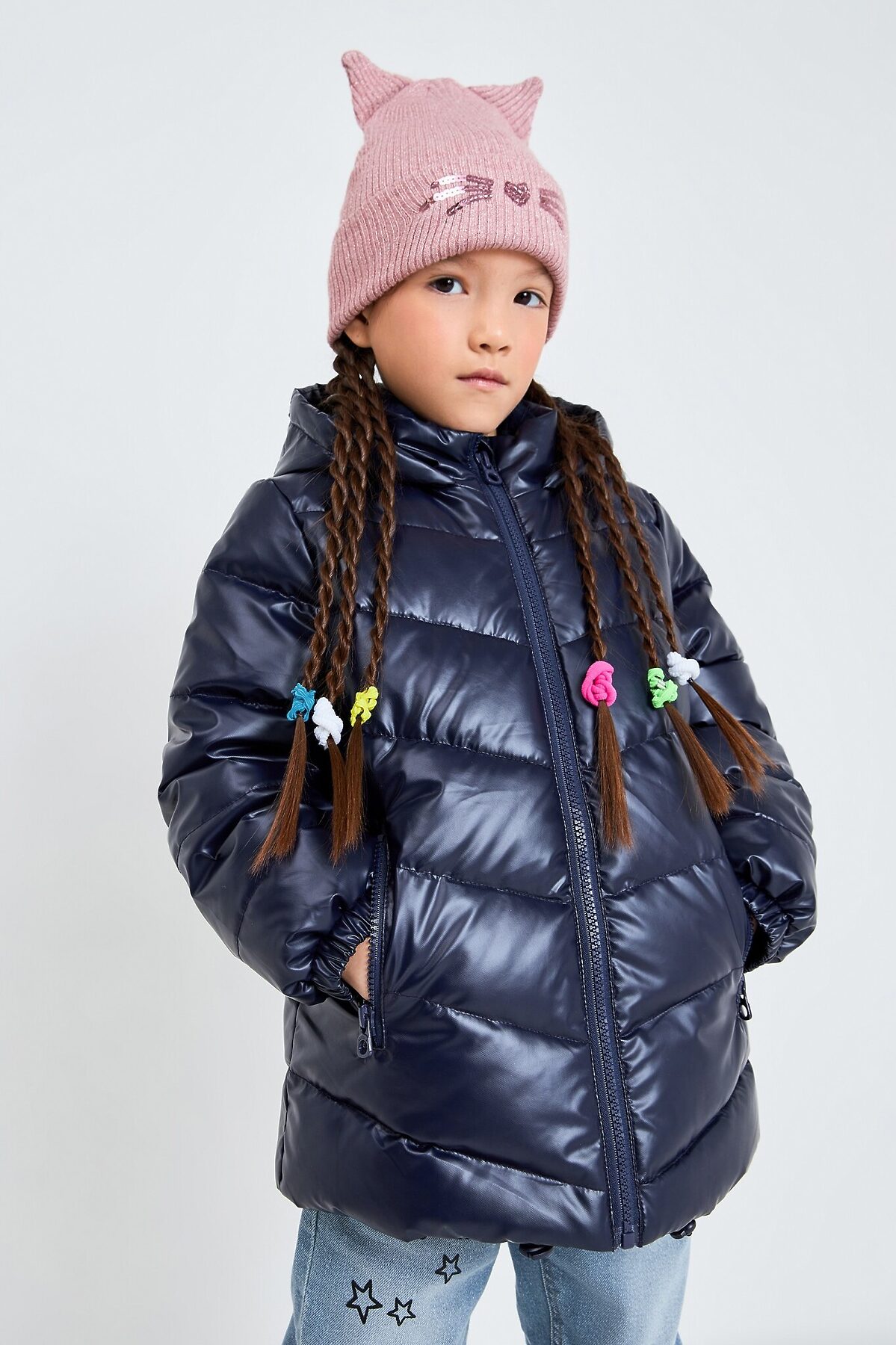 Темно-синяя стеганая куртка для девочек сшита из прочного материала, отлично защищающего от влаги и ветра. Высокотехнологичный наполнитель — искусственный пух. Это гипоаллергенный и водостойкий материал, который хорошо сохраняет тепло. Несъемный капюшон. Мягкая подкладка из искусственного меха на воротнике. Два кармана на молнии спереди. Низ рукавов на резинке. Объем по линии низа регулируется благодаря эластичному шнурку со стопперами. Центральная застежка на молнию. Рекомендуется бережный уход. Рост/размер одежды модели на фото: 110. Рекомендованный температурный режим*: от -10 до 0 C. Вес утеплителя: 250 г/м2 *Температурный режим носит рекомендательный характер. Ощущение тепла и холода зависит от теплообмена ребёнка.
