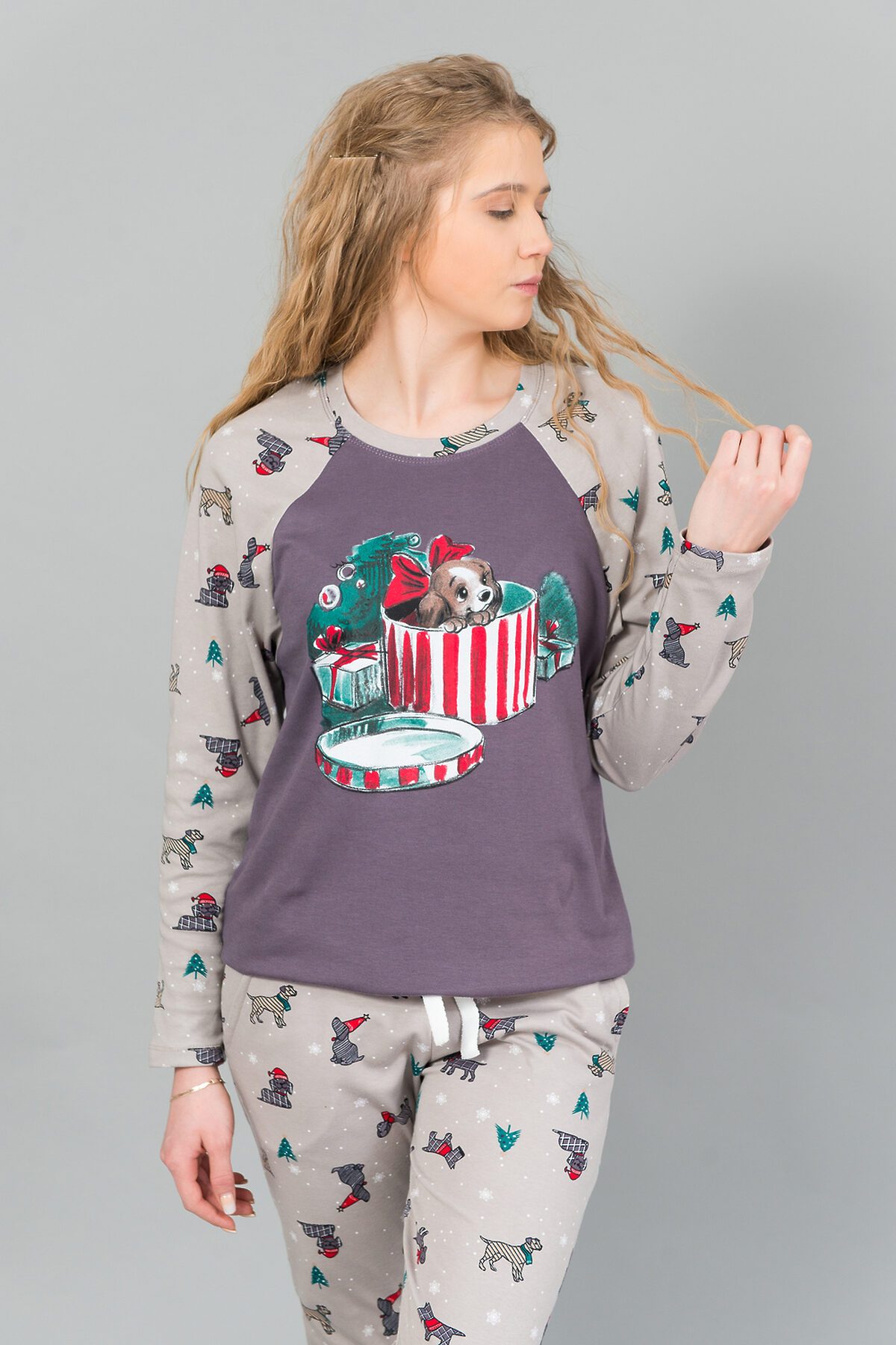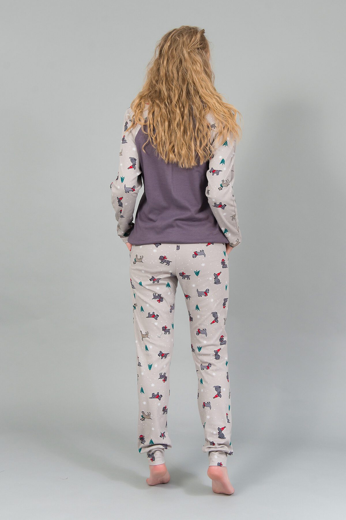 Уютная женская пижама с брюками и кофтой из полуприлегающего кроя. Дизайн позволяет использовать данную модель как пижаму для сна, так и в качестве костюма для дома. Модель выполнена из высококачественного интерлока.