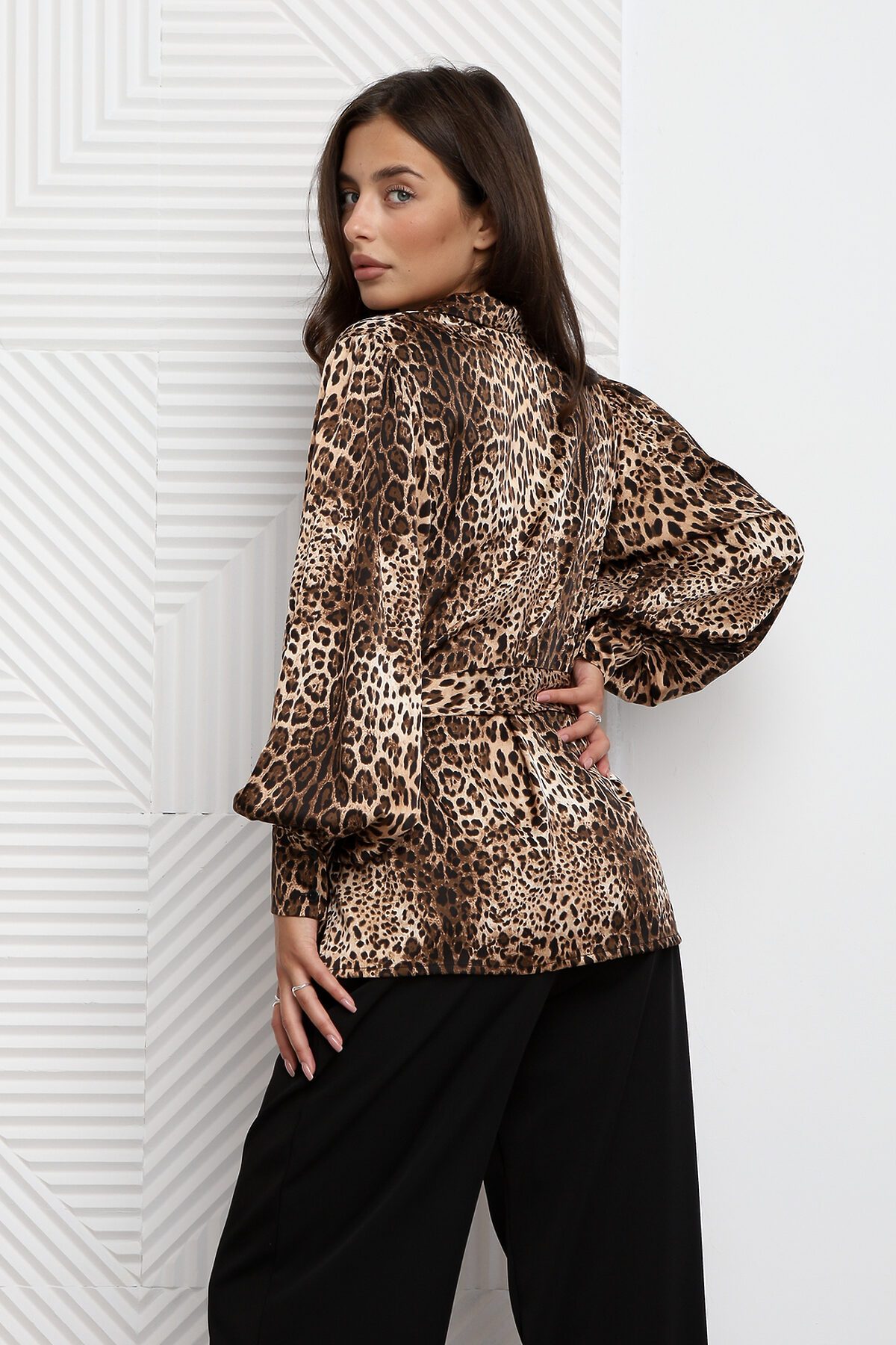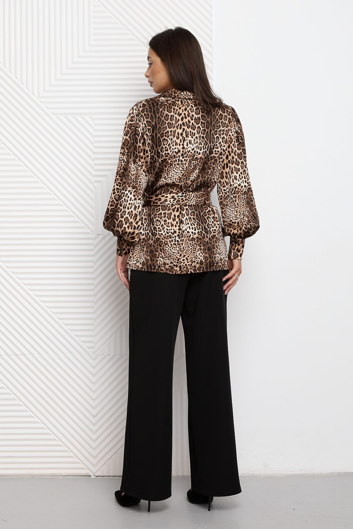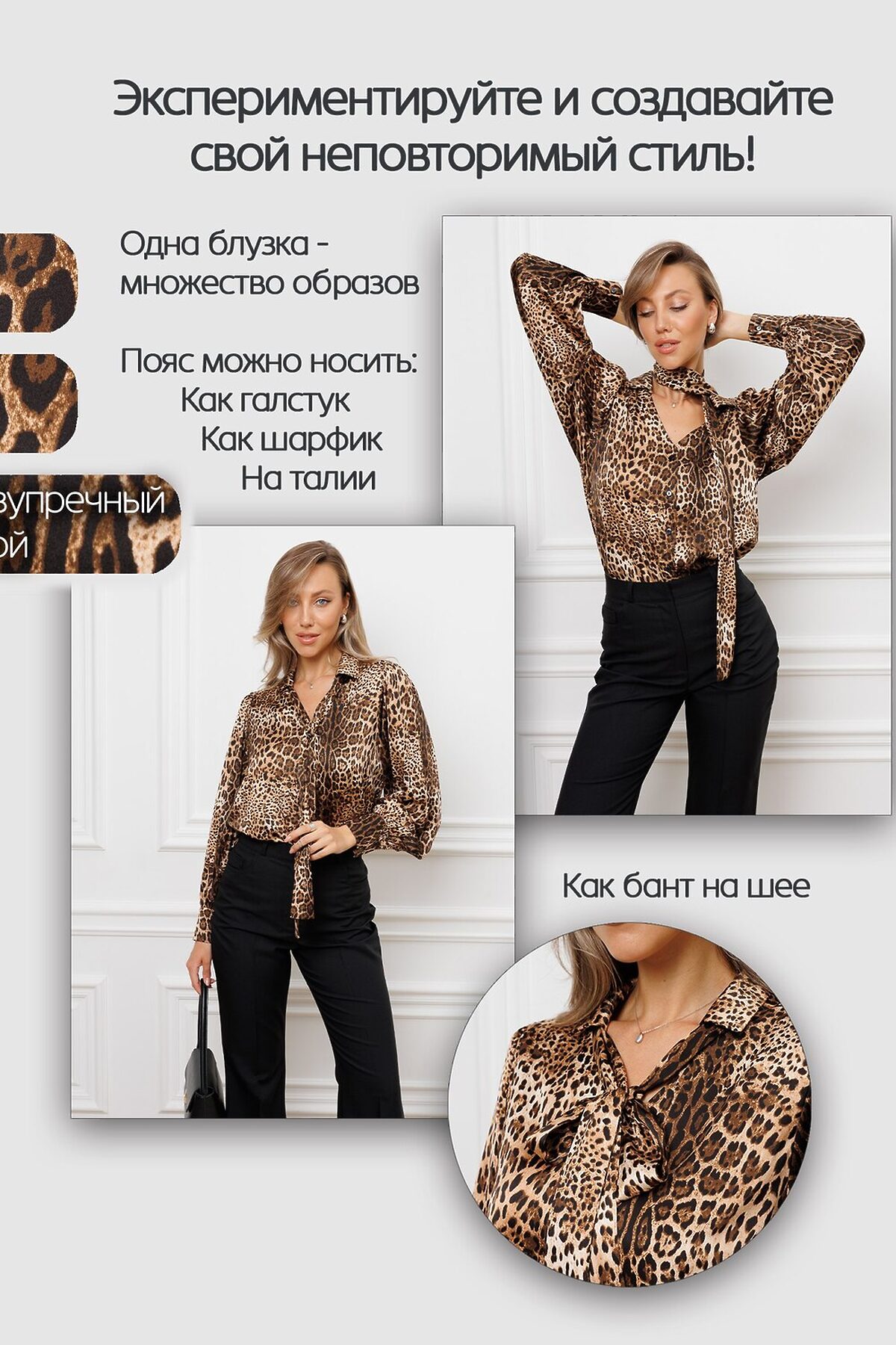 Блузка с поясом от российского производителя бренда женской одежды! Блуза прямого силуэта с V-образным вырезом, застегивается на пуговицы. Данная модель свободного кроя имеет леопардовый принт, в боковых швах имеются разрезы, пояс съемный. Рукав полной длины внизу имеет две складки, разрез и манжету, которая застегивается на две пуговицы. Необычное дизайнерское решение позволило совместить элегантную классику и эффектный стиль. Леопардовая рубашка женская станет отличным дополнением к любому гардеробу. Шелковая модель имеет в комплекте пояс, что подчеркивает талию и создает элегантный силуэт. Стильная блузка с поясом станет отличным выбором для женщин, стремящихся выглядеть нарядно и модно. Изготовленная из легкой атласной ткани, она обладает свободным кроем оверсайз, что обеспечивает комфорт в носке. Черный и белый цвета отлично подойдут как для праздничного мероприятия, так и для офисных встреч. Эта рубашка дополнена рукавами-фонариками, что придает образу романтичности и элегантности. Пояс позволяют регулировать силуэт, создавая акцент на талии. Также присутствует стильный леопардовый принт, который добавляет нотку дерзости в наряд. Блуза идеально подходит для школьной формы или делового стиля. Она станет универсальным элементом гардероба ее можно сочетать с юбками или брюками, создавая разнообразные образы на лето и вечеринки. Праздничные выходы станут еще ярче с этой модной одеждой. Вам понравится удобство и легкость этой женской рубахи! Стройнящий силуэт позволит чувствовать себя уверенно и привлечет внимание окружающих. Нарядная блузка доступна в больших размерах плюс сайз - 50, 52 и 54, будет шикарно смотреться в любом возрасте, подойдет для полных девушек.