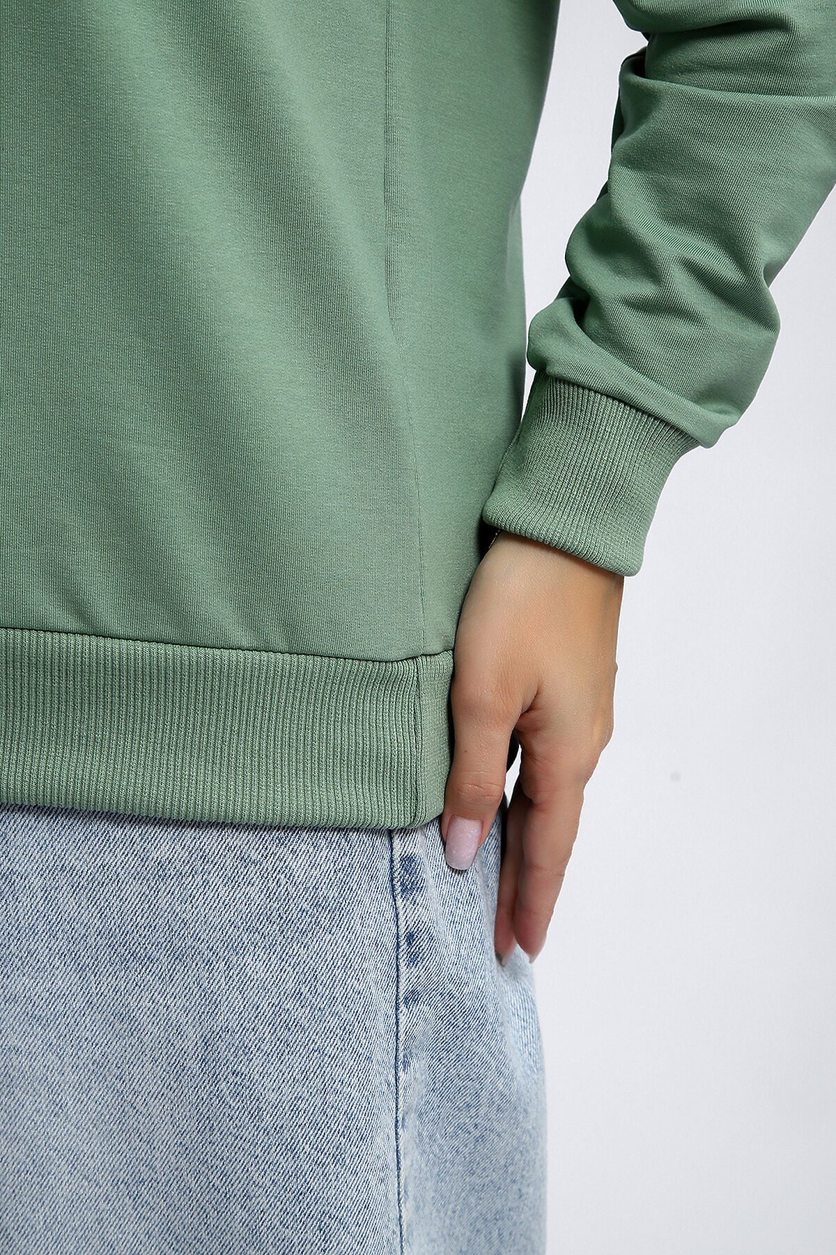 Толстовка свободного кроя оверсайз со спущенной линией плеча прекрасный вариант для прохладной погоды! Мягкое, эластичное кашкорсе в тон ткани использовано для отделки горловины, манжет и пояса. На полочке декоративный принт.