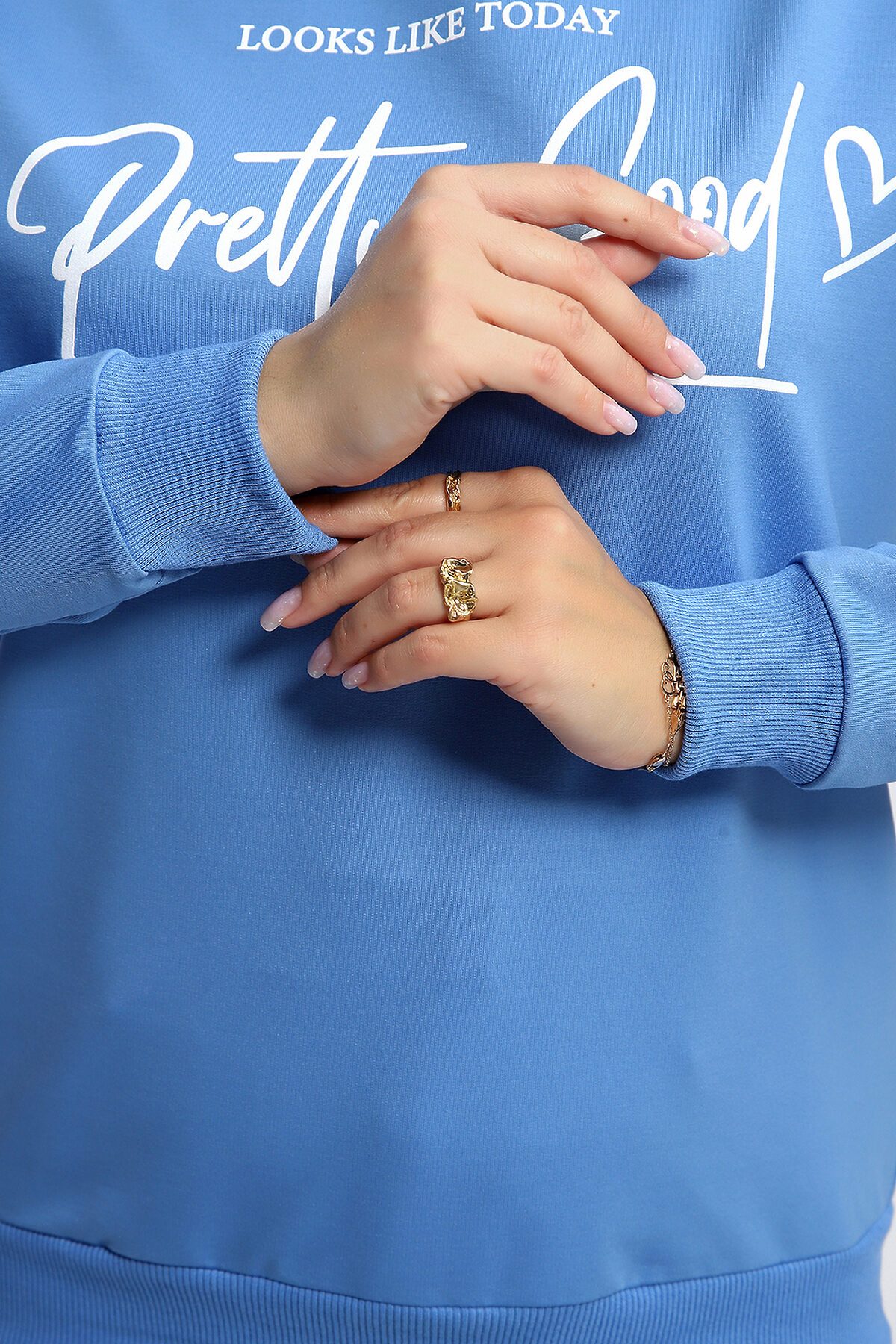 Толстовка свободного кроя оверсайз со спущенной линией плеча прекрасный вариант для прохладной погоды! Мягкое, эластичное кашкорсе в тон ткани использовано для отделки горловины, манжет и пояса. На полочке декоративный принт.