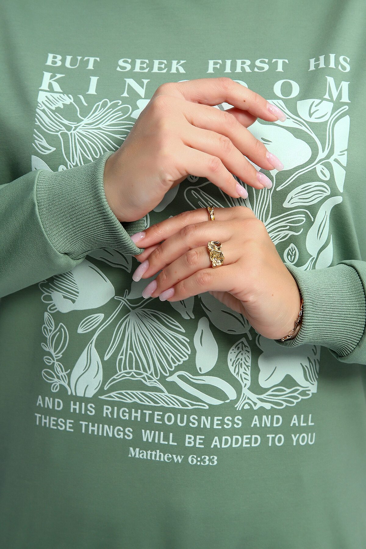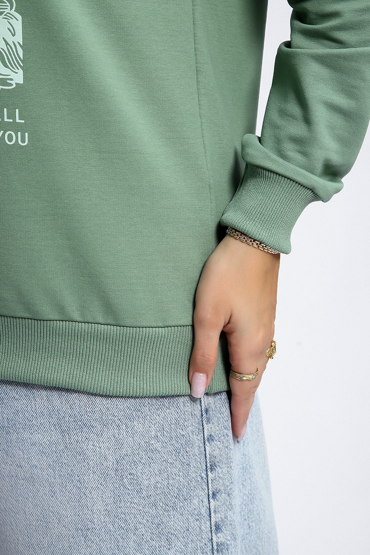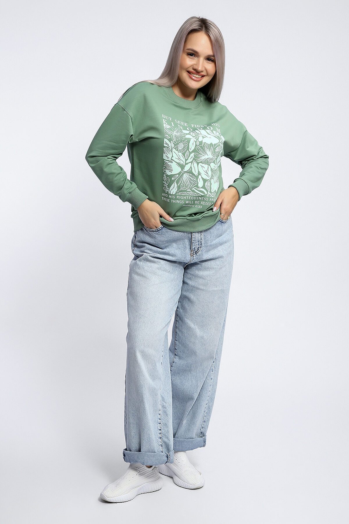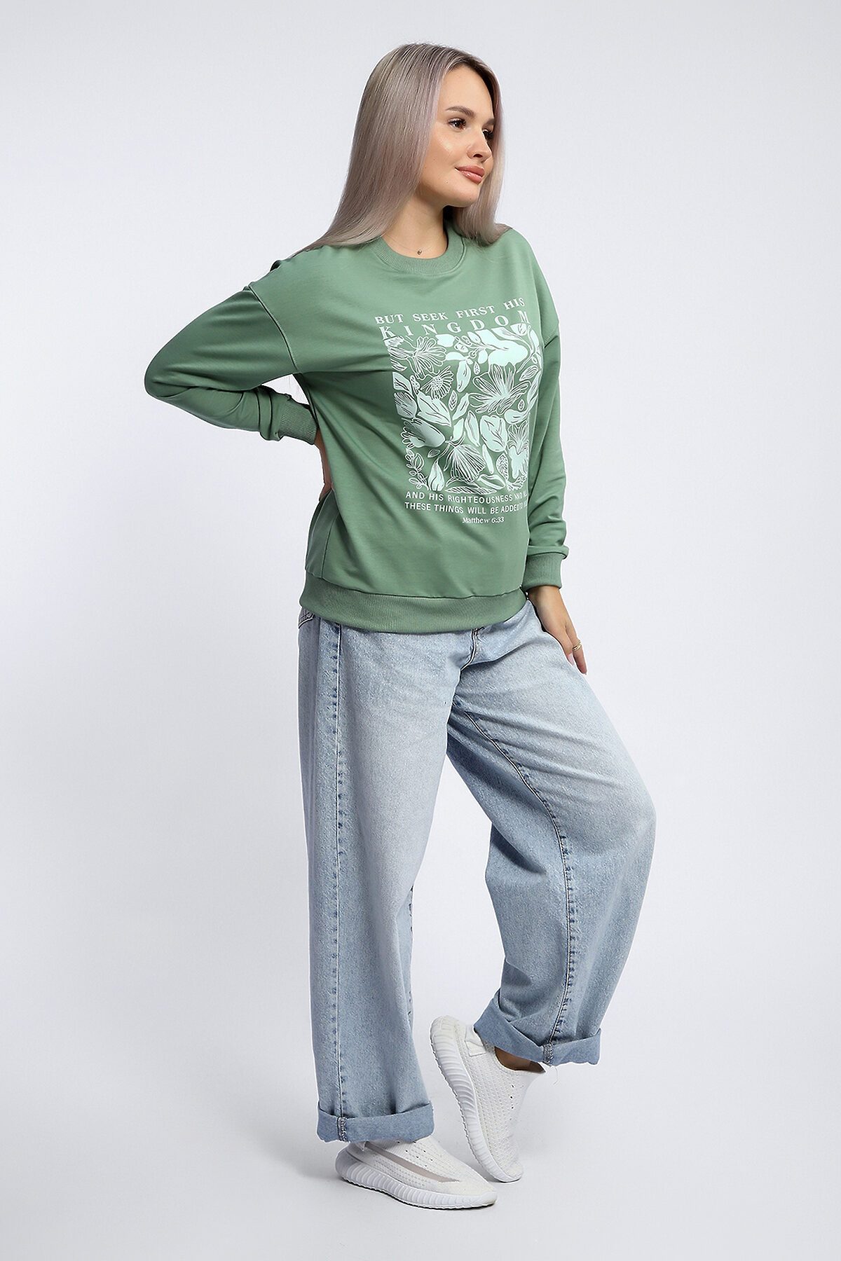 Толстовка свободного кроя оверсайз со спущенной линией плеча прекрасный вариант для прохладной погоды! Мягкое, эластичное кашкорсе в тон ткани использовано для отделки горловины, манжет и пояса. На полочке декоративный принт.
