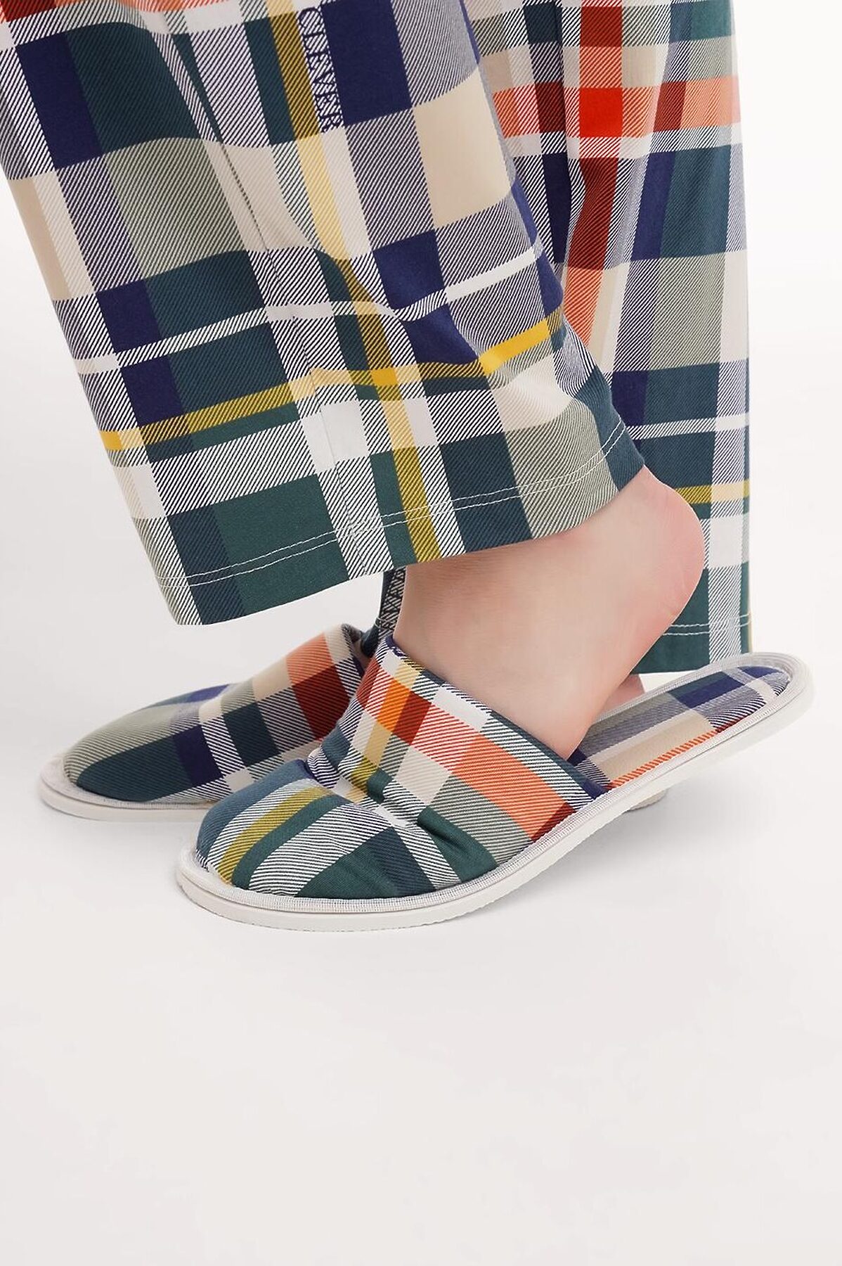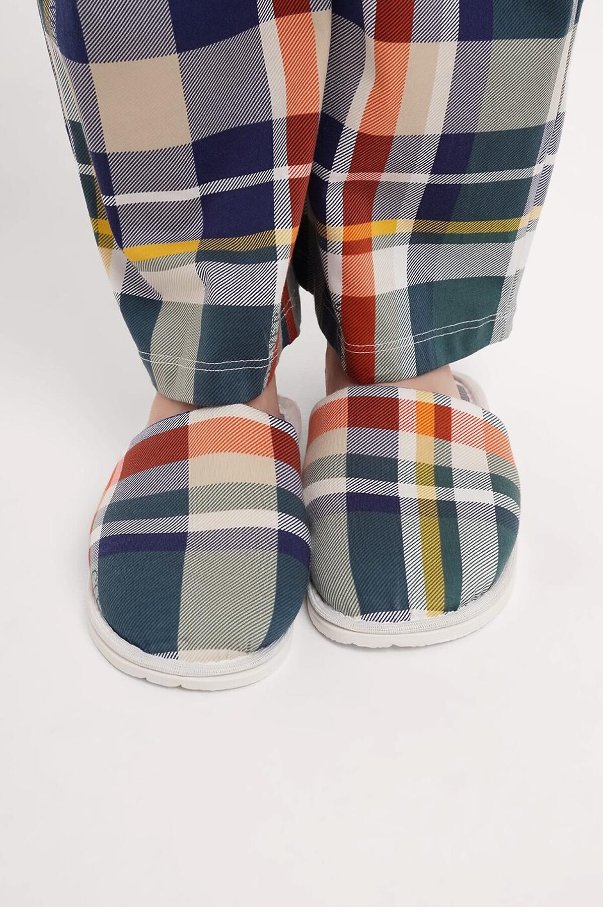 Домашние тапочки с закрытым носом из хлопкового трикотажного полотна.Толстая подошва.