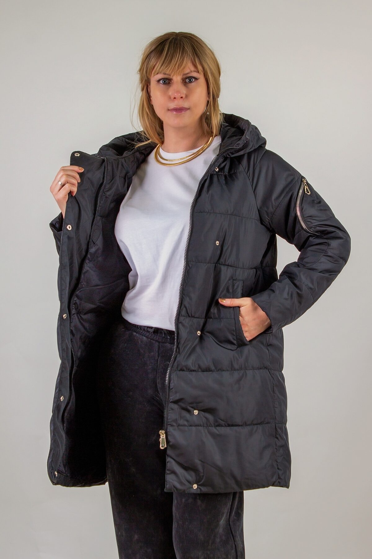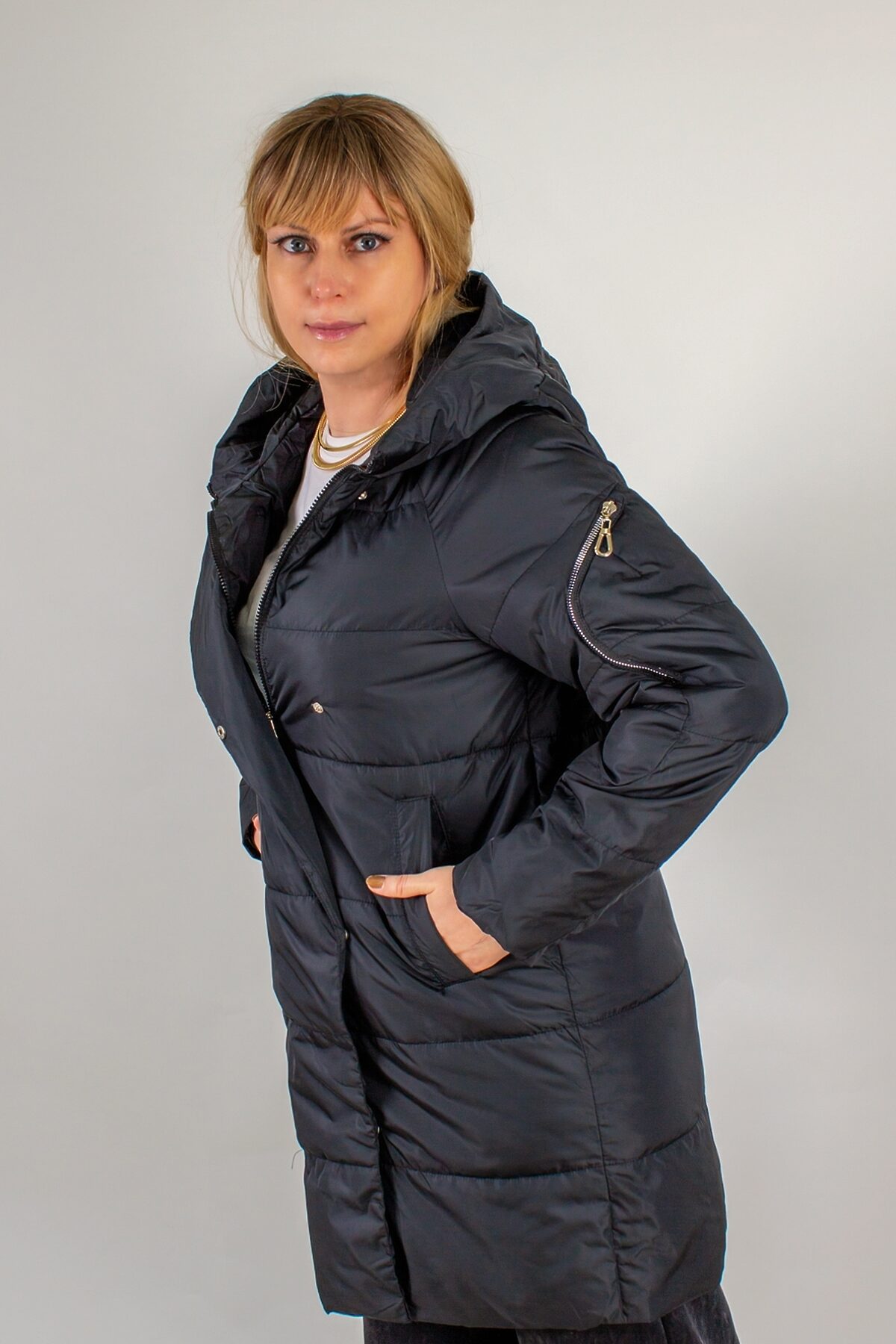 Демисезонная куртка ДемиКарман, арт. Н15 образец продуманного дизайна, в котором комфорт встречается с практичностью. Эта модель создана для переменчивой погоды: она надежно защитит от ветра и легкого дождика, но при этом не перегрузит образ и не отнимет свободу движений. Капюшон с фиксаторами позволяет легко подстроить посадку сохранив тепло и исключив продувание. Центральная двусторонняя молния дополнена планкой на кнопках. Рукава оснащены стильными карманами на закругленных молниях. Они не только придают куртке современный, чуть спортивный характер, но и обеспечивают быстрый доступ к мелочам: ключам, проездному или косметике. Два боковых кармана классического кроя, так что руки останутся сухими и теплыми даже в прохладный осенний день. Горизонтальная простежка придает изделию визуальную легкость. Благодаря ей куртка сохраняет идеальную форму, не теряя элегантности, а наполнитель обеспечивает оптимальный уровень теплоизоляции без излишнего веса. Общая длина 88 см закрывает бедра, создавая стройный силуэт и надежно защищая низ спины от холода. Материалы и продуманная конструкция делают эту модель действительно легкой и комфортной. Она легко сочетается с джинсами и кроссовками, классическими брюками и ботильонами, спортивными лосинами или даже платьем. Универсальность куртки оценят как городские модницы, так и любительницы активного отдыха на природе. Куртка проста в уходе: машинная стирка при низких температурах и деликатный режим гарантируют сохранение цвета и структуры. Выбирая демисезонную куртку ДемиКарман (арт. Н15), вы получаете стильное решение на каждый день, в котором комфорт и функциональность работают на ваш образ.