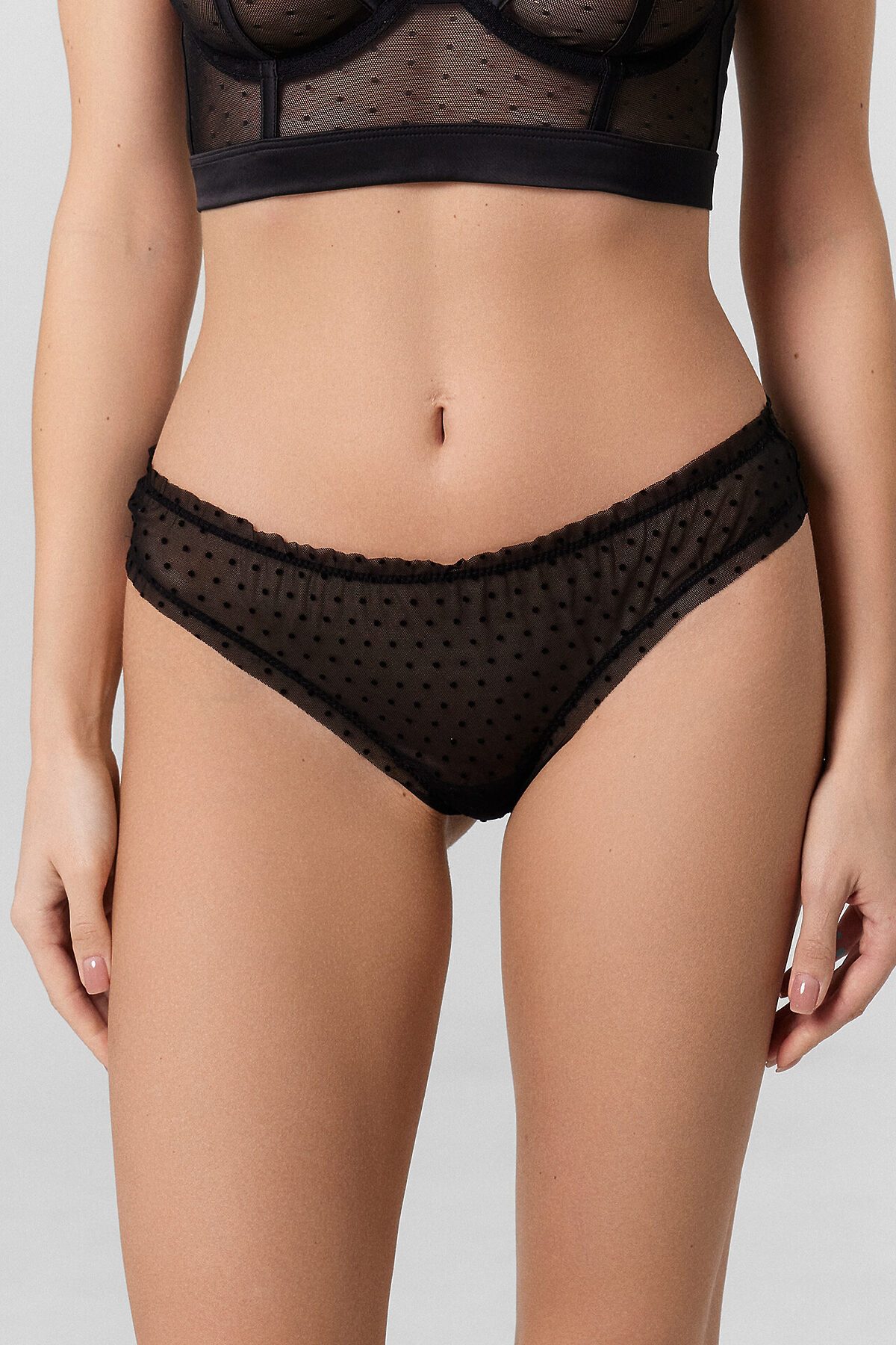 Изящные женские трусики бразилиано – отличная модель для особенных моментов. Для создания этой модели использовали нежную сеточку, которая придает трусикам легкость и изысканность. Для подкладки ластовицы выбран нежный хлопок, обеспечивающий мягкость и комфорт при носке. По верхнему срезу трусиков и по ножкам расположены очаровательные рюши, добавляющие женственности и утонченности. Эта модель станет прекрасным дополнением гардероба, подчеркивая вашу женственность и изящество.