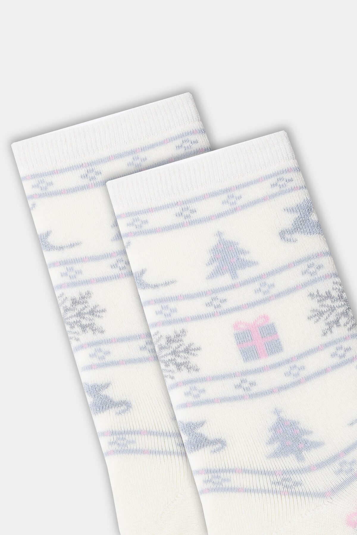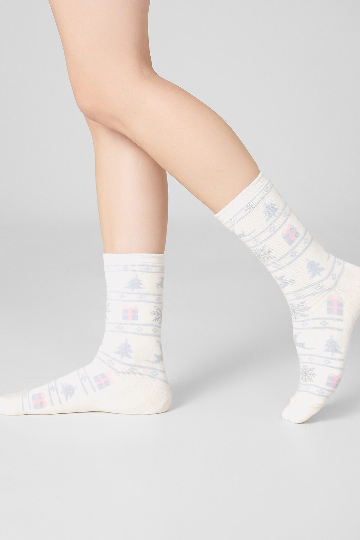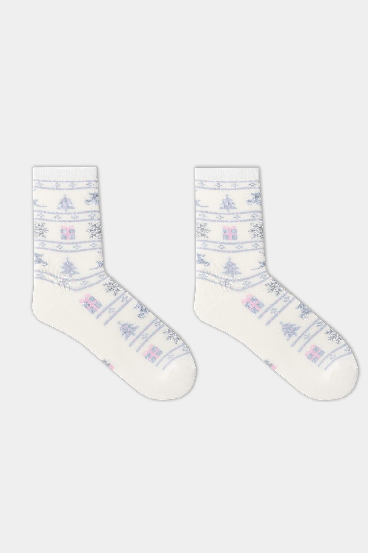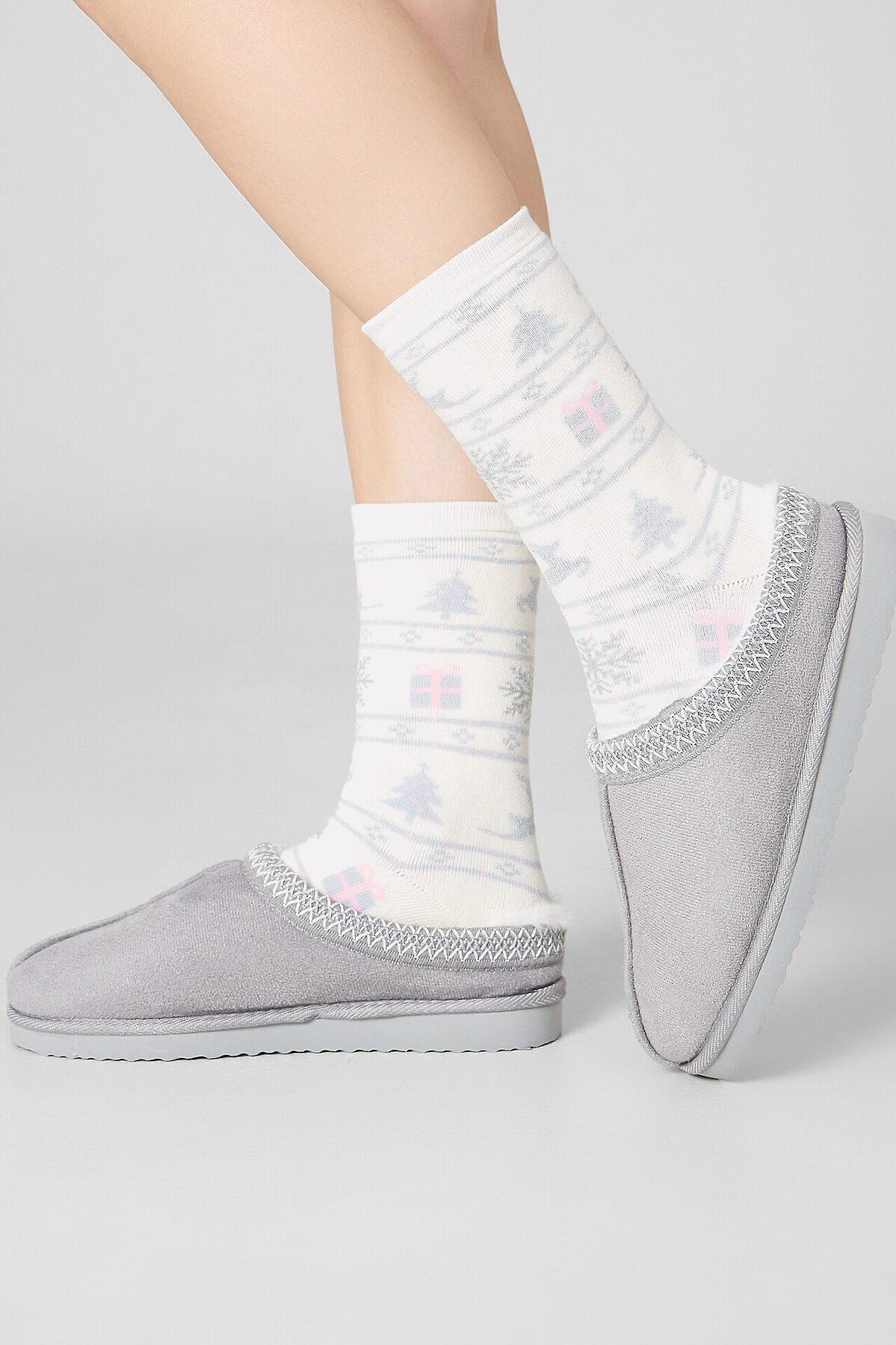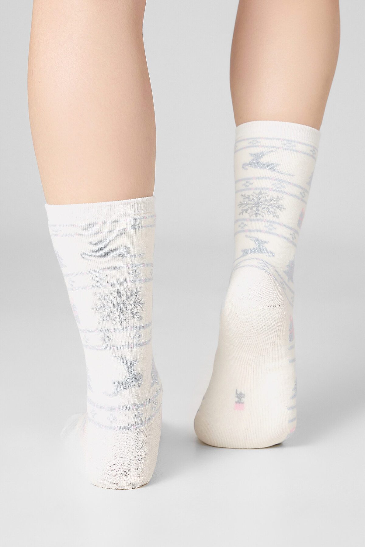 рис.1792 Женские махровые классические носки с рисунком в виде оленей, подарков и елочек.