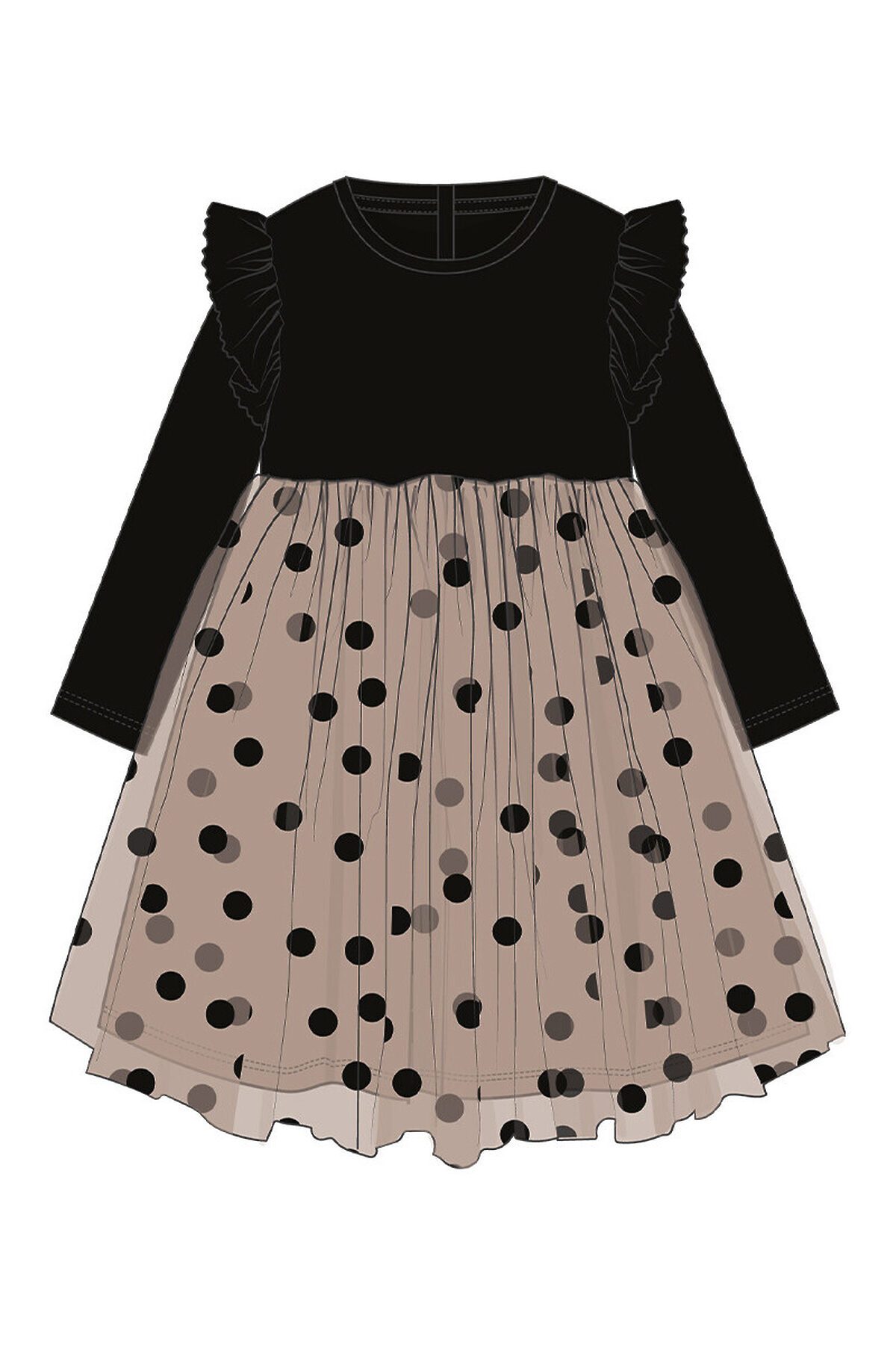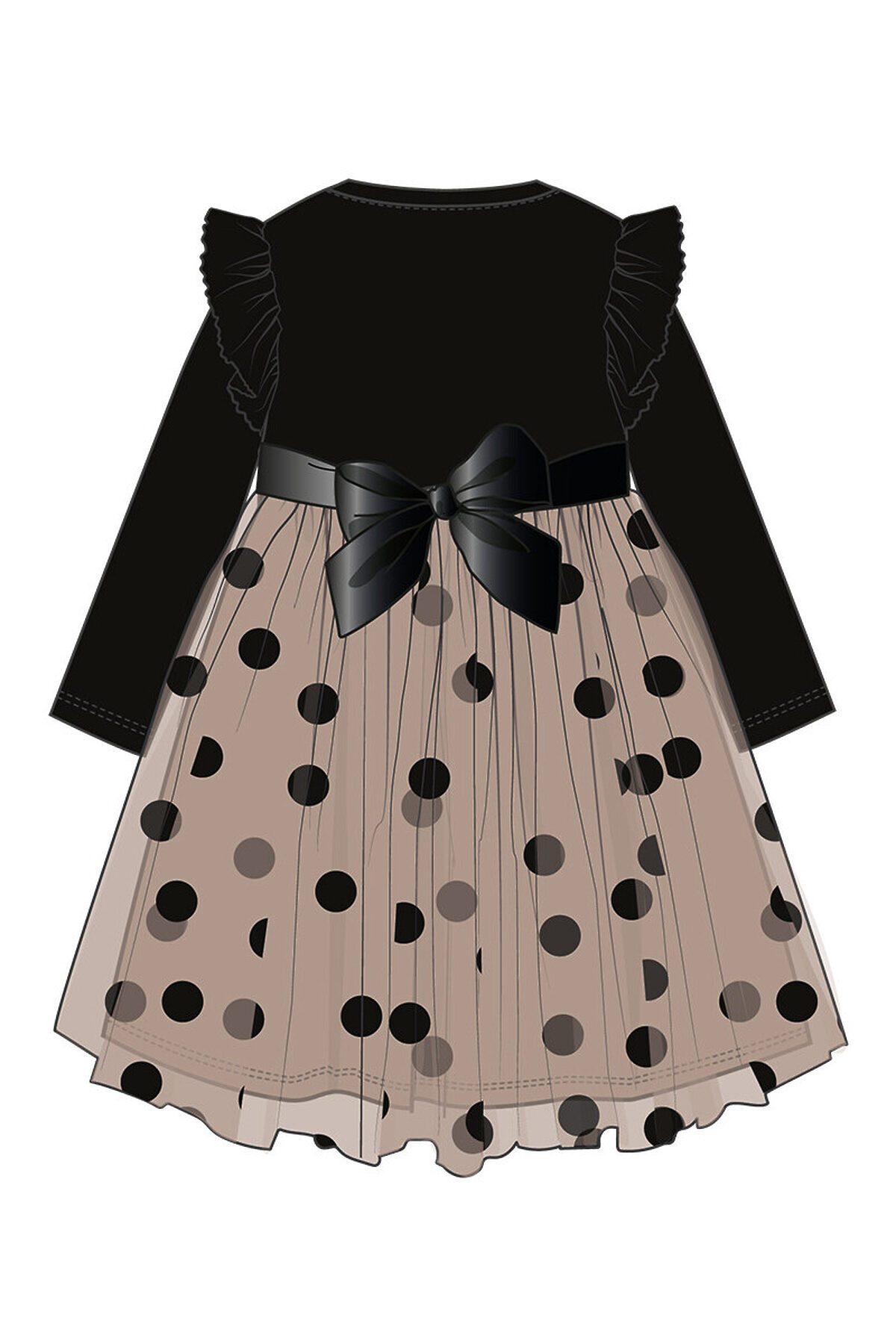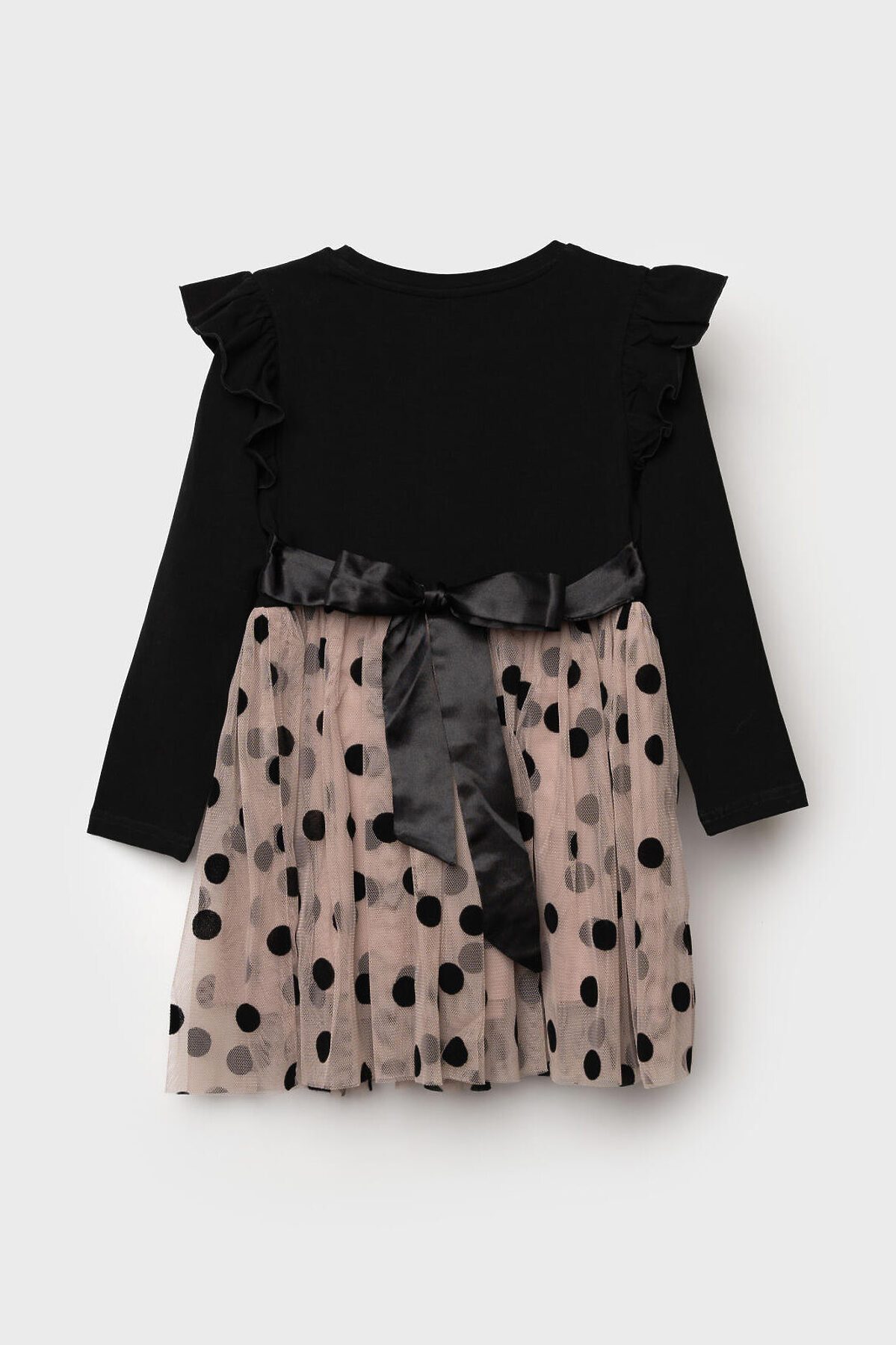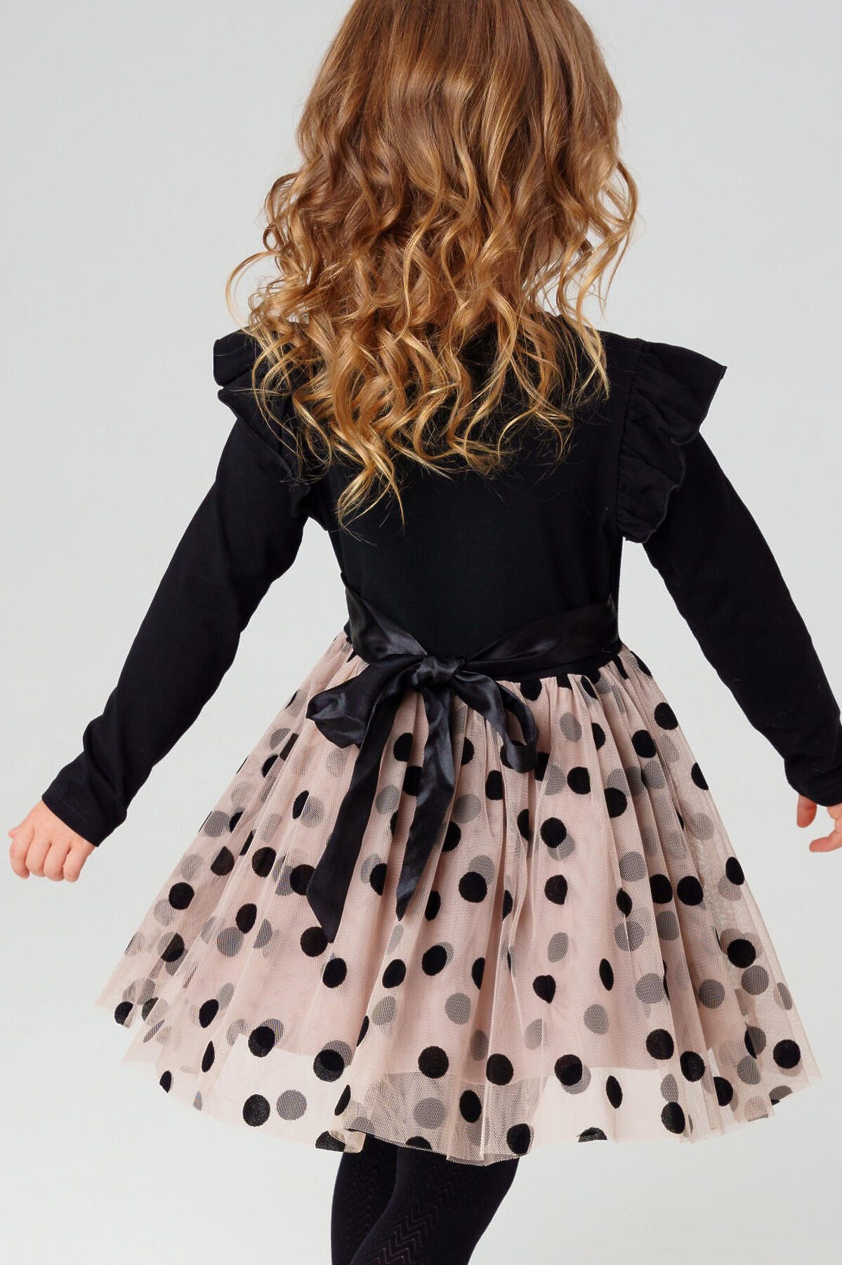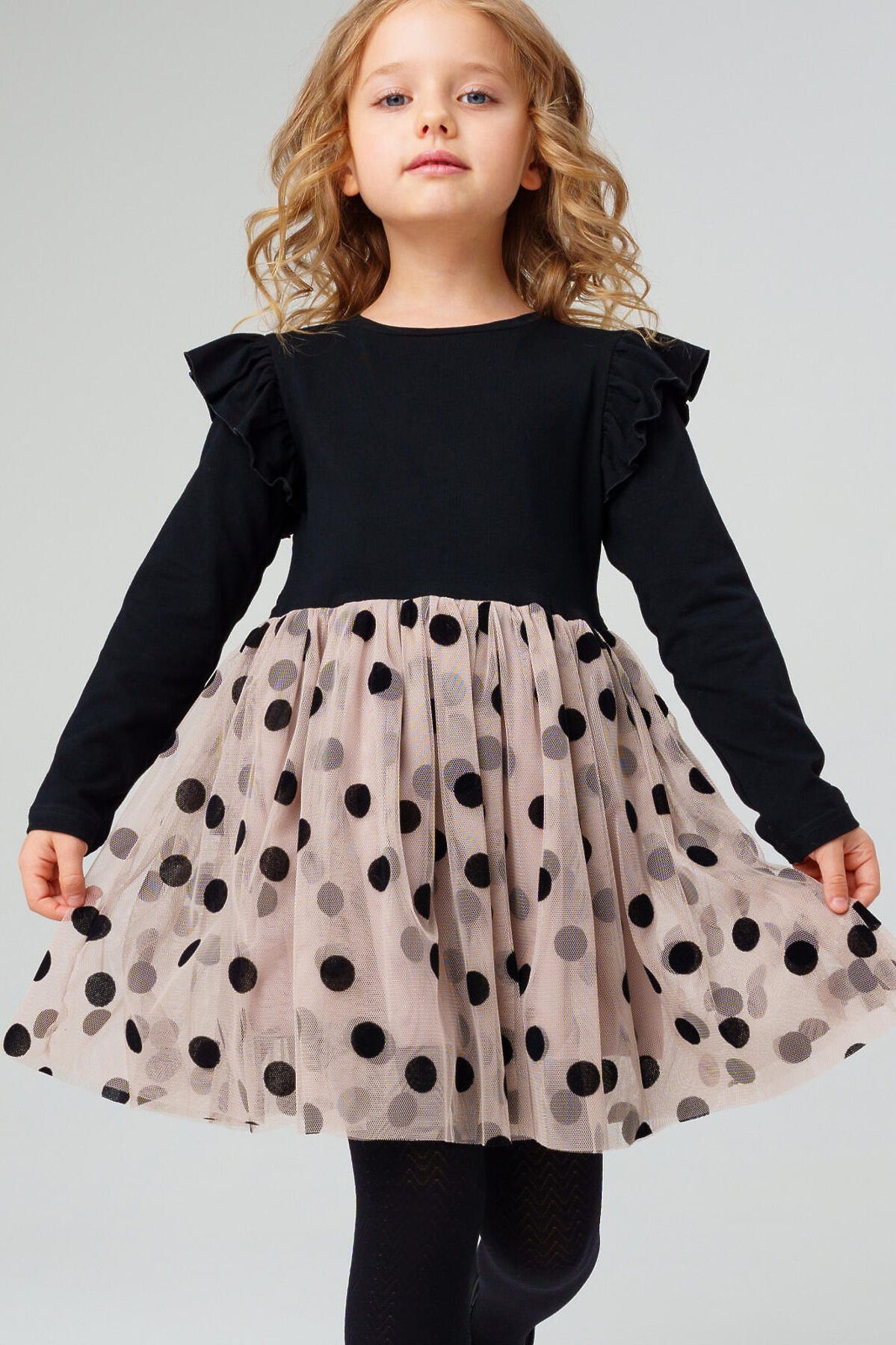 Трикотажное платье для девочки с пышной юбкой из фатина от PlayToday — нежность и стиль в одном образе. Преимущества модели: + мягкий трикотаж — комфортен к телу, не стесняет движений + юбка из сетки с декором — эффектная и воздушная, придаёт образу праздничность + классическая посадка — хорошо сидит по фигуре + пояс с бантом сзади — стильный акцент и удобная фиксация + идеально подходит как платье для девочки на праздник, так и для детского сада или дня рождения Это платье создано для тех, кто хочет выглядеть нарядно каждый день. Удобный трикотажный верх сочетается с воздушной юбкой из сетки с бархатными горошинами. Такой образ подойдёт и для праздника, и для повседневной сказки. Когда и как носить: Платье подойдёт для утренников, фотосессий, семейных мероприятий, похода в гости или театра. Также отлично смотрится как наряд на каждый день — лёгкий, удобный и очень красивый. Советы по стилю: Сочетайте с балетками, колготками и ободком — и получите завершённый праздничный образ. В прохладную погоду добавьте кардиган или жакет. Модель рассчитана на девочек от 3 до 7 лет.