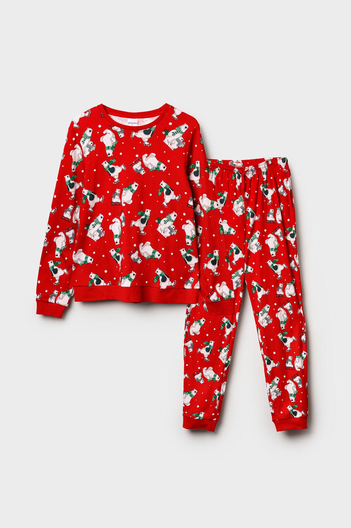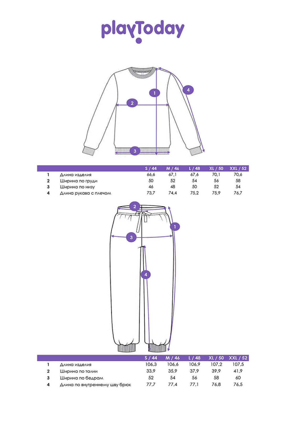 Женская трикотажная пижама от PlayToday — уютная и яркая, словно любимый домашний праздник. Мягкий свитшот и удобные брюки на резинке создают идеальный комплект для сна и расслабленных вечеров дома. Преимущества модели: + мягкий свитшот свободного кроя — комфорт в любое время суток + брюки на резинке — удобная посадка без давления + отсутствие карманов — ничто не мешает во время сна + эластичный трикотаж — дышит, приятен к телу и дарит свободу движений + яркий принт — поднимает настроение каждый день + универсальный фасон — подходит для сна и как домашний костюм Эта женская пижама из трикотажа создана для максимального уюта. Ткань мягкая и эластичная, не раздражает кожу и сохраняет форму после стирок. Благодаря свободному крою пижама не стесняет движений и подходит для спокойного сна. Совет по стилю: Носите пижаму с мягкими носками или уютным халатом PlayToday, чтобы создать по-настоящему домашний комплект. Размеры: модель представлена в линейке S, M, L, XL, XXL. Женская трикотажная пижама от PlayToday — это комфортная домашняя одежда, которая дарит тепло и уют каждый день.