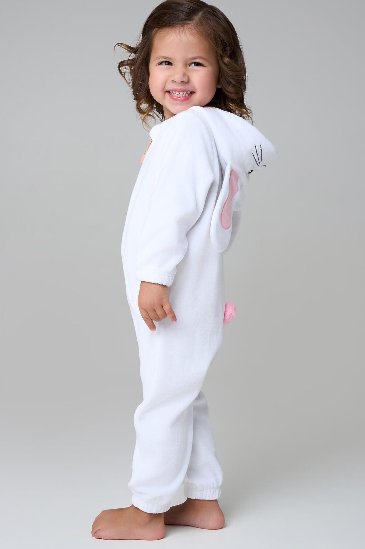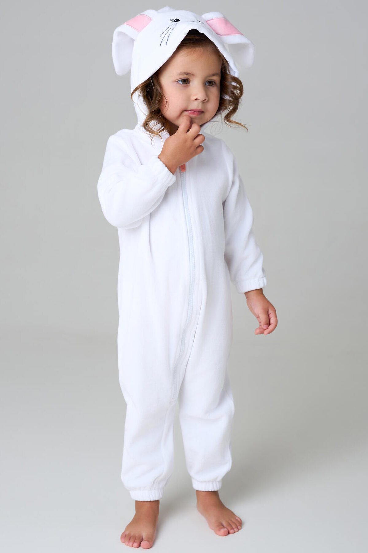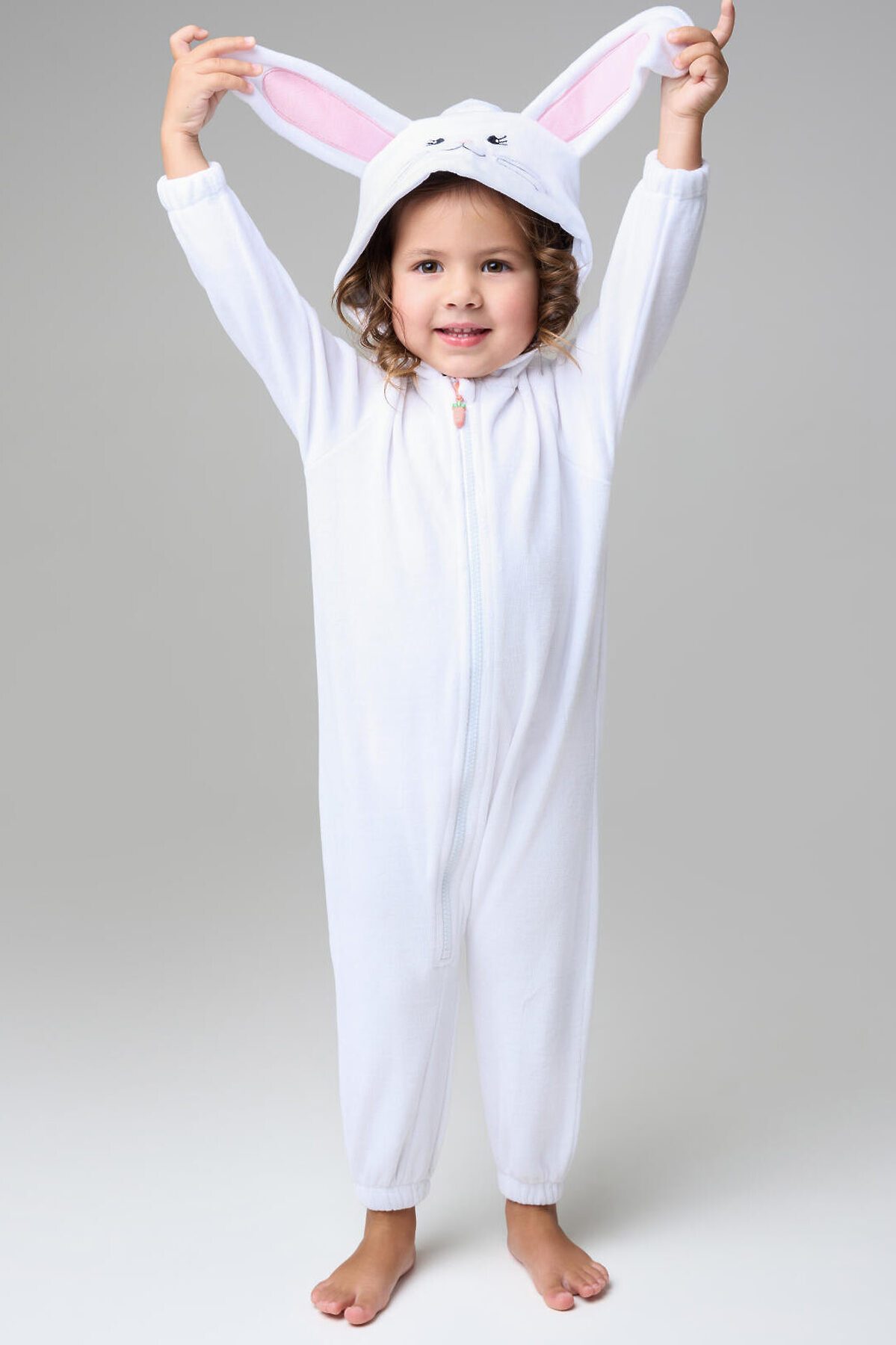 Детский трикотажный кигуруми для девочки от PlayToday — мягкий, как облако, и милый, как пушистый зайка. В нём малышка будет чувствовать себя комфортно и дома, и на празднике, и во время сна. Преимущества модели: + застёжка на молнию по всей длине — легко надеть даже на непоседу + мягкий смесовый велюр на хлопковой основе — приятный к телу, дышит и удерживает тепло + декор на капюшоне: вышитая мордашка и ушки зайки — создают игривое настроение + объёмный хвостик на спинке — забавный акцент + низ рукавов и брюк на резинке — удобная посадка и защита от задирания + свободный крой — не сковывает движений + отсутствие карманов — ничего не мешает во время сна или игр Этот кигуруми для девочек сочетает уют и очарование: мягкий велюр нежно касается кожи, не вызывает раздражений и подходит даже для чувствительной кожи. Благодаря хлопковой основе материал дышит, сохраняя комфортную температуру. Застёжка-молния делает переодевание быстрым, а эластичные манжеты и низ брюк обеспечивают идеальную посадку. Совет по стилю: Такой кигуруми можно носить как домашнюю пижаму, карнавальный костюм или уютную одежду для отдыха. Сочетайте с мягкими тапочками или носочками PlayToday для полного комфорта. Размеры: модель представлена на рост 80, 86 и 92 см — подходит для девочек от 1 года до 3 лет. Модный детский кигуруми в виде зайки для девочки от PlayToday — это тепло, нежность и улыбки каждый день.