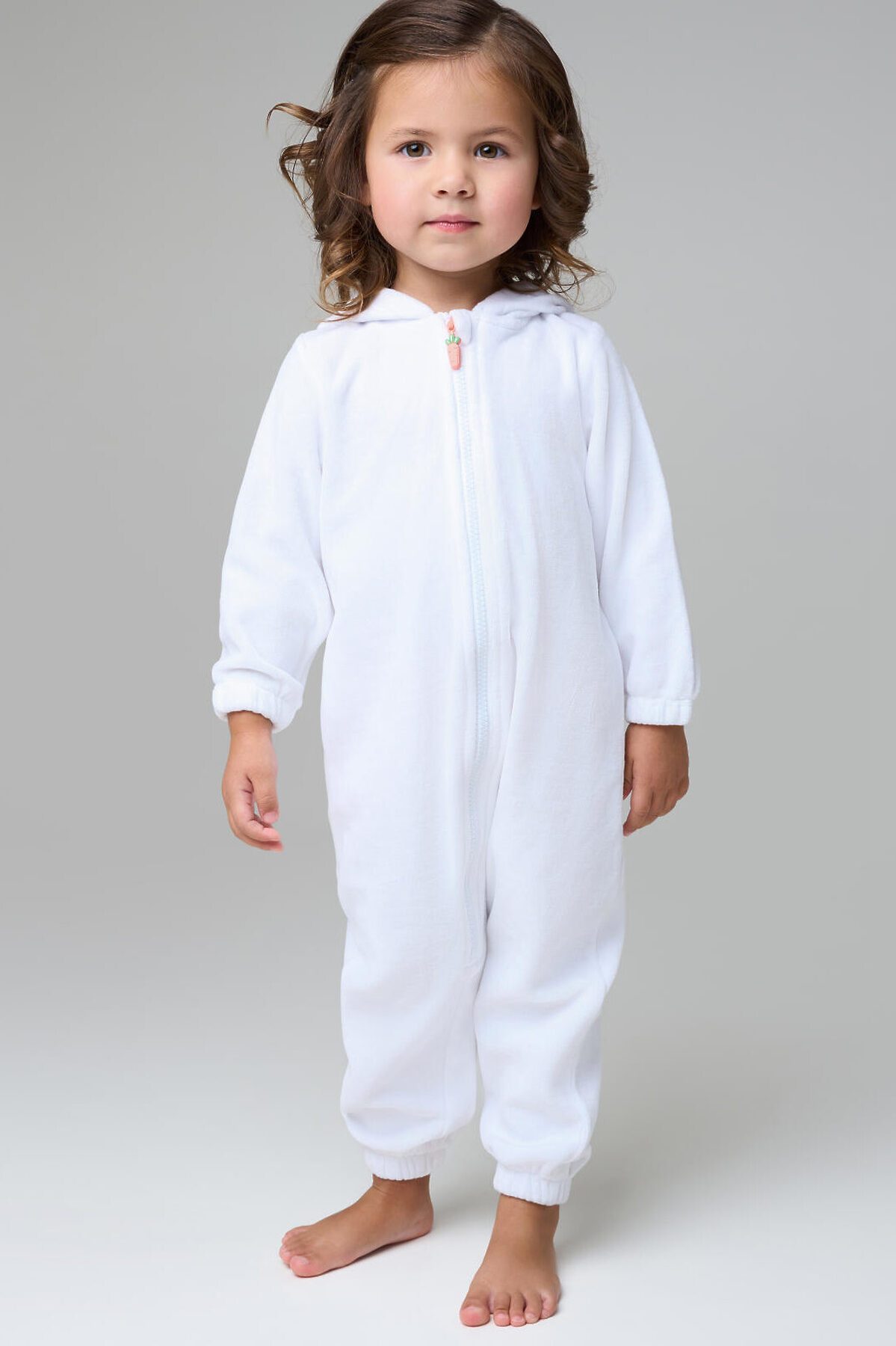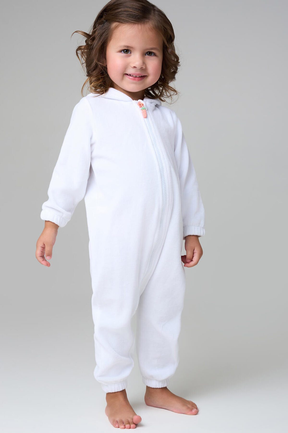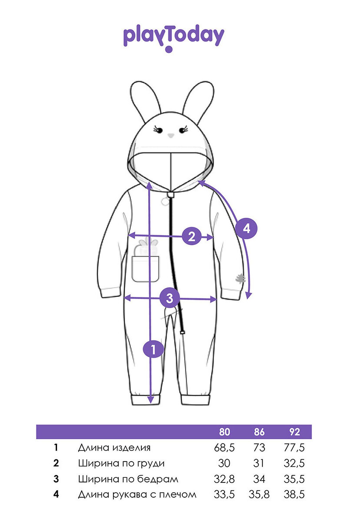 Детский трикотажный кигуруми для девочки от PlayToday — мягкий, как облако, и милый, как пушистый зайка. В нём малышка будет чувствовать себя комфортно и дома, и на празднике, и во время сна. Преимущества модели: + застёжка на молнию по всей длине — легко надеть даже на непоседу + мягкий смесовый велюр на хлопковой основе — приятный к телу, дышит и удерживает тепло + декор на капюшоне: вышитая мордашка и ушки зайки — создают игривое настроение + объёмный хвостик на спинке — забавный акцент + низ рукавов и брюк на резинке — удобная посадка и защита от задирания + свободный крой — не сковывает движений + отсутствие карманов — ничего не мешает во время сна или игр Этот кигуруми для девочек сочетает уют и очарование: мягкий велюр нежно касается кожи, не вызывает раздражений и подходит даже для чувствительной кожи. Благодаря хлопковой основе материал дышит, сохраняя комфортную температуру. Застёжка-молния делает переодевание быстрым, а эластичные манжеты и низ брюк обеспечивают идеальную посадку. Совет по стилю: Такой кигуруми можно носить как домашнюю пижаму, карнавальный костюм или уютную одежду для отдыха. Сочетайте с мягкими тапочками или носочками PlayToday для полного комфорта. Размеры: модель представлена на рост 80, 86 и 92 см — подходит для девочек от 1 года до 3 лет. Модный детский кигуруми в виде зайки для девочки от PlayToday — это тепло, нежность и улыбки каждый день.