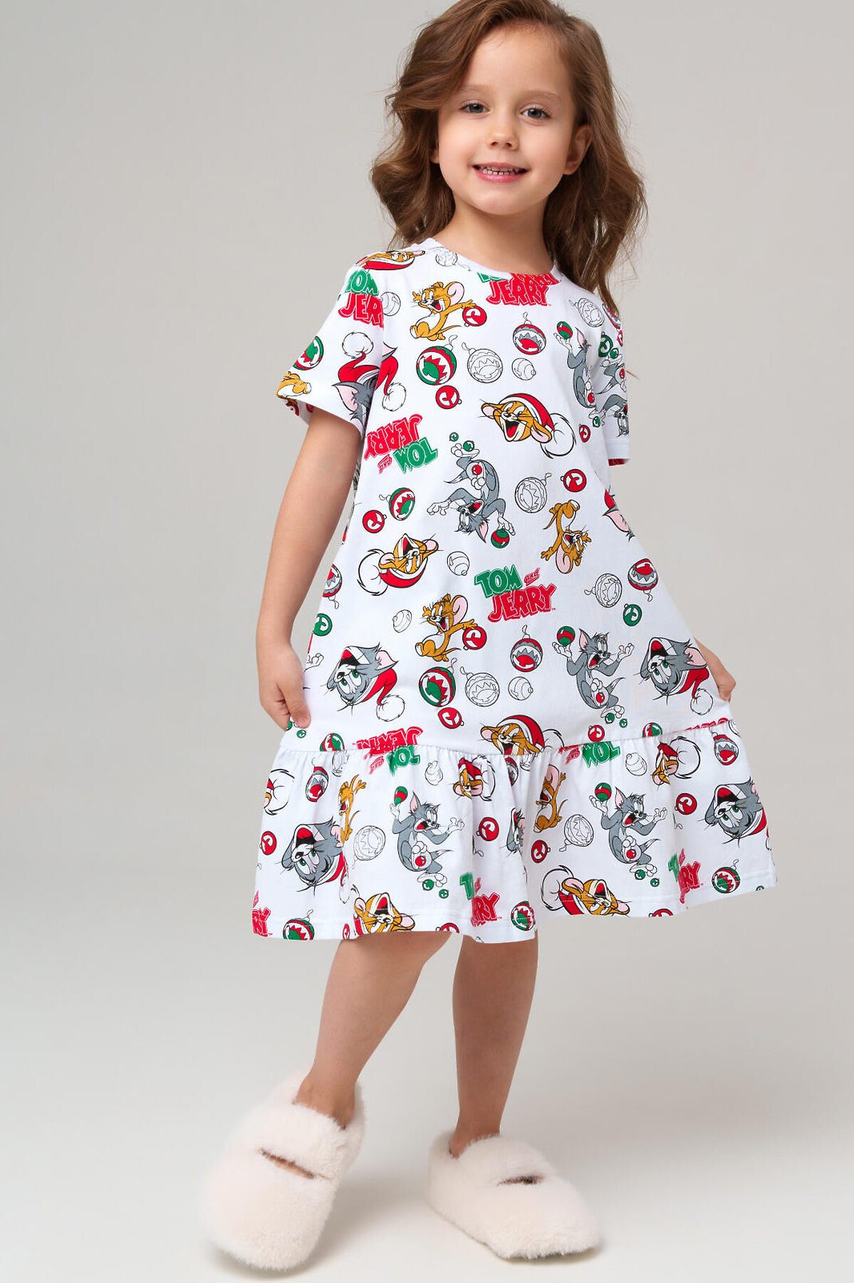 Детская трикотажная ночная сорочка для девочки с героями Том и Джерри от PlayToday — мягкий и яркий вариант для спокойного сна и уютного отдыха дома. Свободный крой и короткие рукава обеспечивают комфорт в течение всей ночи, а любимые персонажи на ткани делают сорочку особенно привлекательной для ребёнка. Преимущества модели: + мягкий хлопковый трикотаж — приятен к телу и не раздражает кожу + свободный крой — не стесняет движений во сне + короткие рукава — комфорт в тёплое время года + яркий принт Том и Джерри — любимые герои всегда рядом + универсальность — подойдёт и для сна, и как лёгкий домашний наряд Сорочка PlayToday помогает девочке чувствовать себя свободно и уютно. Яркий лицензионный принт с Томом и Джерри превращает обычный вечерний ритуал в праздник и делает сорочку любимой частью гардероба. Совет по стилю: Сорочка отлично сочетается с домашними тапочками и лёгким халатиком PlayToday — это готовый комплект для сна и утренних сборов. Размеры: 98, 104, 110, 116 и 122 см — подходят для девочек от 3 до 7 лет. Мягкая и яркая ночная сорочка для девочки с Том и Джерри от PlayToday — лучшее решение для комфортного сна и домашнего уюта.