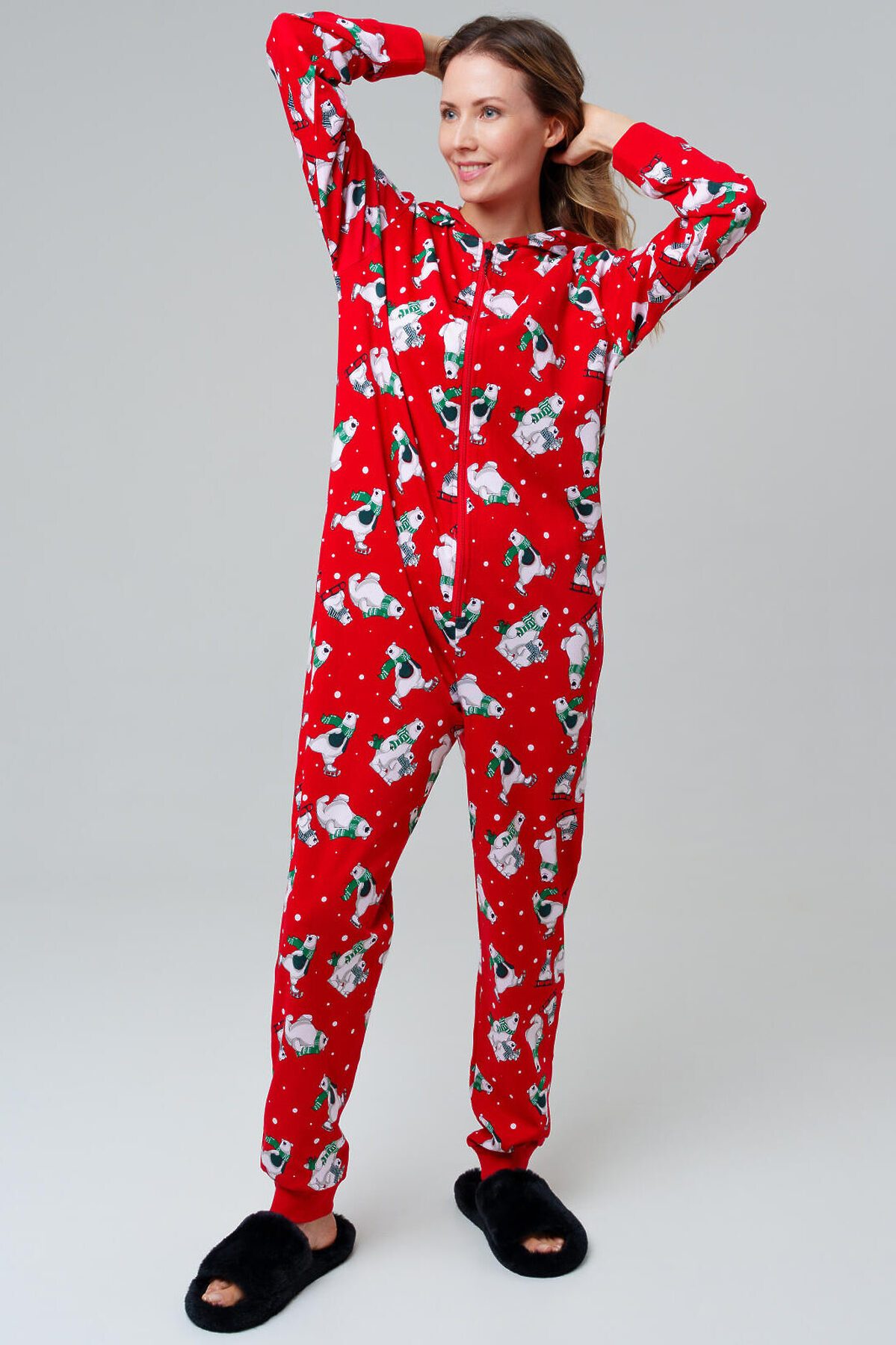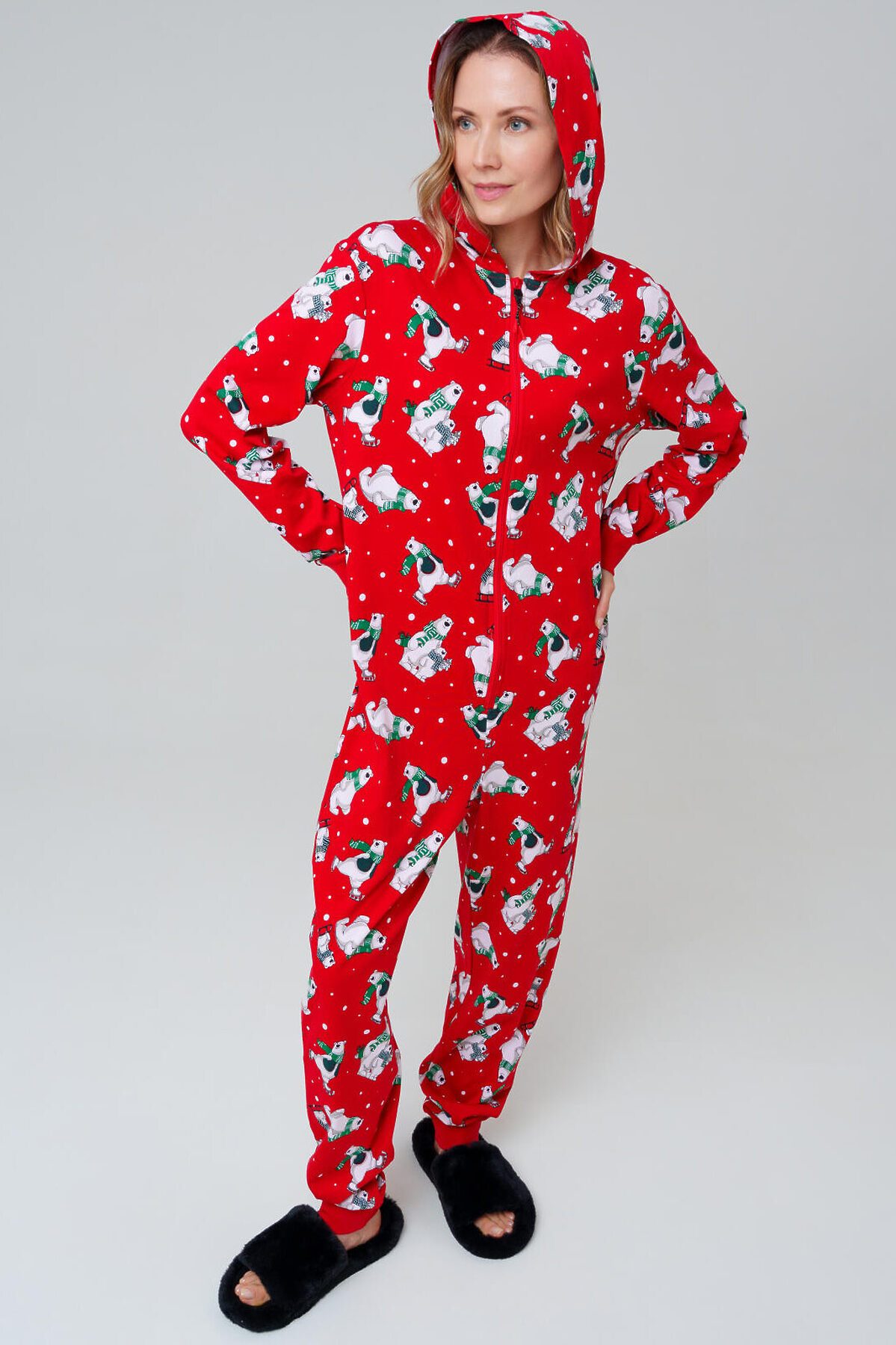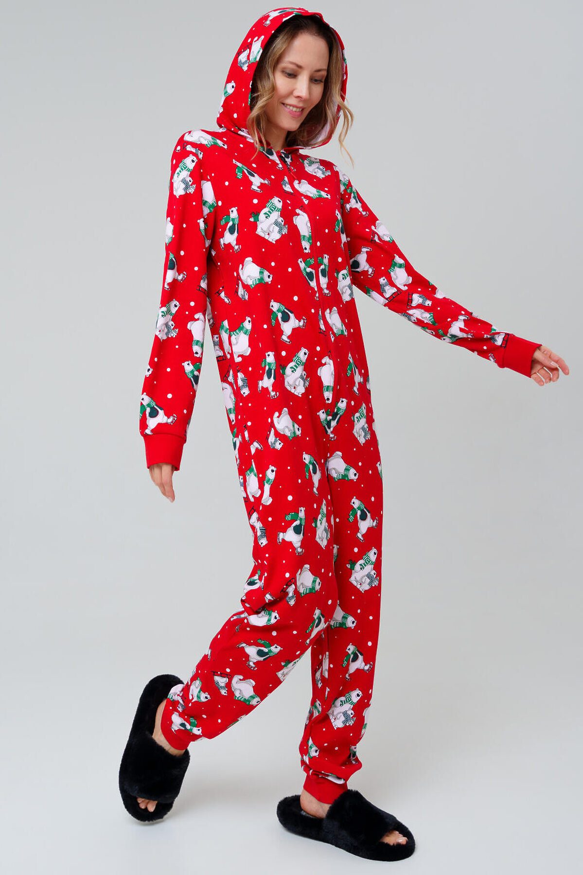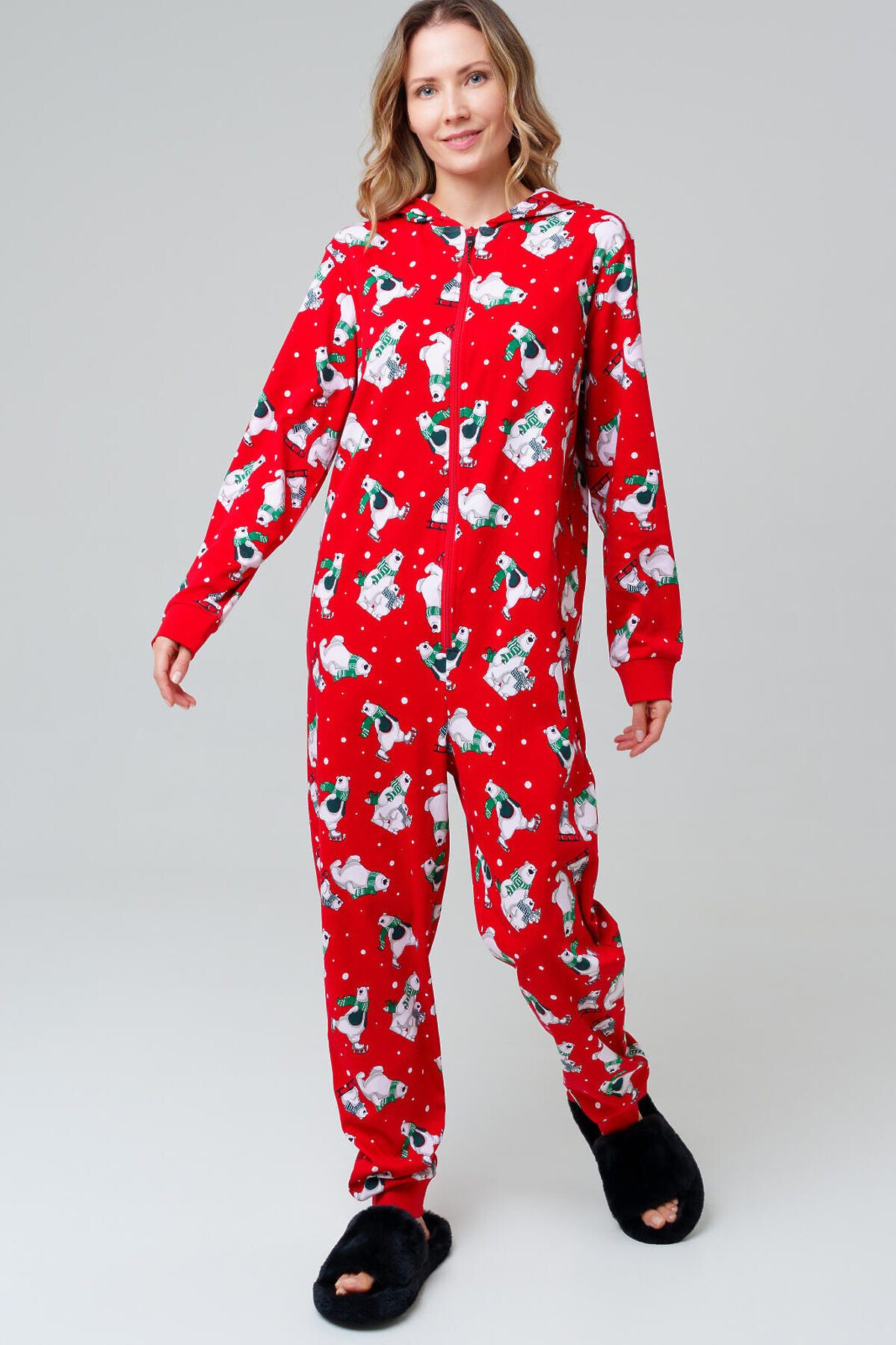 Пижама-комбинезон для мужчин и женщин от PlayToday — тёплая, мягкая и яркая, как праздник. В ней одинаково удобно спать, отдыхать дома или проводить уютные зимние вечера в компании семьи. Преимущества модели: + застёжка на молнию — быстро и удобно надевать + отсутствие карманов — ничто не мешает во время сна + манжеты из риба на рукавах и брюках — комфортная посадка + капюшон с контрастной подкладкой — стильный акцент и дополнительный уют + эластичный трикотаж — дышит, сохраняет тепло и приятен к телу + универсальный фасон — подходит и женщинам, и мужчинам Эта пижама-комбинезон трикотажная для взрослых создана для тех, кто любит максимум уюта. Яркий принт поднимает настроение, а мягкий материал дарит комфорт на протяжении всего дня и ночи. Совет по стилю: Такой комбинезон можно носить не только для сна, но и как домашний костюм. Добавьте тёплые носки или тапочки PlayToday — и получится идеальный комплект для зимних вечеров. Размеры: модель доступна в линейке S, M, L, XL, XXL. Пижама-комбинезон от PlayToday — это уютная домашняя одежда и яркая пижама для сна, которая подарит тепло и комфорт каждому.