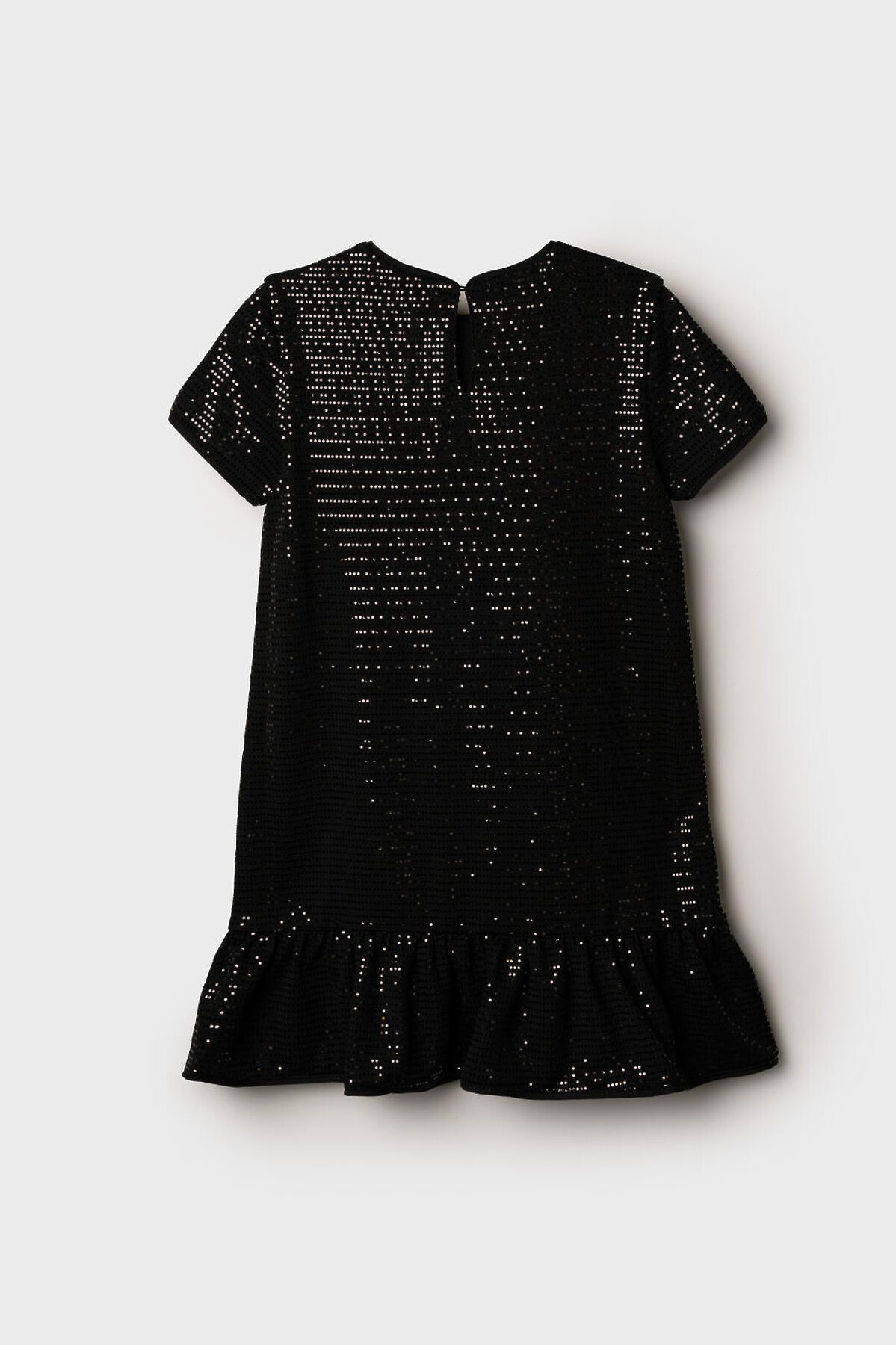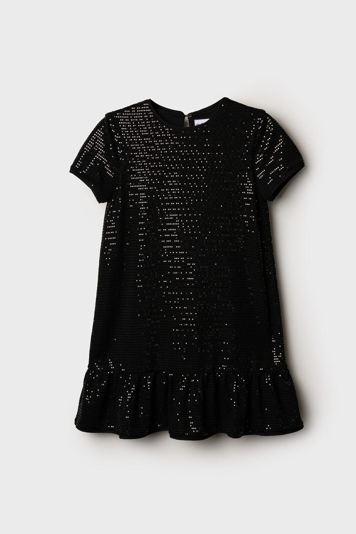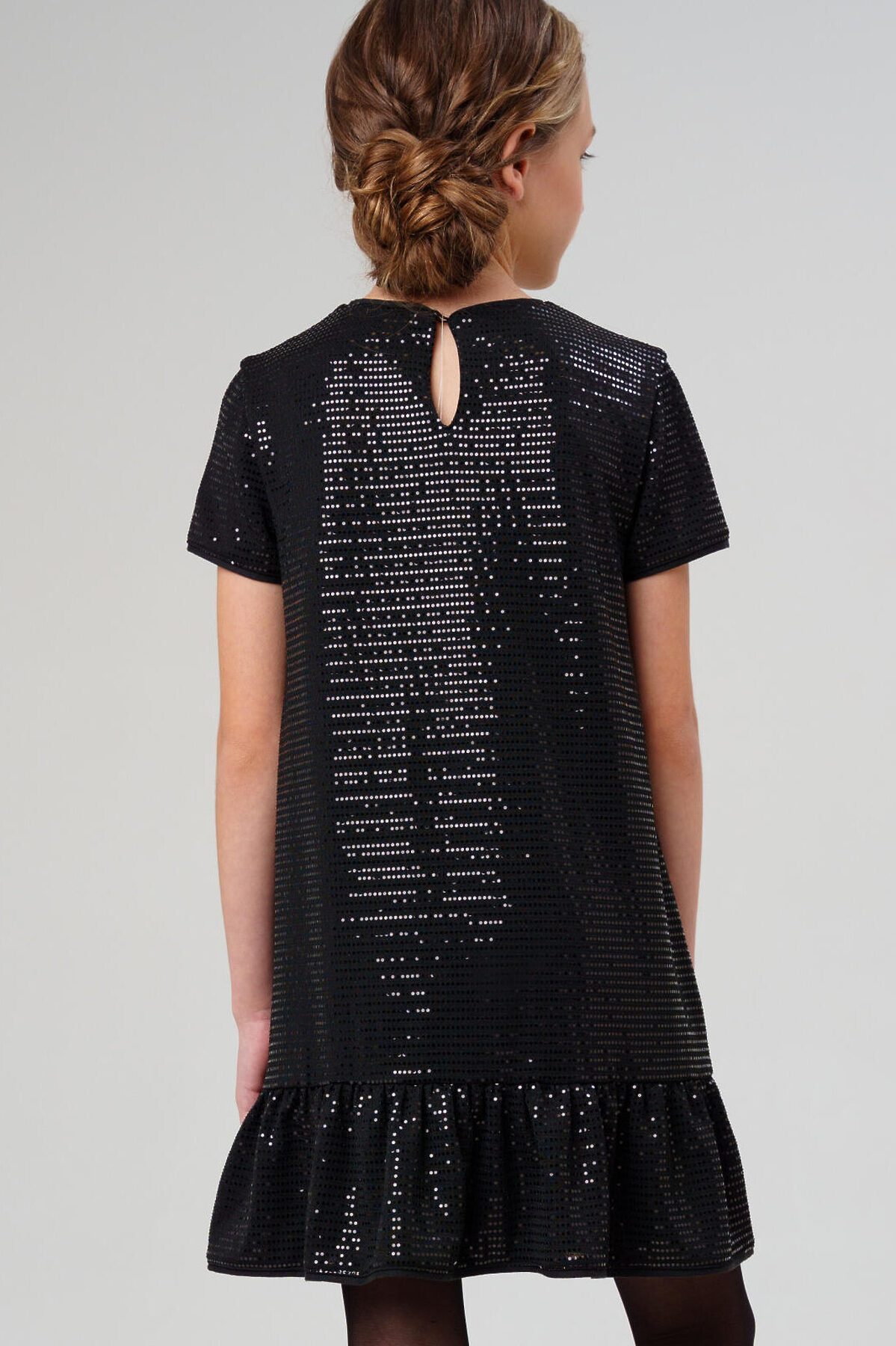 Модное чёрное платье для девочки от PlayToday — стильная модель для праздников и особых случаев. Платье выполнено из мягкого трикотажа с мерцающими пайетками, которые создают эффектное сияние при движении. Укороченный рукав и волан по низу добавляют лёгкости и женственности силуэту. Преимущества модели: + нарядное платье с пайетками — блестящий акцент для праздничного образа + мягкая трикотажная ткань с эластаном — комфорт и свобода движений + внутренняя подкладка из хлопка и полиэстера — приятна к телу и не вызывает дискомфорта + волан по низу — трендовая деталь, создающая лёгкий и игривый силуэт + застёжка на пуговицу на спинке — удобно надевать и снимать Когда и как носить: Идеально подойдёт для Нового года, дня рождения, школьного праздника, фотосессии или театра. Платье универсальное — уместно и на торжестве, и в повседневных выходных образах. Советы по стилю: Сочетайте с туфлями, балетками или лаконичными ботинками от PlayToday. Для прохладной погоды добавьте плотные колготки и укороченный жакет или кожаную куртку. Размерный ряд: 128–170 см — подойдёт девочкам младшего и старшего школьного возраста. Праздничное платье PlayToday — блеск, комфорт и настроение праздника в каждом движении.