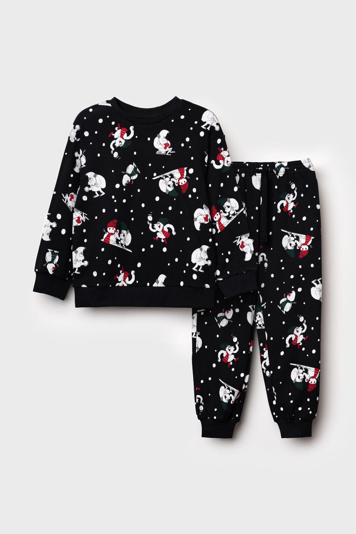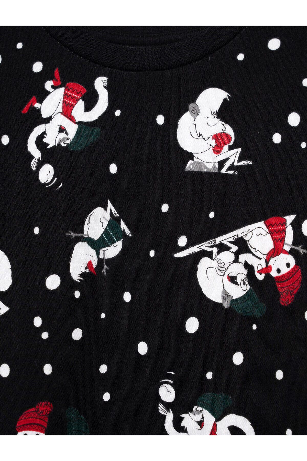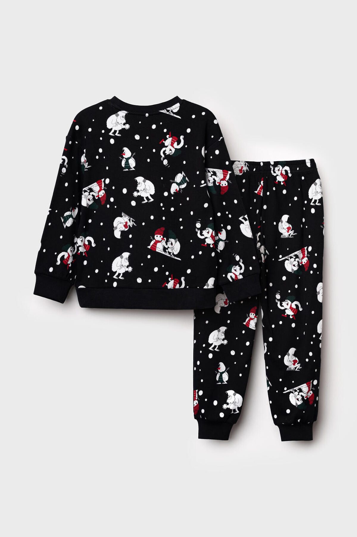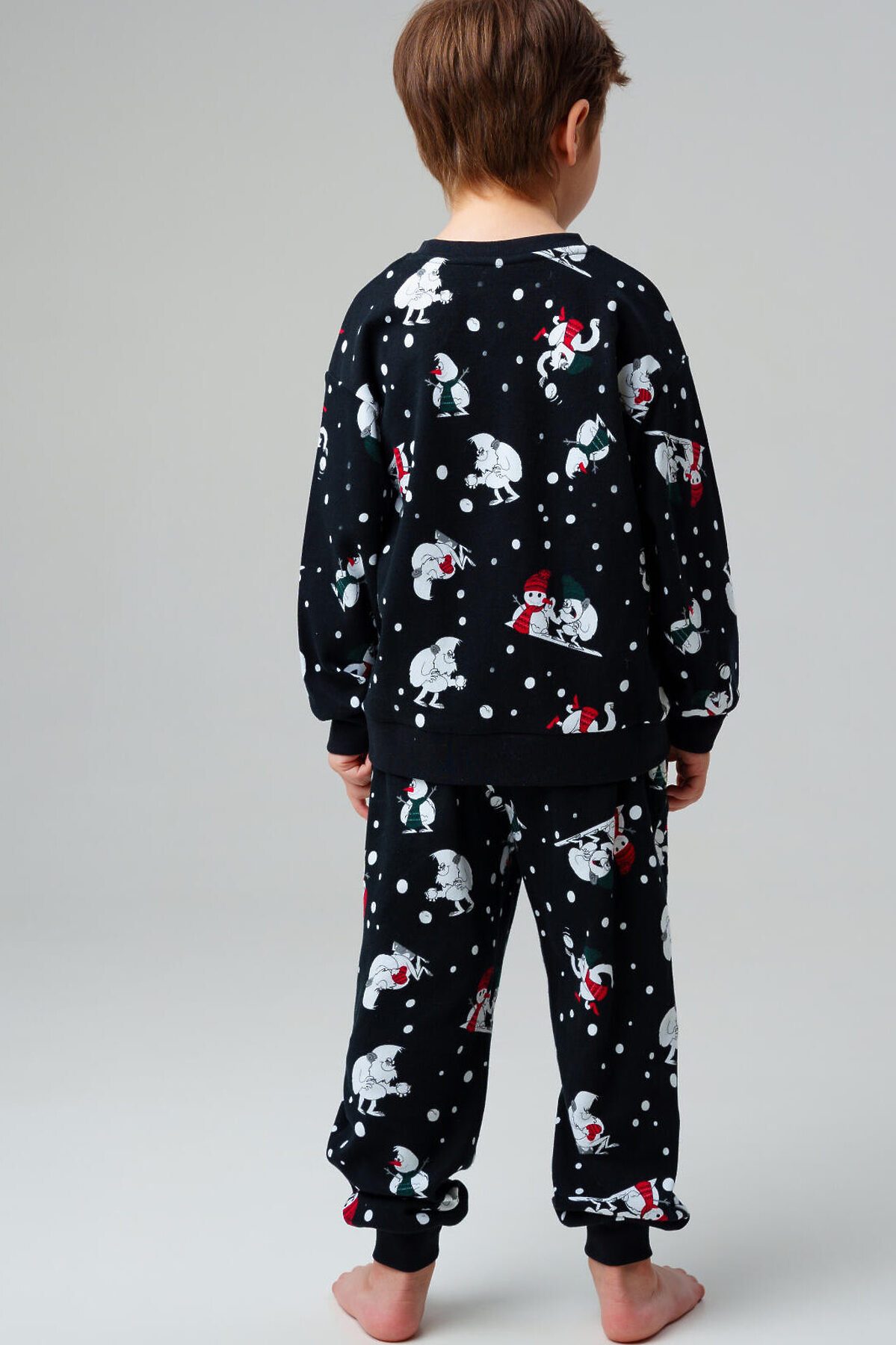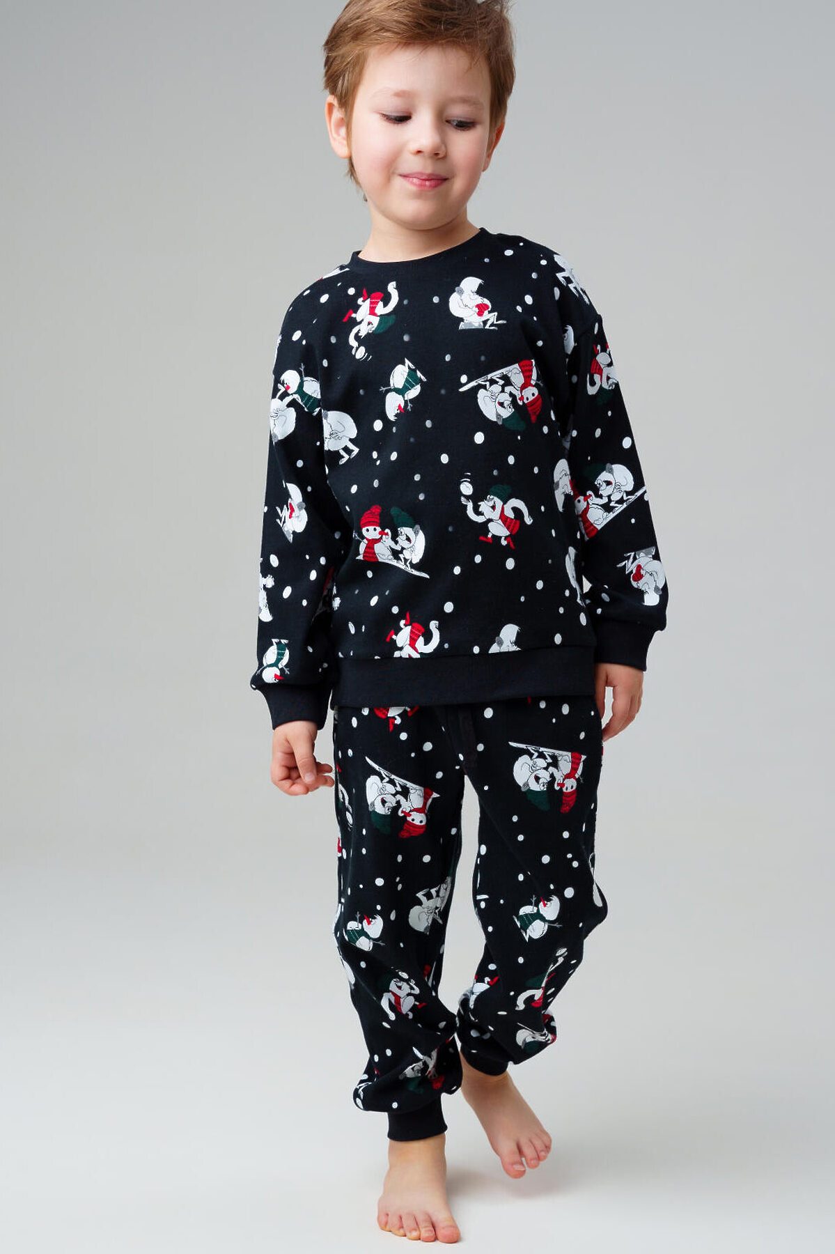 Черная детская трикотажная пижама для мальчика от PlayToday — уютный комплект для сна и отдыха, состоящий из кофты с длинными рукавами и брюк на резинке. Эта детская пижама выполнена из мягкого трикотажа, который приятно ощущается на коже и не вызывает раздражений. Особенности модели: + мягкий трикотаж — дышащий материал, комфортный даже для чувствительной кожи + кофта с длинными рукавами — защищает от холода ночью и в прохладное время года + брюки на удобной резинке — легко надевать, хорошо сидят на талии и не сползают + свободный крой — обеспечивает свободу движений, не стесняет во сне + отсутствие карманов — ничего не мешает, ребёнку удобно спать и двигаться + яркий принтованный дизайн — делает пижаму стильной, ребёнок будет носить её с удовольствием Эта детская пижама для мальчиков от PlayToday станет незаменимой частью домашнего гардероба. Она одинаково удобна для сна, игр и отдыха дома. Трикотаж легко стирается, быстро сохнет и не теряет форму. Благодаря эластичному поясу брюки хорошо фиксируются, а мягкий материал позволяет коже дышать. Совет по стилю: Пижаму можно носить как полноценный комплект для сна или использовать кофту и брюки отдельно как домашнюю одежду. Сочетайте пижамный верх с трикотажными штанами PlayToday, а брюки — с футболками, создавая разные варианты для дома. Размеры: модель представлена на рост 98, 104, 110, 116 и 122 см — подходит для мальчиков от 3 до 7 лет. Модная черная детская пижама с ярким принтом для мальчика от PlayToday — это идеальный выбор для сна, отдыха и домашних игр.