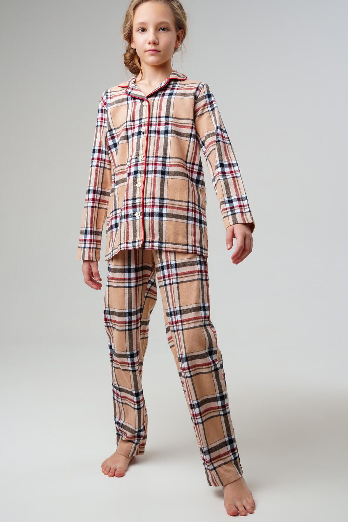 Клетчатая фланелевая пижама для девочки подростка от PlayToday — уютный и стильный комплект для сна и домашнего отдыха. Модель выполнена из мягкой фланели с микроначёсом, которая дарит комфорт, тепло и приятные тактильные ощущения. Удобный крой и застёжка на пуговицы делают пижаму практичной и долговечной. Преимущества модели: + ткань фланель с микроначёсом — мягкость, уют и сохранение тепла + застёжка на пуговицы — удобно надевать и снимать + 2 кармана — функциональная деталь для комфорта + классический клетчатый принт — стильный акцент в гардеробе для сна + свободный крой — не стесняет движений и обеспечивает удобство ночью Когда носить: Идеальна для сна, отдыха дома, поездок и загородных каникул. В такой пижаме ребёнку будет тепло и комфортно даже в прохладные ночи. Совет по стилю: Сочетайте пижаму с уютными домашними тапочками PlayToday и пледом в тон для полного уюта. Размеры: 128–170 см — подойдут для девочек от 8 лет и старше. Классическая клетчатая пижама для девочки подростка от PlayToday — уют, тепло и стиль для комфортного сна и отдыха.