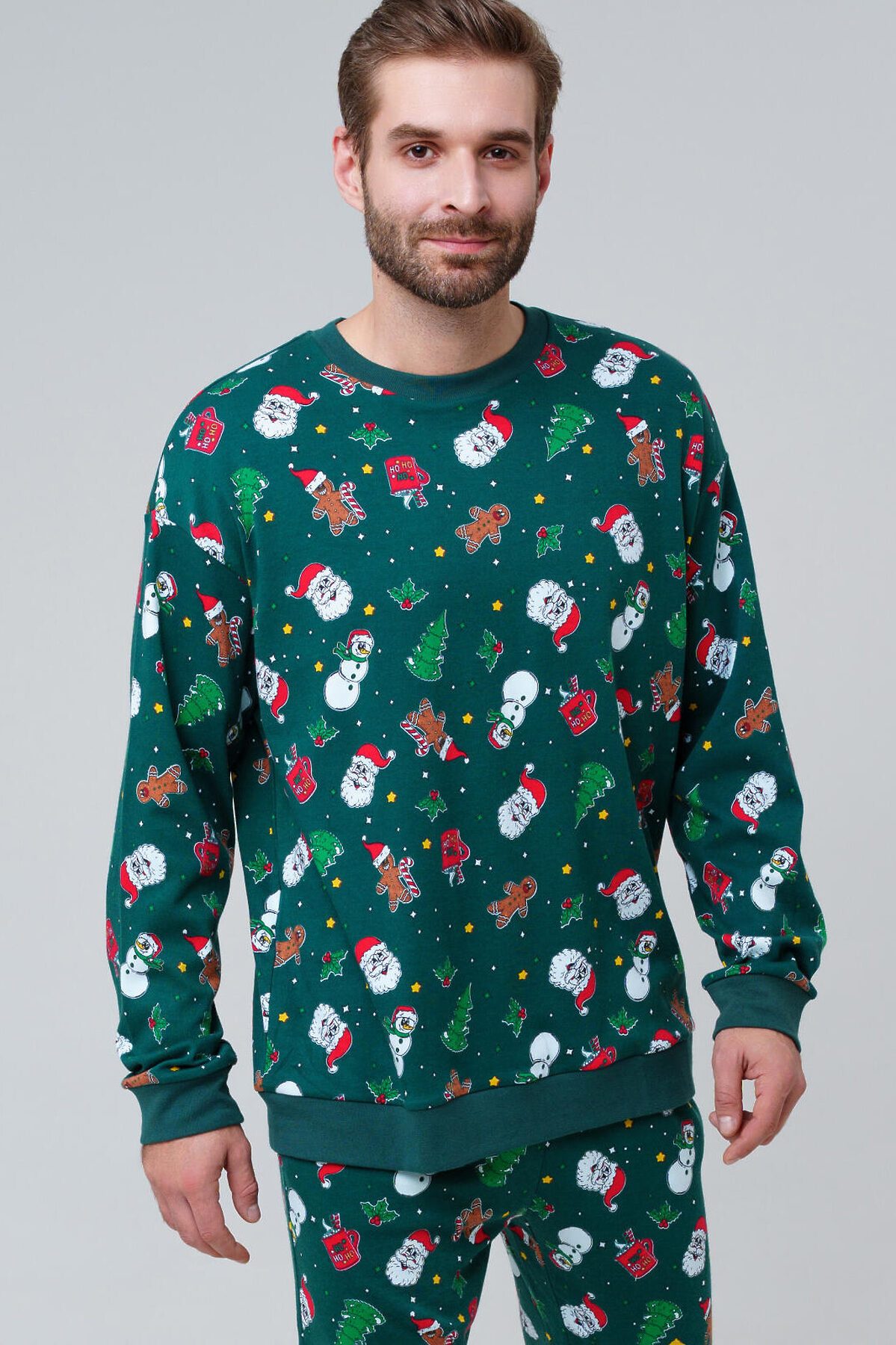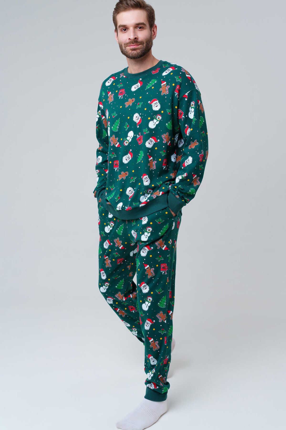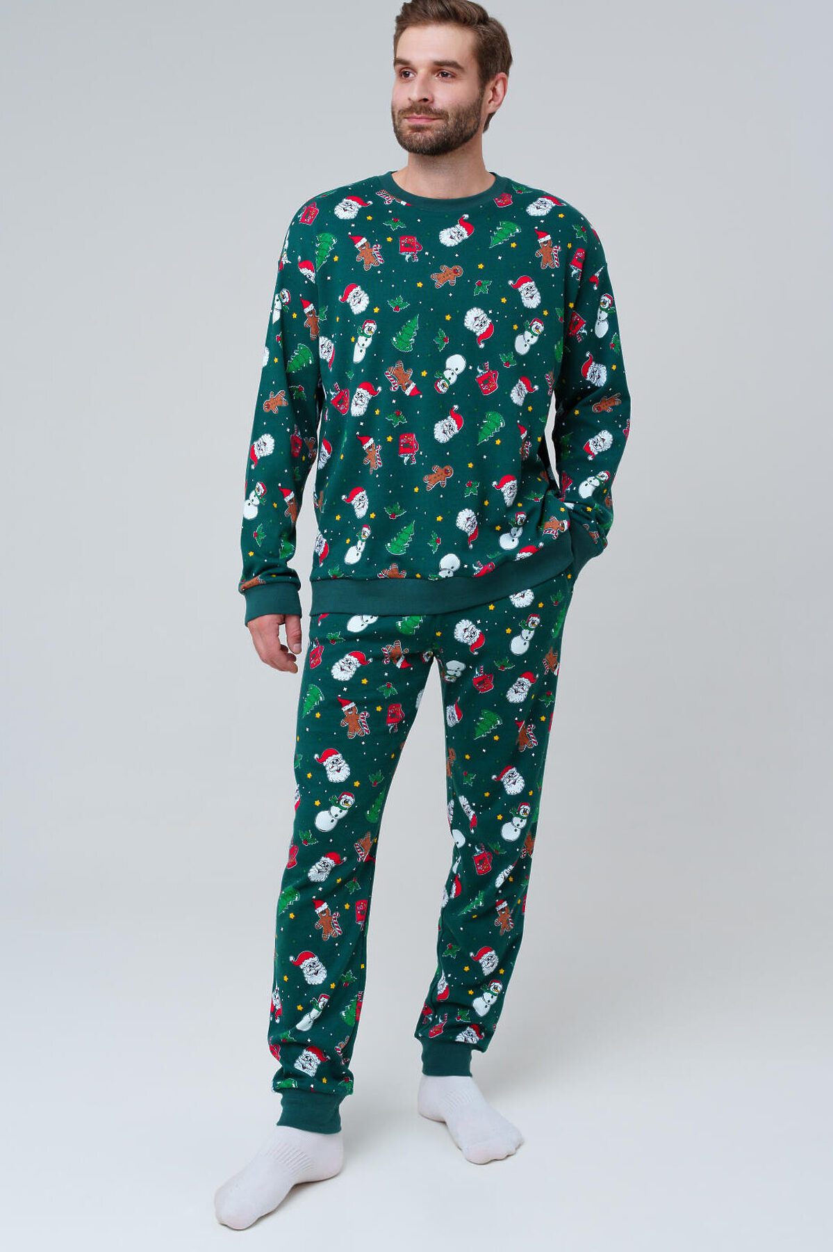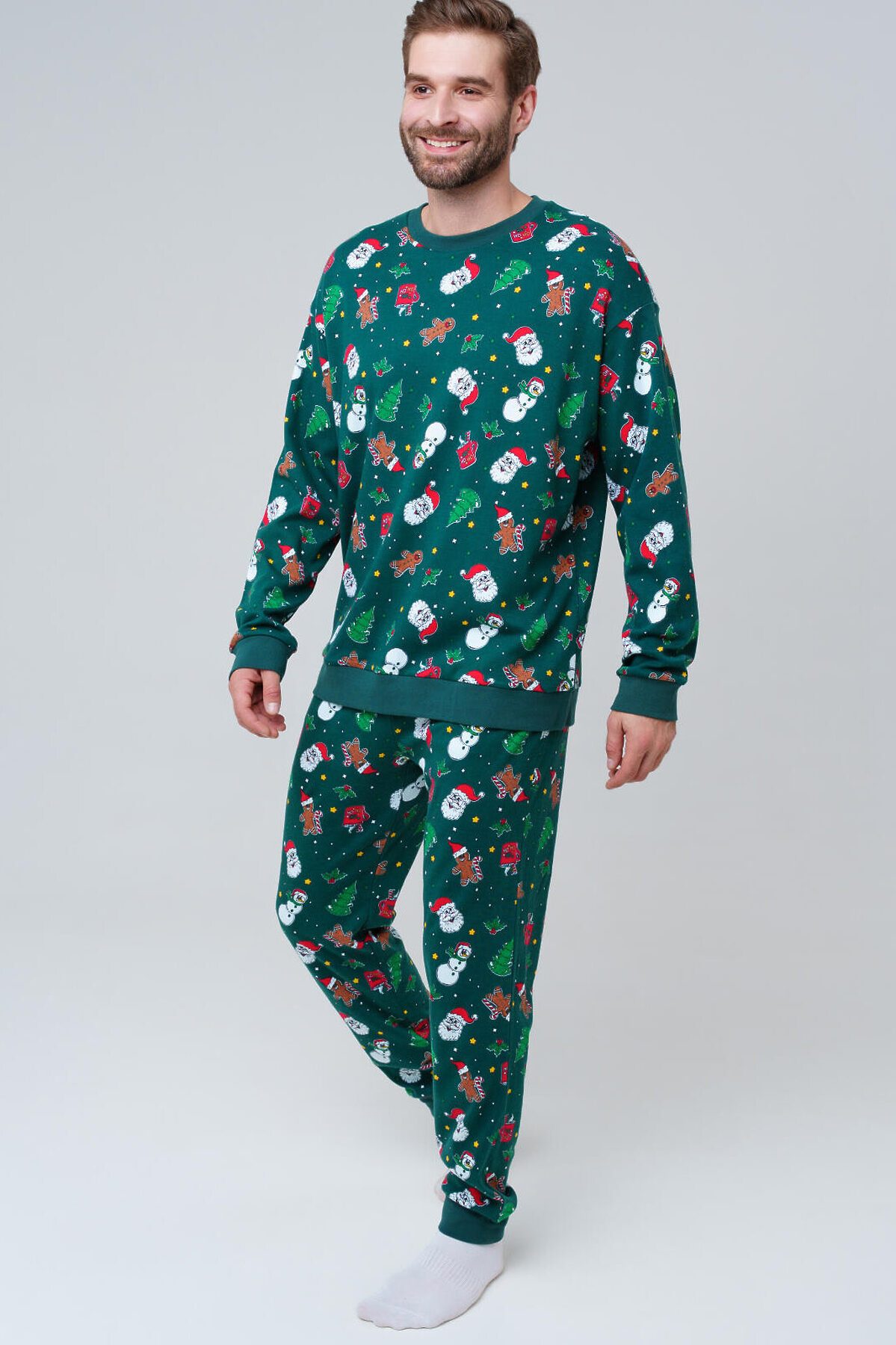 Мужская трикотажная пижама от PlayToday — мягкая, удобная и идеально подходящая для сна и домашнего отдыха. Лаконичный дизайн и приятный на ощупь материал делают её универсальным выбором для прохладных вечеров и уютных ночей. Преимущества модели: + эластичный пояс на резинке — комфортная посадка без давления + мягкий хлопковый трикотаж — дышащий и приятный к телу + свободный крой — не сковывает движений + отсутствие карманов — ничего не мешает во время сна + универсальный принт — стильно смотрится и долго сохраняет яркость Комплект состоит из джемпера с длинным рукавом и брюк. Брюки на мягкой резинке обеспечивают комфортную посадку, а натуральный трикотаж позволяет коже свободно дышать. Пижама не деформируется после стирок и сохраняет форму. Совет по стилю: Такую пижаму можно использовать не только для сна, но и как домашний костюм для отдыха. Размеры: модель представлена в размерах S, M, L, XL, XXL — подойдёт для мужчин разного роста и комплекции. Модная мужская пижама из трикотажа от PlayToday — это комфорт, тепло и свобода движений каждый день.