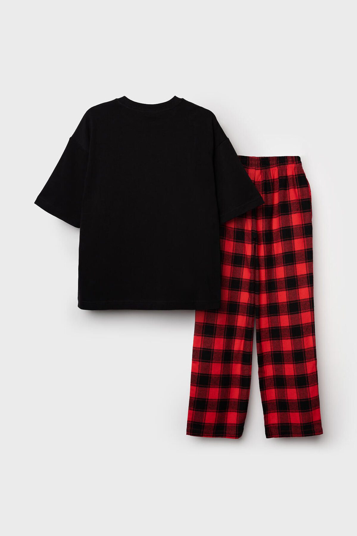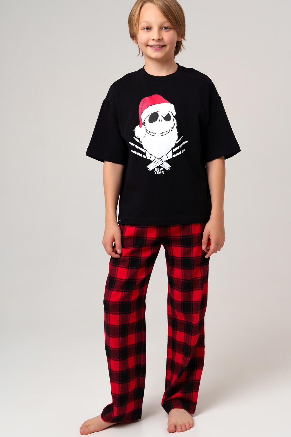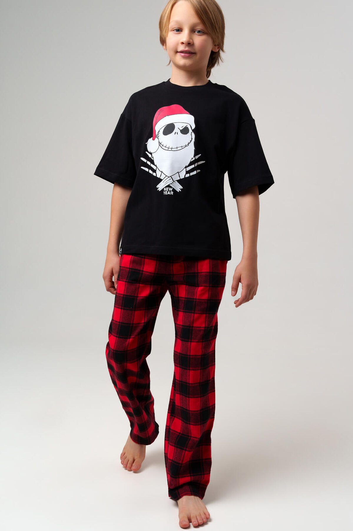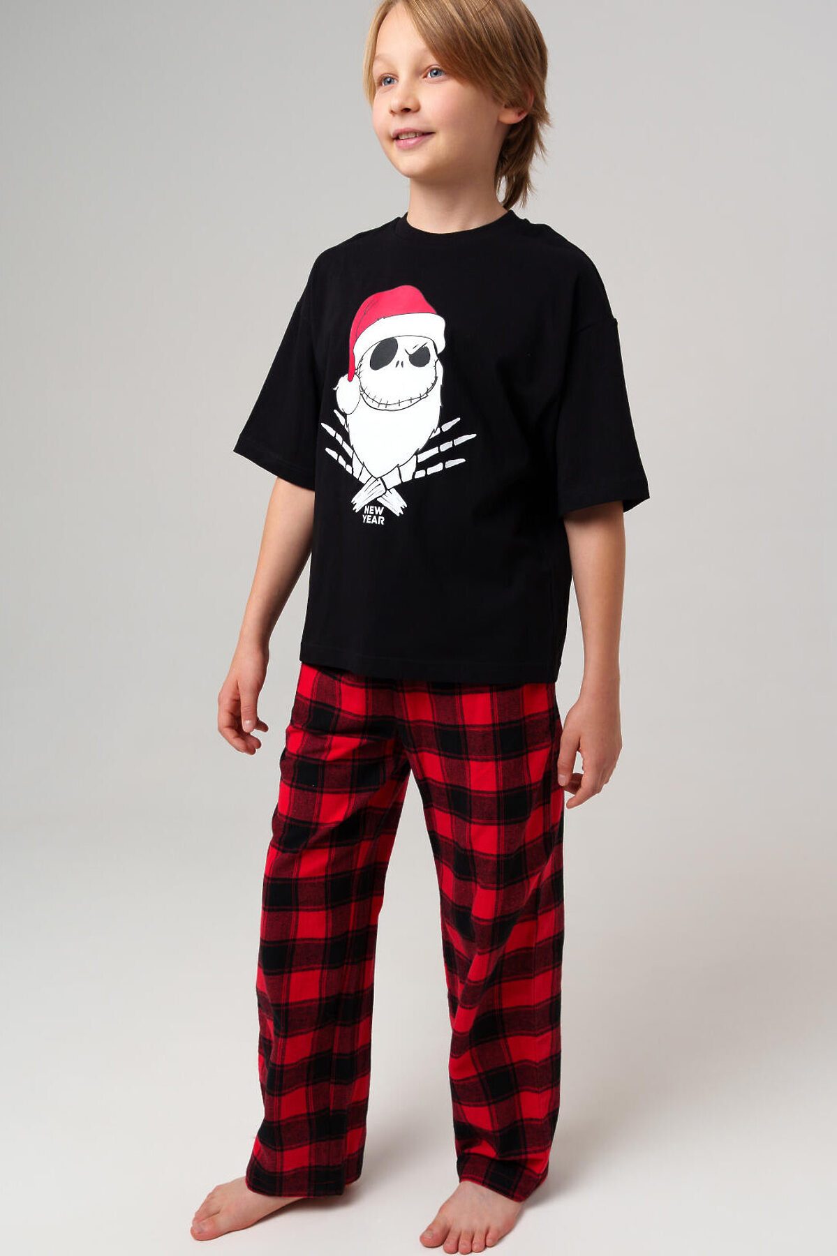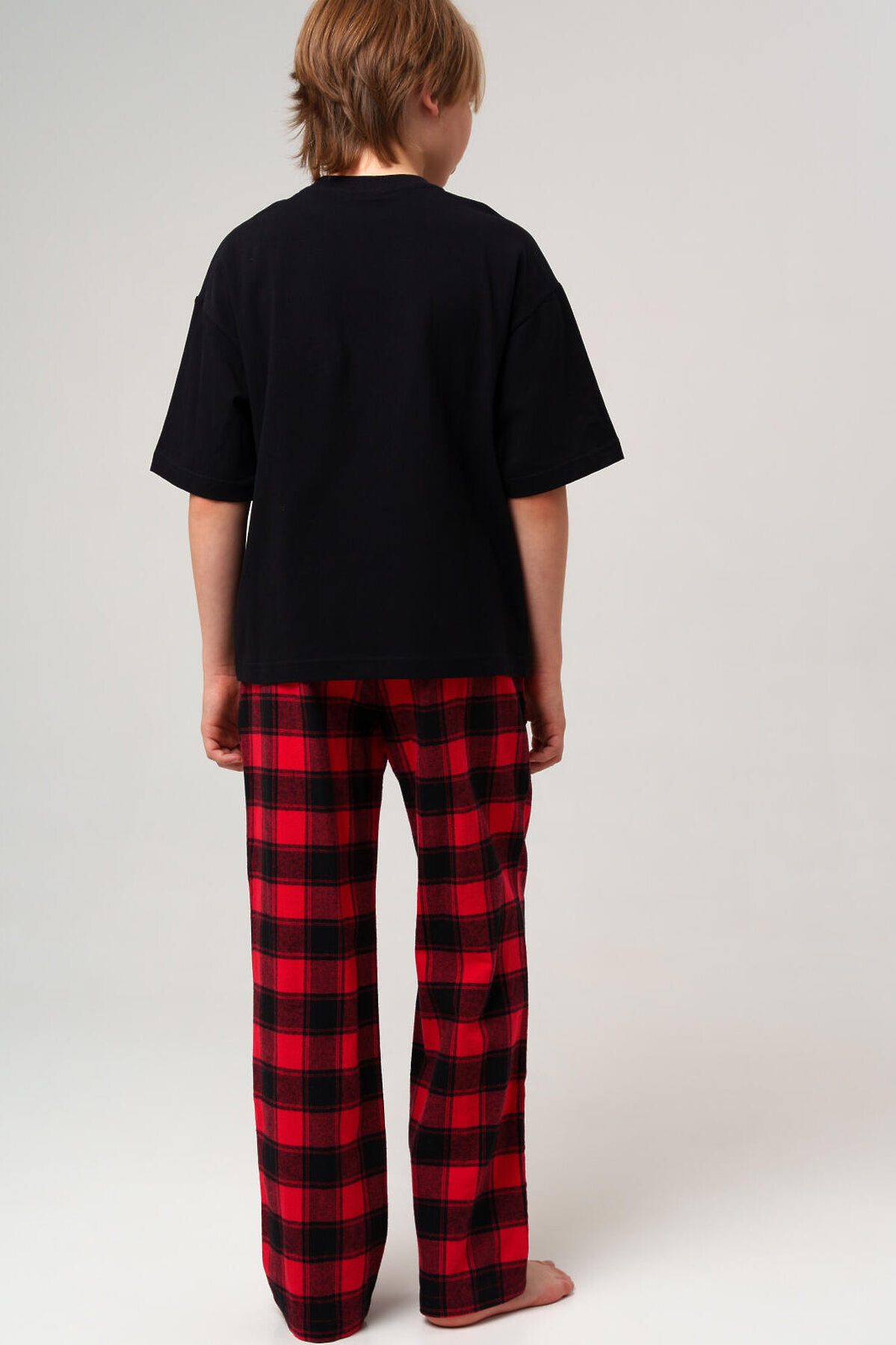 Стильная подростковая пижама для мальчика от PlayToday — удобный комплект для сна и дома, состоящий из футболки и текстильных брюк в клетку. Такая пижама сочетает комфорт, современный дизайн и практичность для школьников и подростков. Преимущества модели: хлопковая футболка с принтом — дышащая, мягкая и приятная к телу брюки из текстиля с микроначёсом — сохраняют тепло и дарят уют в прохладное время пояс на резинке со шнурком — регулируемая посадка и комфорт в носке два кармана — практичное решение для дома свободный крой — не стесняет движений и подходит для активного ребёнка Когда и как носить: Пижама идеально подойдёт для сна дома, отдыха на даче, поездок к друзьям или гостевых ночёвок. Благодаря стильному дизайну её можно использовать и как домашний костюм для мальчиков. Совет по стилю: Сочетайте пижаму с мягкими тапочками и халатом PlayToday, чтобы создать уютный домашний образ. Размеры: 128–176 см — подходят мальчикам подросткам от 8 лет и старше, для младших и старших школьников. Стильная пижама для мальчиков от PlayToday — комфорт, тепло и современный дизайн на каждый день.