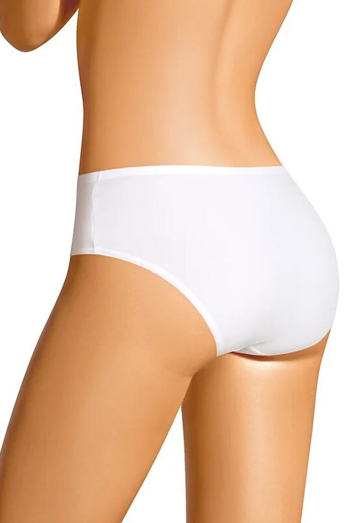 Трусы бикини женские из эластичного хлопкового полотна. По переду рез с кружевной вставкой. Обработка краев по талии и ноге окантовочная резинка.