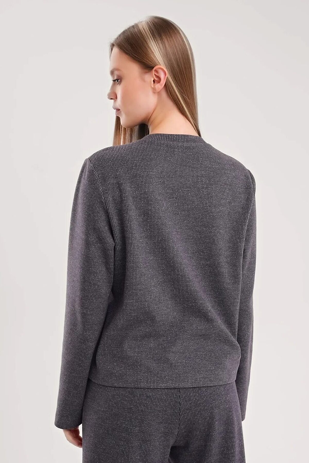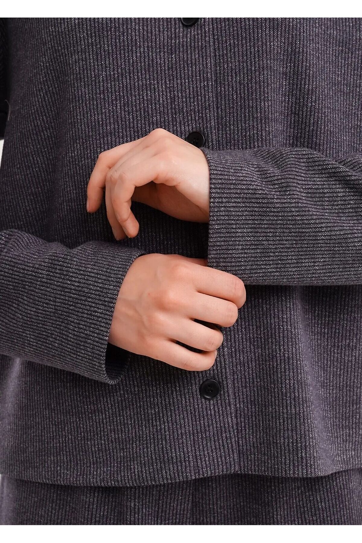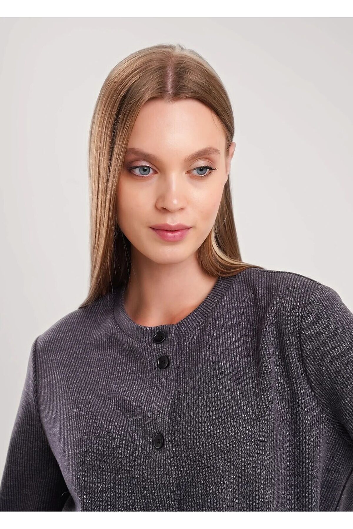 Жакет прямого кроя из трикотажного поливискозного полотна джерси с застежкой на пуговицы. Втачной длинный рукав. Округлая горловина с обтачкой. По низу рукава и изделия потайной стежок.