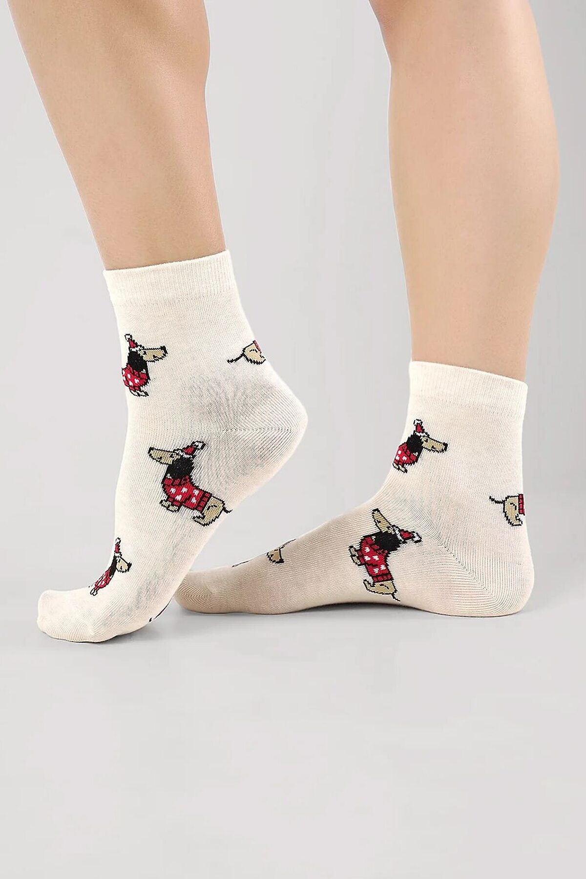 Носки женские с рисунком собак такс в новогодних костюмах