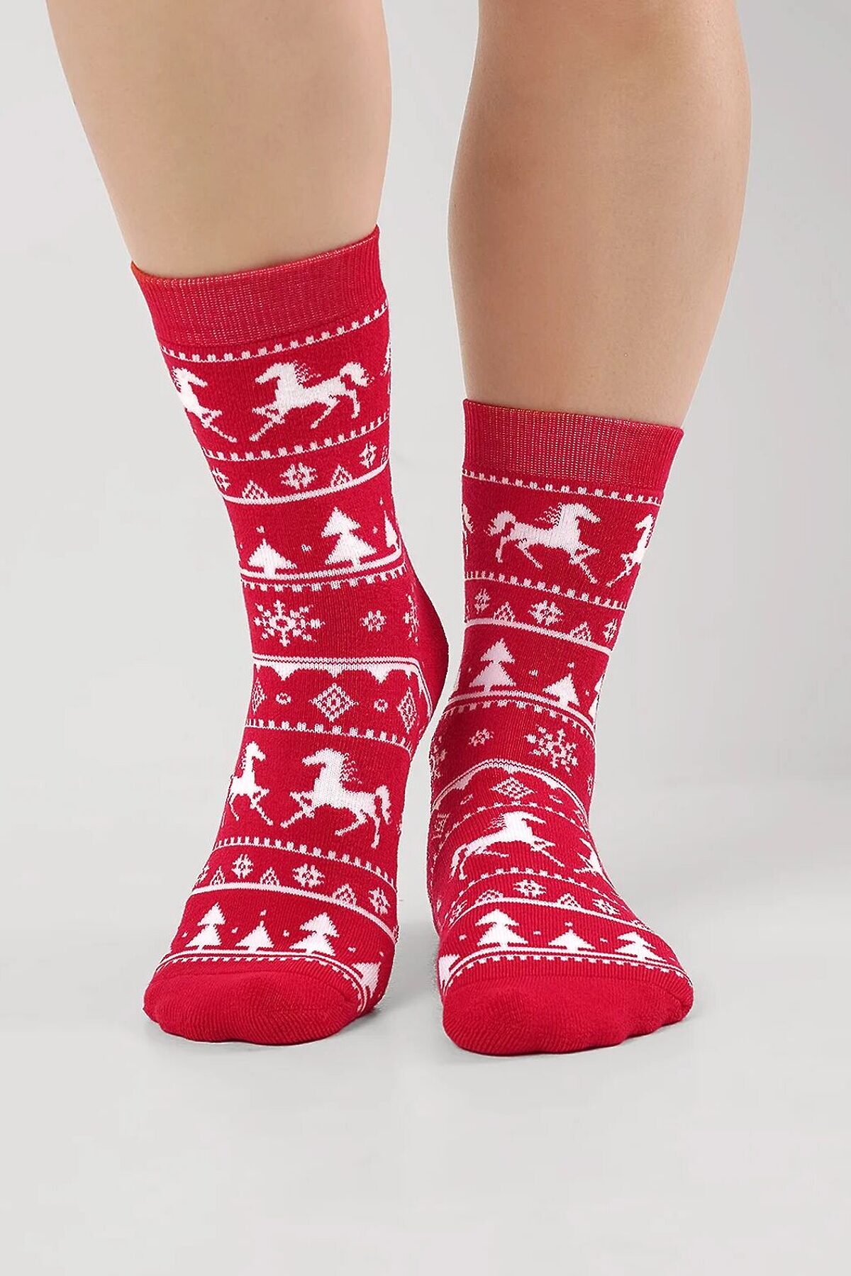 Теплые плюшевые новогодние женские носки со скандинавским орнаментом