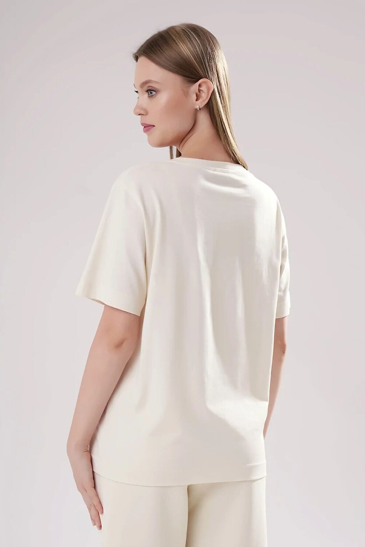 Футболка прямого силуэта из хлопкового трикотажного полотна. Короткий втачной рукав. Округлая горловина с обтачкой. Спереди принт.