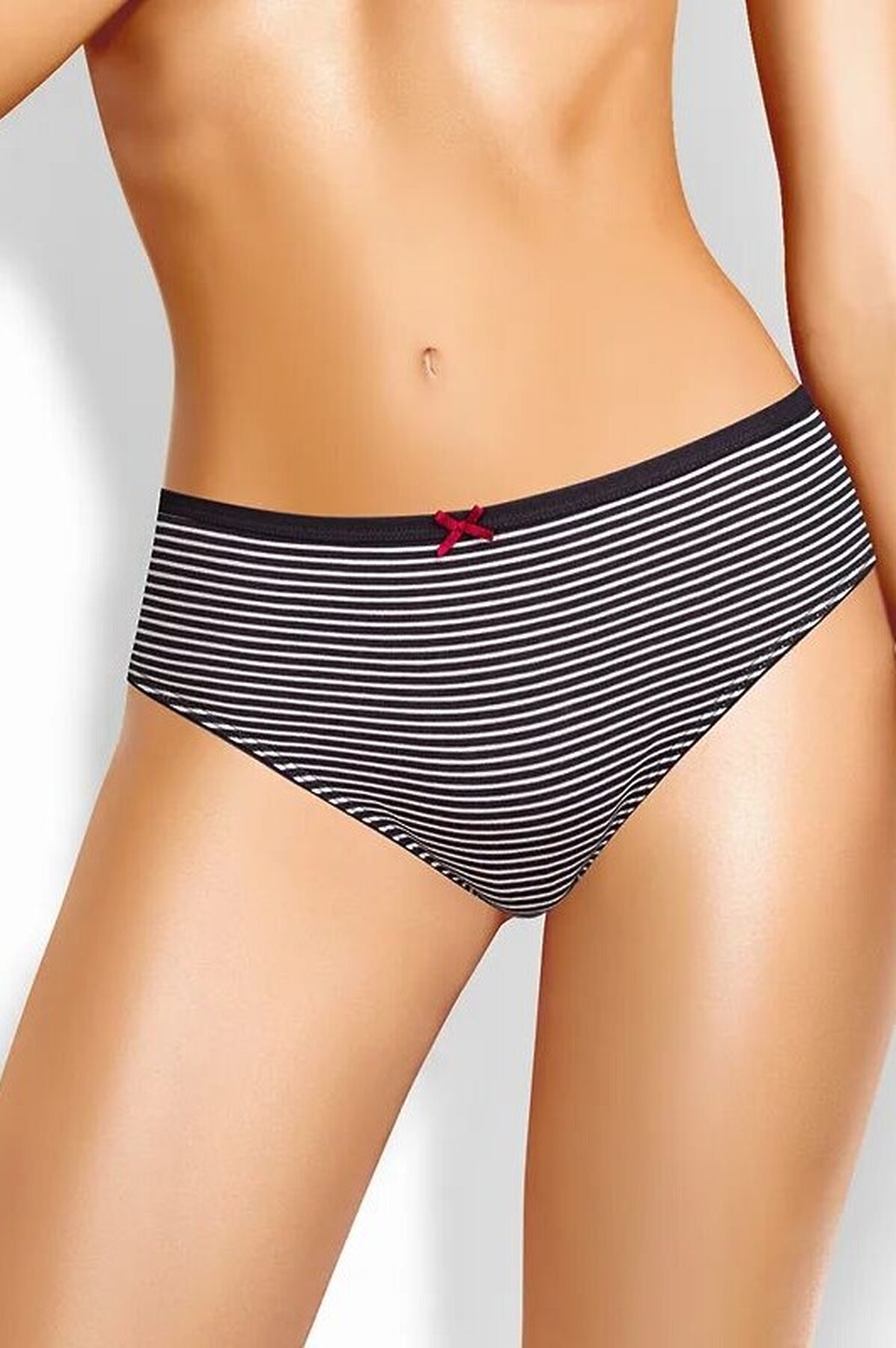 Трусы слипы женские из эластичного хлопкового полотна. Обработка краев по талии - окантовочная резинка, по ноге - полуокантовка. По переду атласный бант.