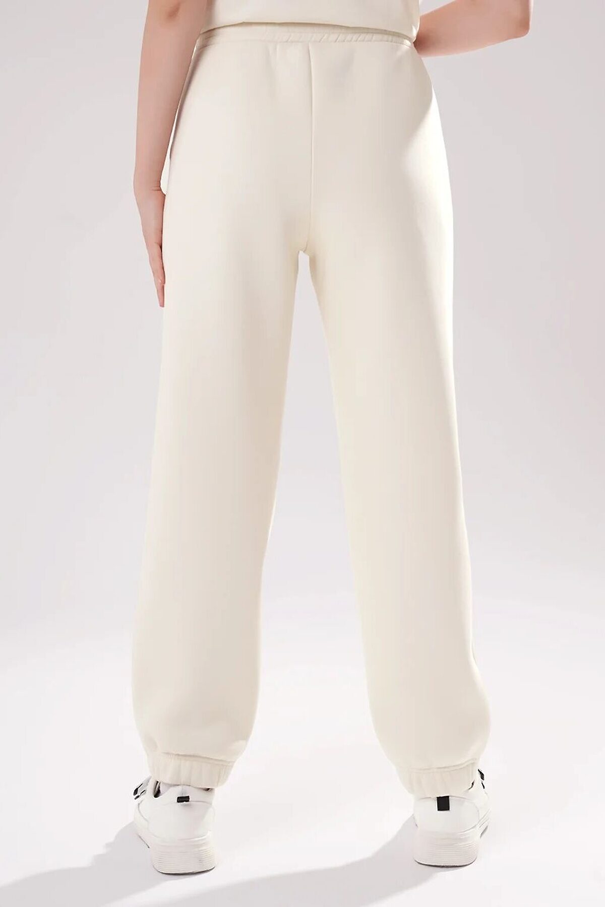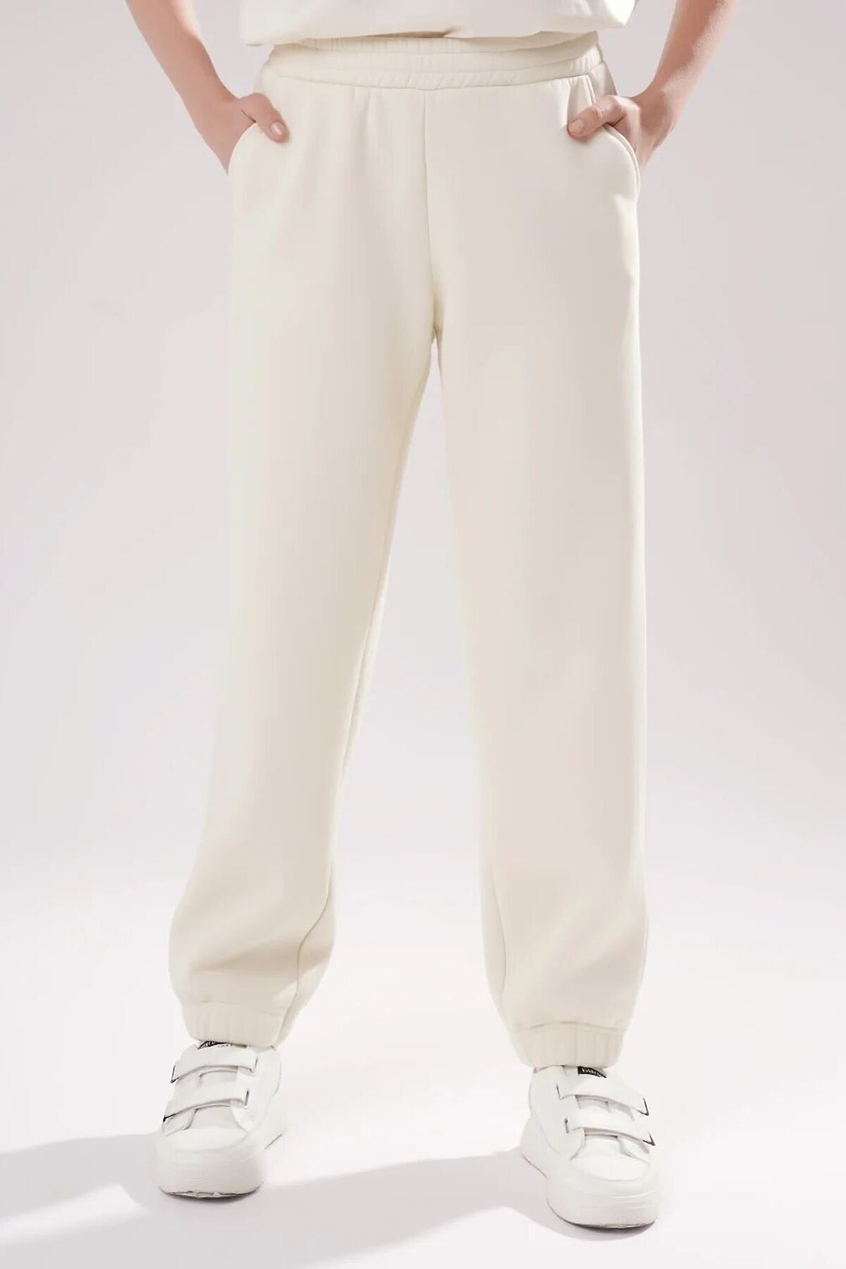 Брюки спортивные из трикотажного полотна футер с начесом,зауженные книзу. По талии пояс на резинке и внутренним шнуром. По низу брюк подгибка с внутренней резинкой. Боковые карманы с отрезным бочком.
