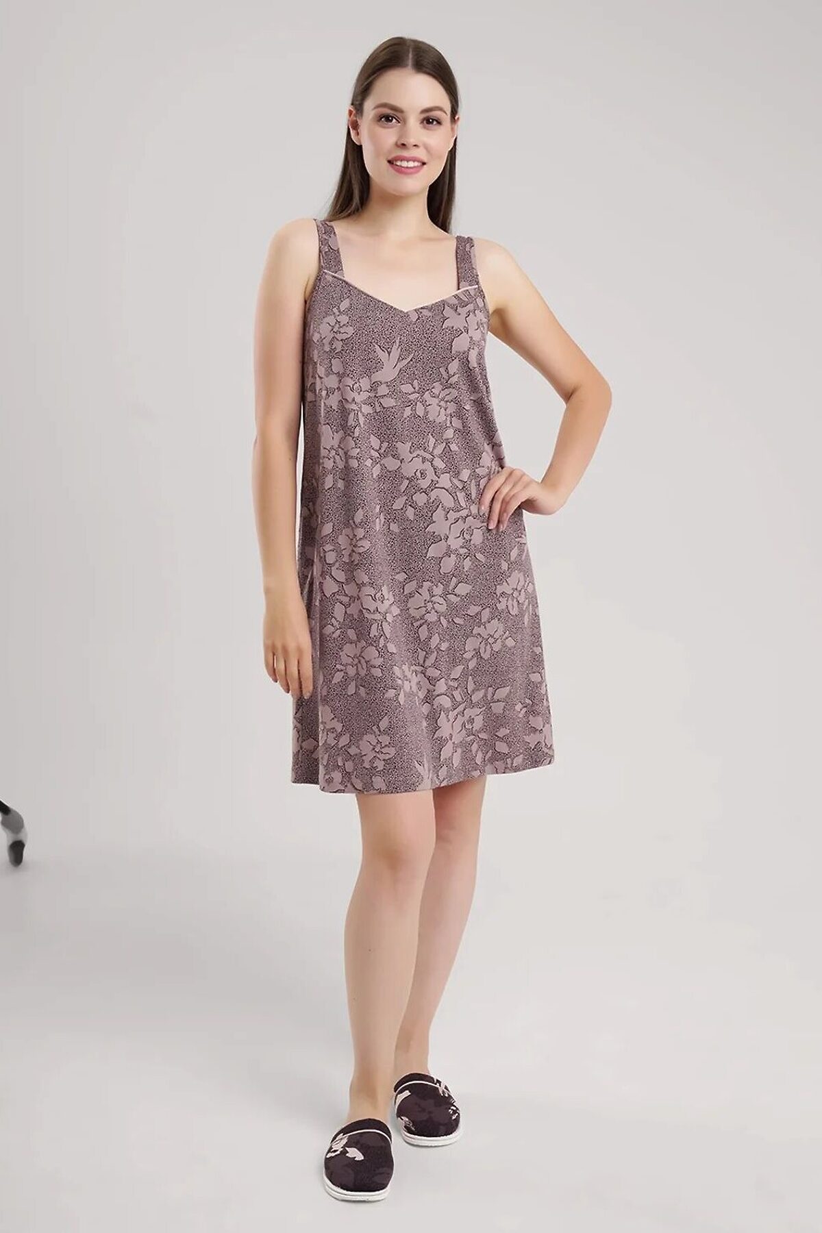 Ночная сорочка из хлопкового трикотажного полотна с добавлением модала, А-образного силуэта на бретелях. По горловине переда обтачка с кантом, бант. По пройме окантовка.
