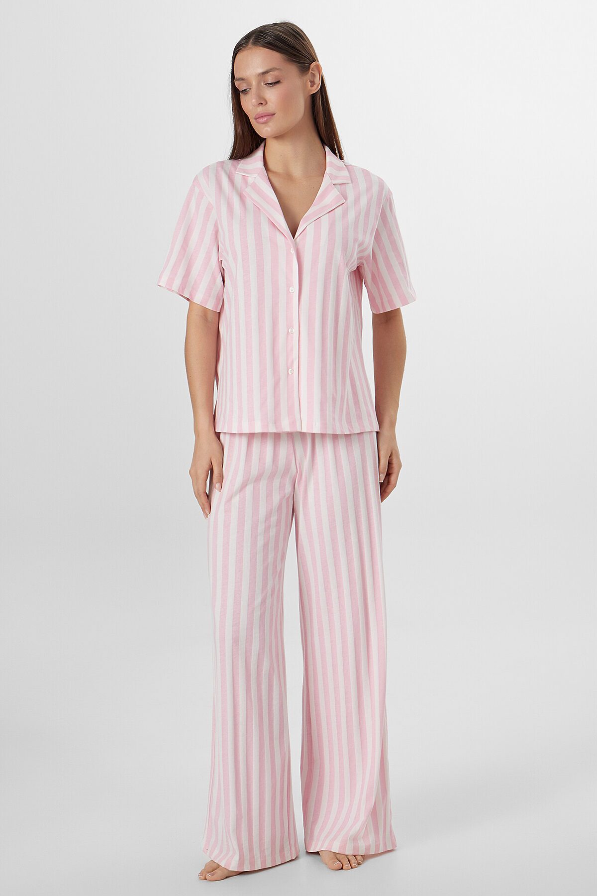 Домашний комплект — нежность и комфорт для вашего отдыха. Набор из свободной рубашки и брюк выполнен из натурального хлопка, который обеспечивает идеальную воздухопроницаемость и мягкость.
