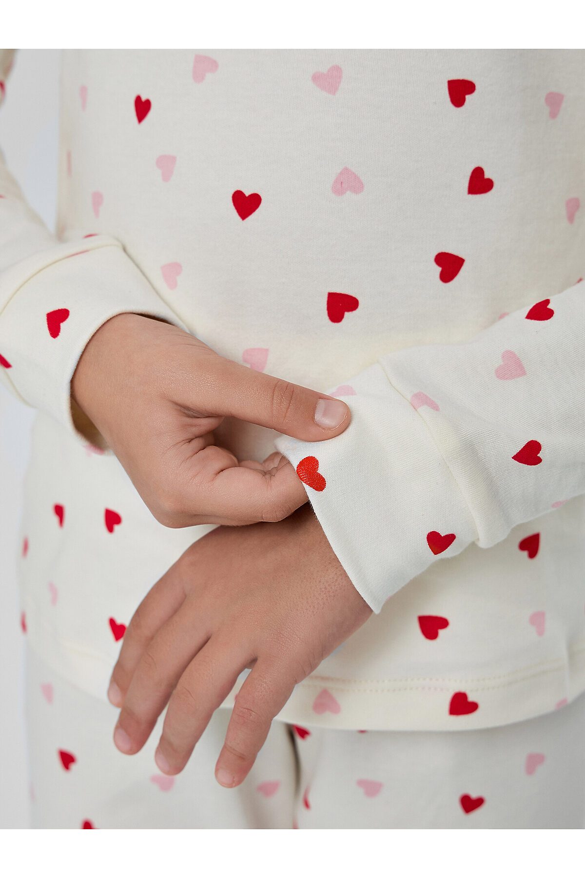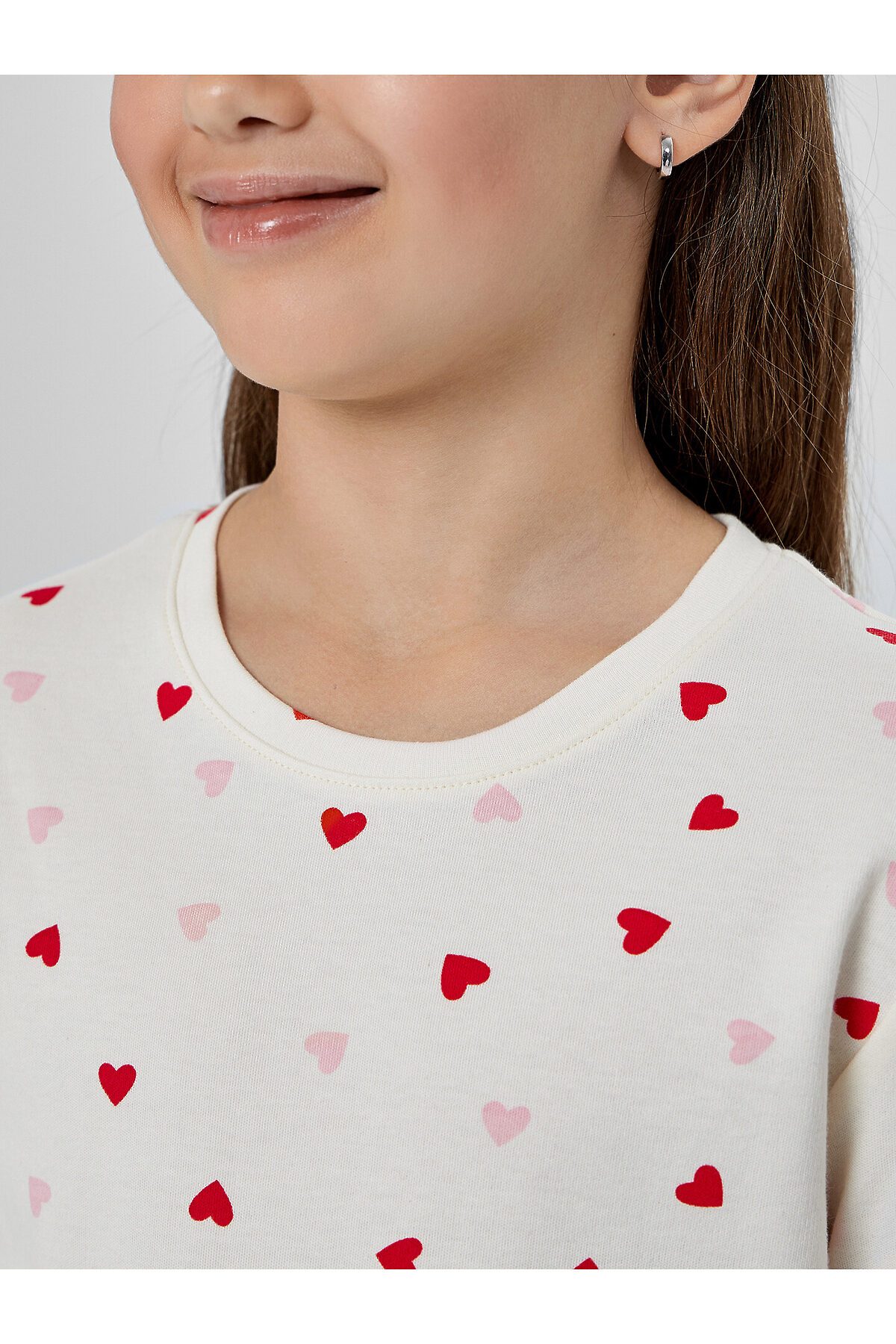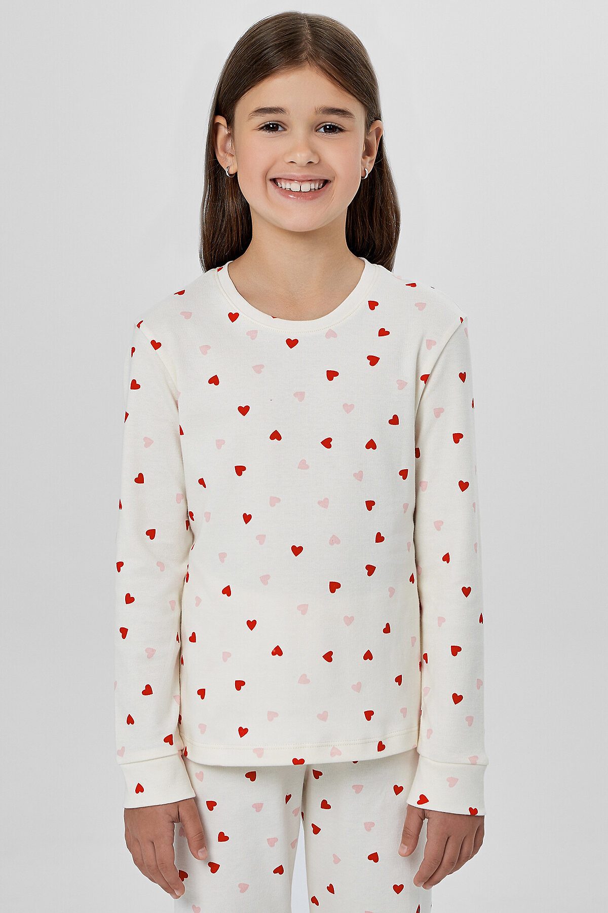 Уютный комплект для девочек с нежным узором из сердечек создан для комфортного сна и отдыха. Пижама состоит из джемпера свободного кроя с длинными рукавами и брюк прямого силуэта. Джемпер с круглой горловиной и манжетами на рукавах обеспечивает удобство и сохраняет тепло.