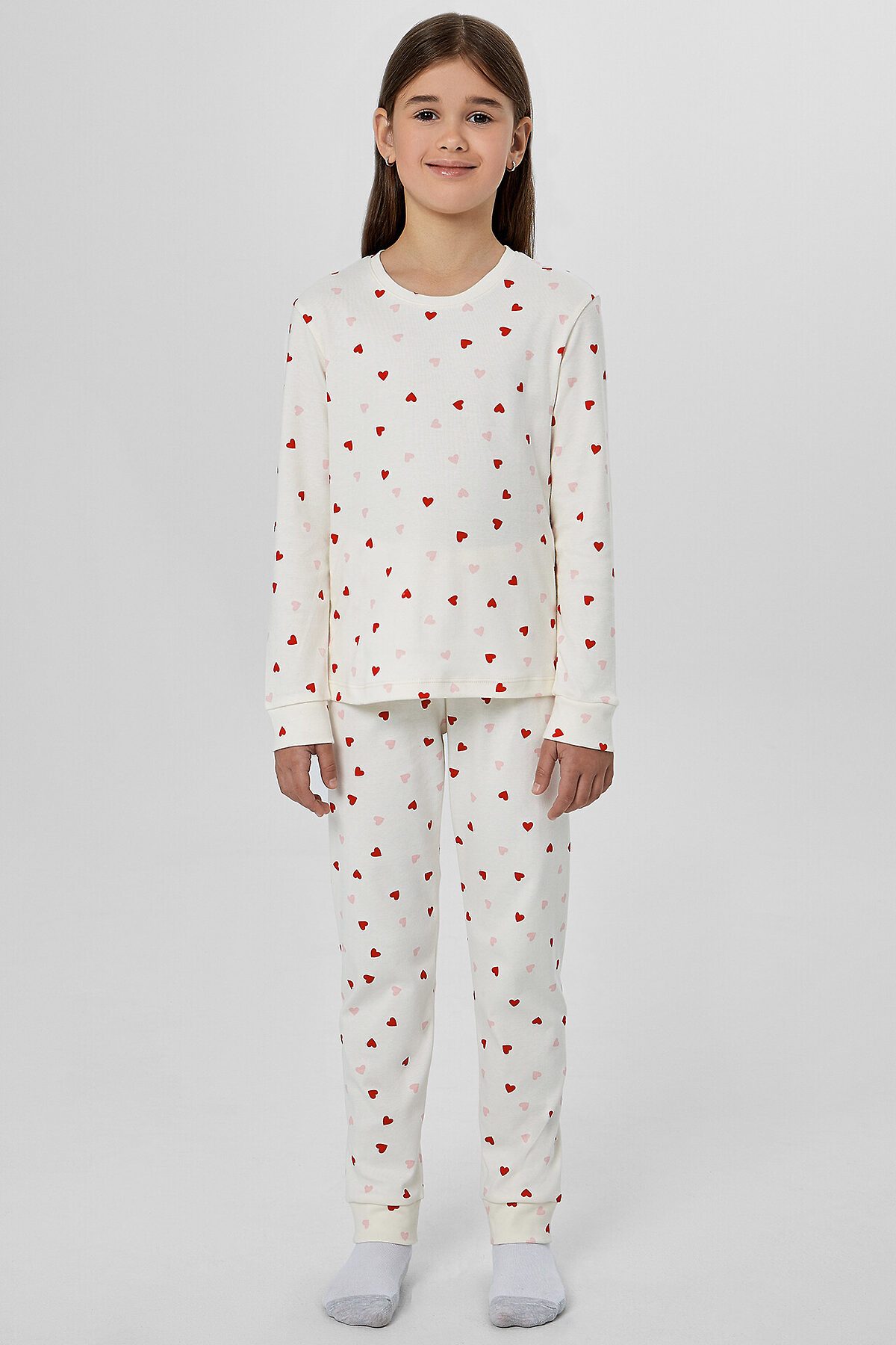 Уютный комплект для девочек, состоящий из джемпера с длинными рукавами и брюк. Джемпер свободного силуэта. Перед и спинка цельнокроеные. Горловина круглой формы из основного полотна. Рукава втачные, низ рукавов с притачными манжетами. Брюки прямые, с притачными манжетами. Пояс с эластичной тесьмой, которая обеспечивает отличную посадку. Стильная и комфортная детская пижама — лучший вариант для прохладного времени года. Широкий размерный ряд, красивые расцветки моделей в линейке. Рекомендуем!