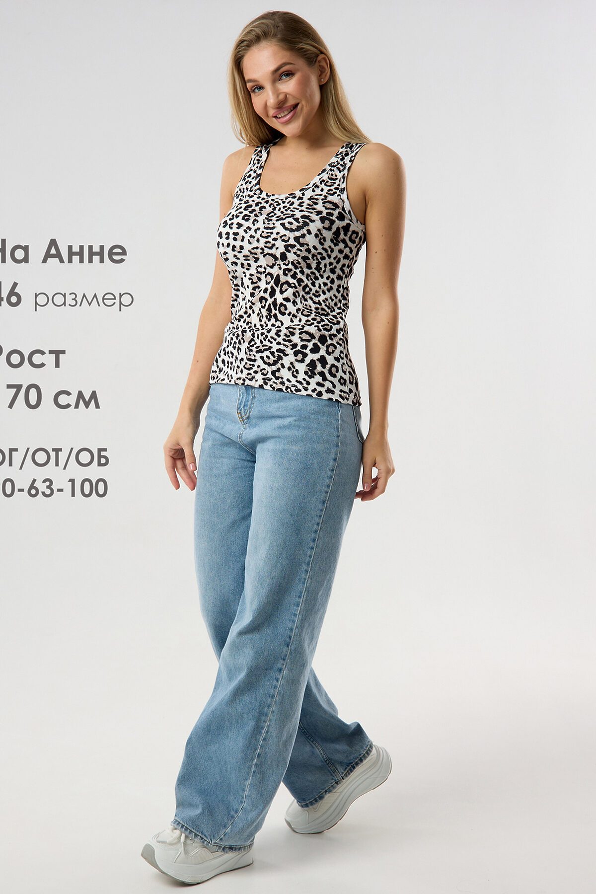 Майка базовая в рубчик леопардовая НАТАЛИ, белый