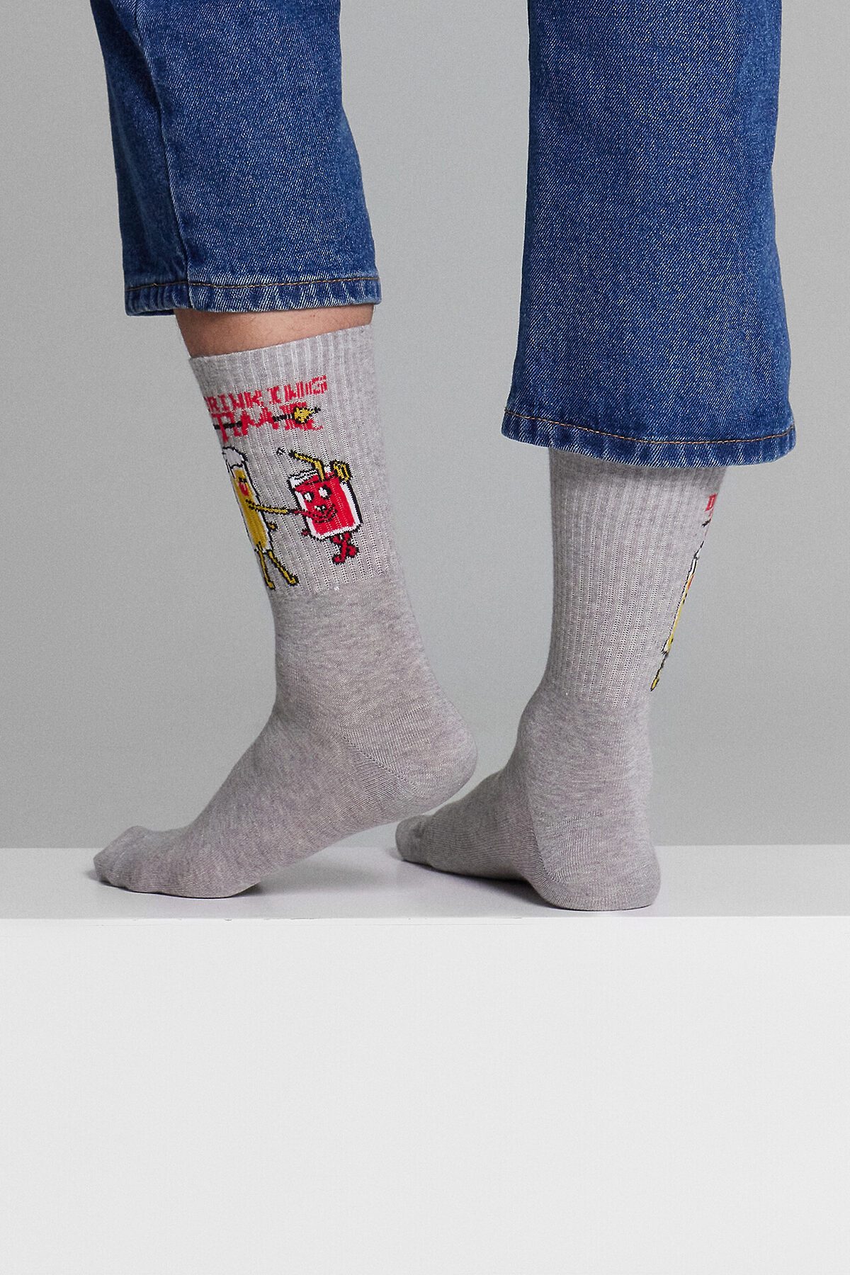 рис.3044 Мужской носок с высоким плотным бортом и рисунком в виде надписи "Drink TIME".