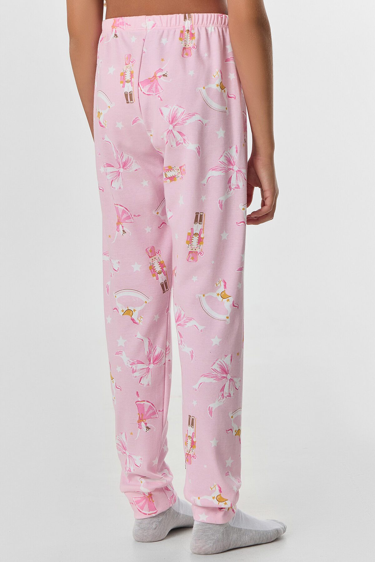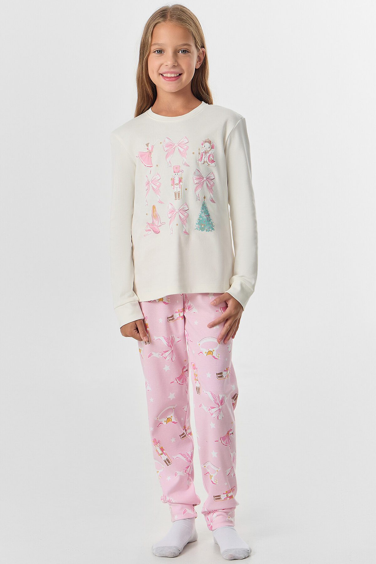 Уютный комплект для девочек, состоящий из джемпера с длинными рукавами и брюк. Джемпер свободного силуэта. Перед и спинка цельнокроеные. Горловина круглой формы из основного полотна. Рукава втачные, низ рукавов с притачными манжетами. Брюки прямые, с притачными манжетами. Пояс с эластичной тесьмой, которая обеспечивает отличную посадку. Стильная и комфортная детская пижама — лучший вариант для прохладного времени года. Широкий размерный ряд, красивые расцветки моделей в линейке. Рекомендуем!