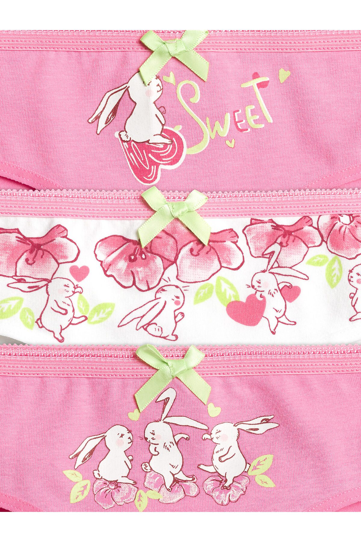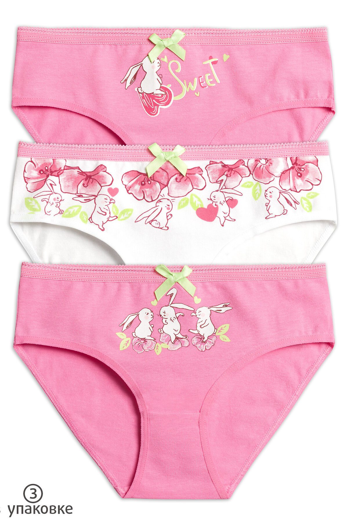Трусики слипы со средней посадкой для девочек. В комплекте 3 изделия. По талии эластик с фестонным краем, декор в виде атласного бантика. Обработка эластиком по ноге.