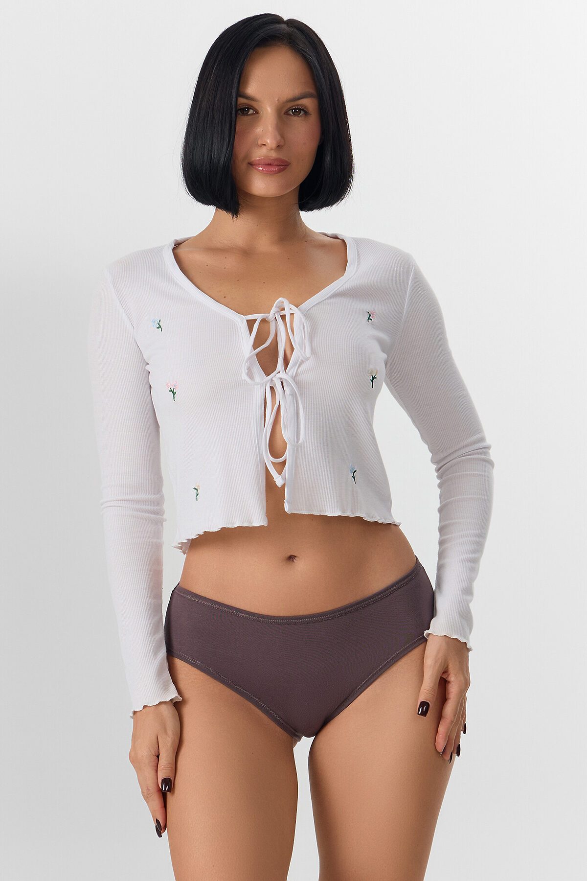 Трусы женские, силуэт - классика, выполнены из трикотажного кулирного полотна. Передняя и задняя деталь цельнокроеные. По талии и по ножкам окантовки из основного полотна с открытым срезом 1см, прошиты на плоскошовной машине с застилом. По талии внутри эл тесьма 6мм (жилко й WT4, Девсел арт 13460W). Подкладка ластовицы из основного полотна отлетная по переду. Декор этикетка №517.